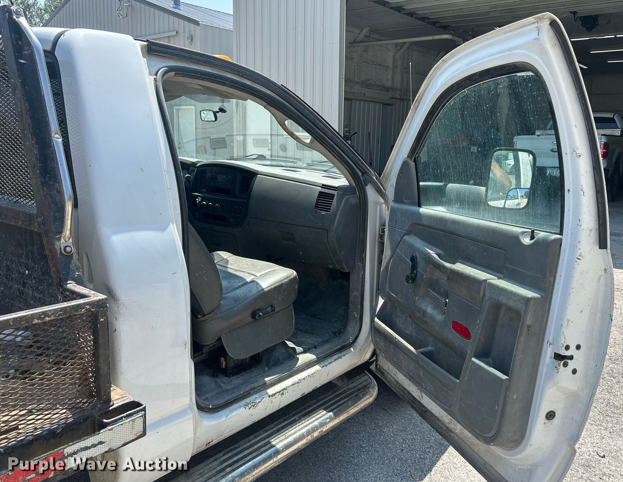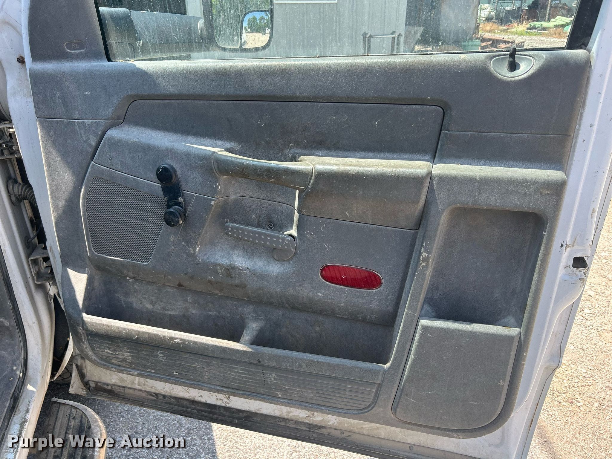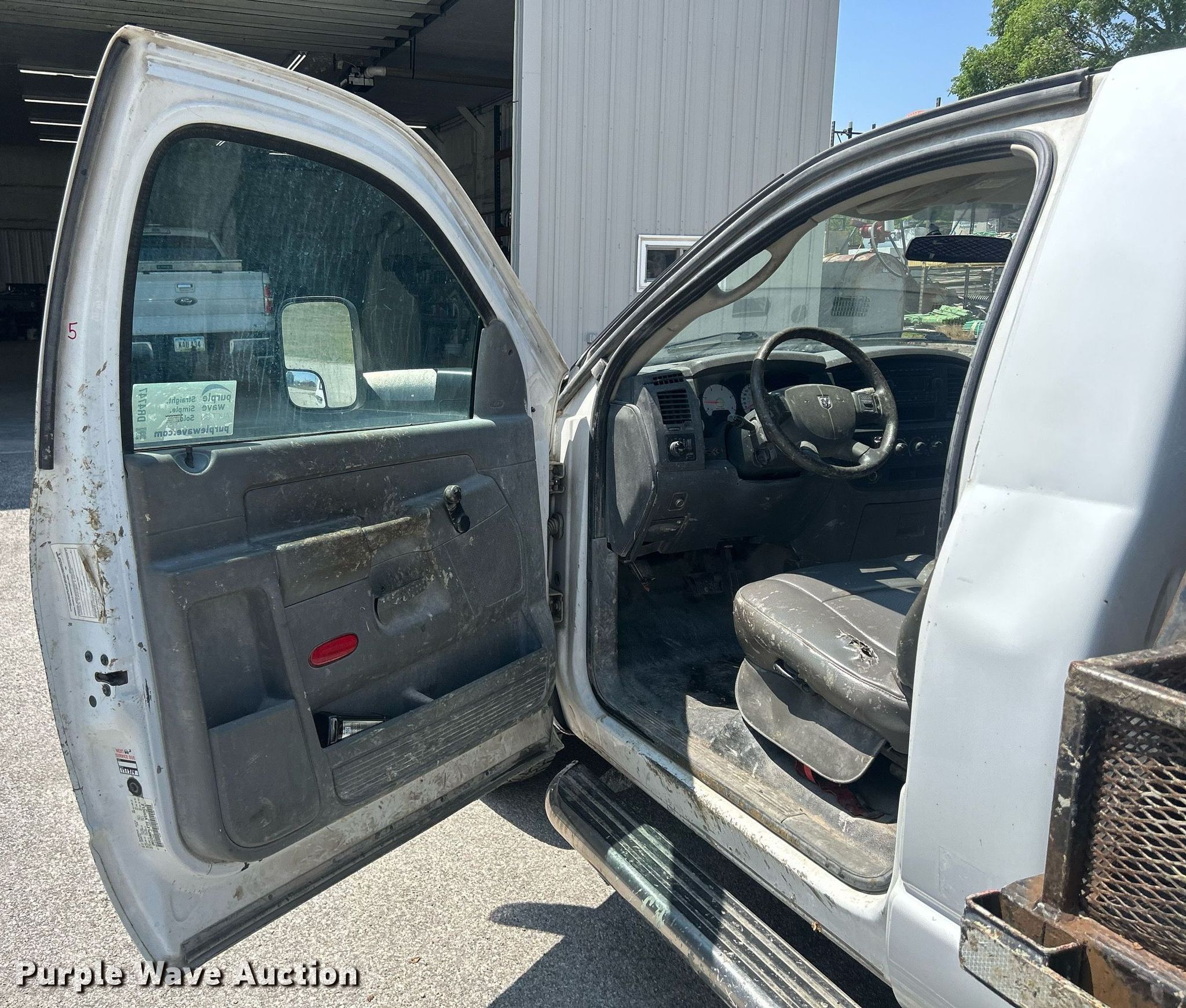 2006 Dodge Ram 3500 flatbed pickup truck. Miles: 176,147 on odometer, VIN: 3D6WL46C86G170468, Unit #: 5. Engine Displacement: 5.9L L6 OHV , Cylinders: 6, Fuel type: Diesel. Transmission Automatic. Interior AC, Heat, Cruise control. Features Flatbed 9' L x 102" W. Tires Size: 235/80R17. Notes Dash warning indicator: Check engine, Airbag, Windshield chipped or cracked. Iowa title. Title distribution may be delayed up to 14 days from verification of funds. Iowa Civil Contracting Inc. 1106 3rd Street. Victor, IA 52347