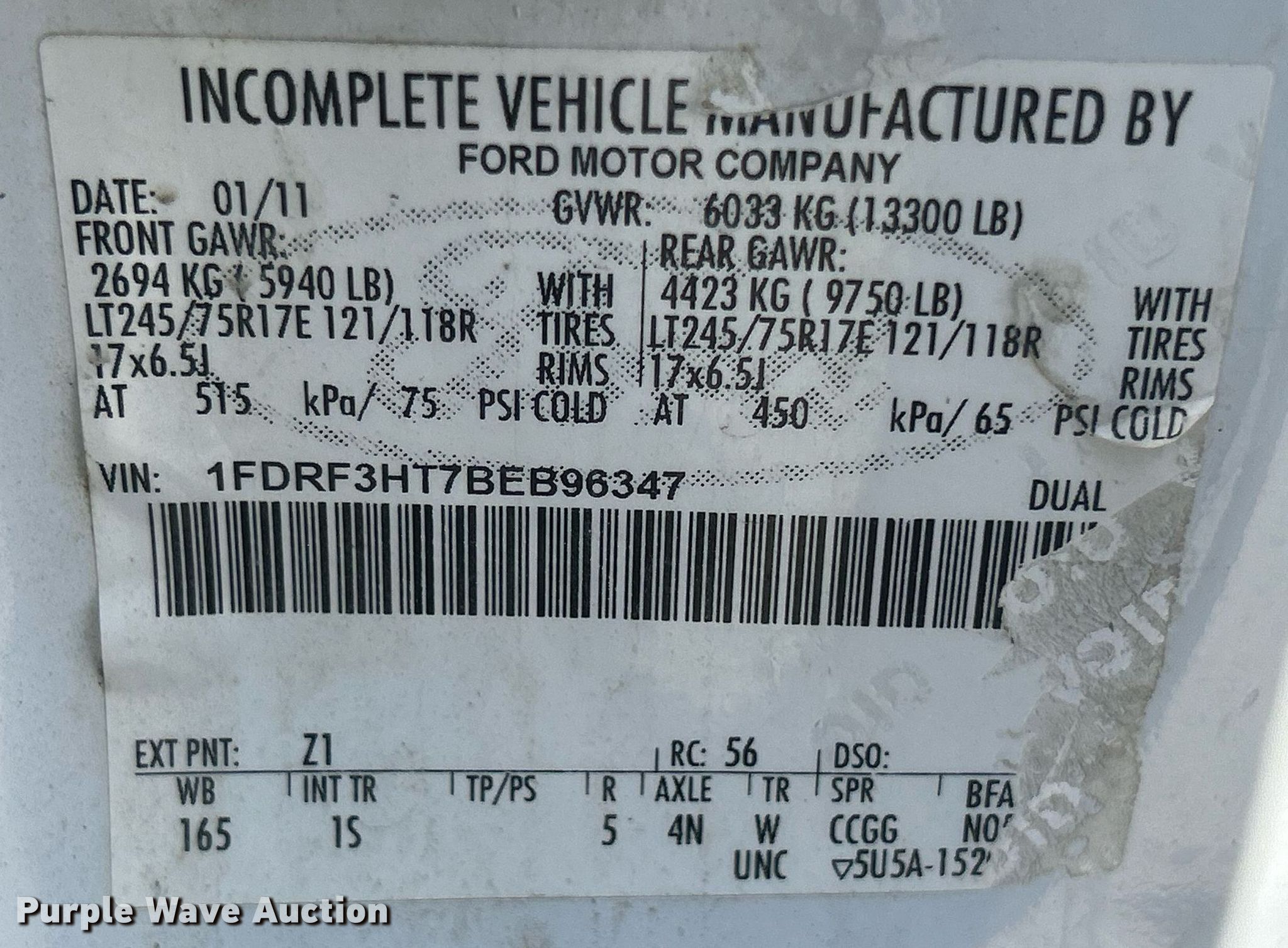 Purple Wave is selling a used 3/4 or 1 Ton Pickup or Van in Iowa. This item is a 2011 Ford F350 Super Duty pickup truck cab and chassis with the following: Miles: Unknown, VIN: 1FDRF3HT7BEB96347, Unit #: 14