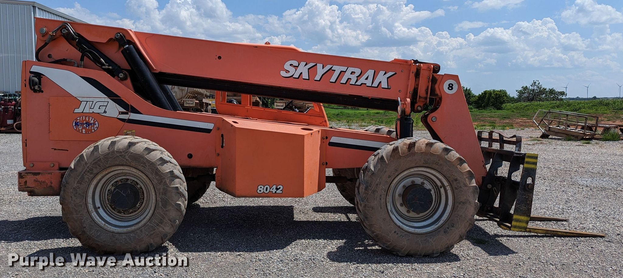 Purple Wave is selling a used Telehandler in Oklahoma. This item is a 2008 SkyTrak 8042 telehandler with the following: Hours: 5,288 on meter, Serial: 0160033057