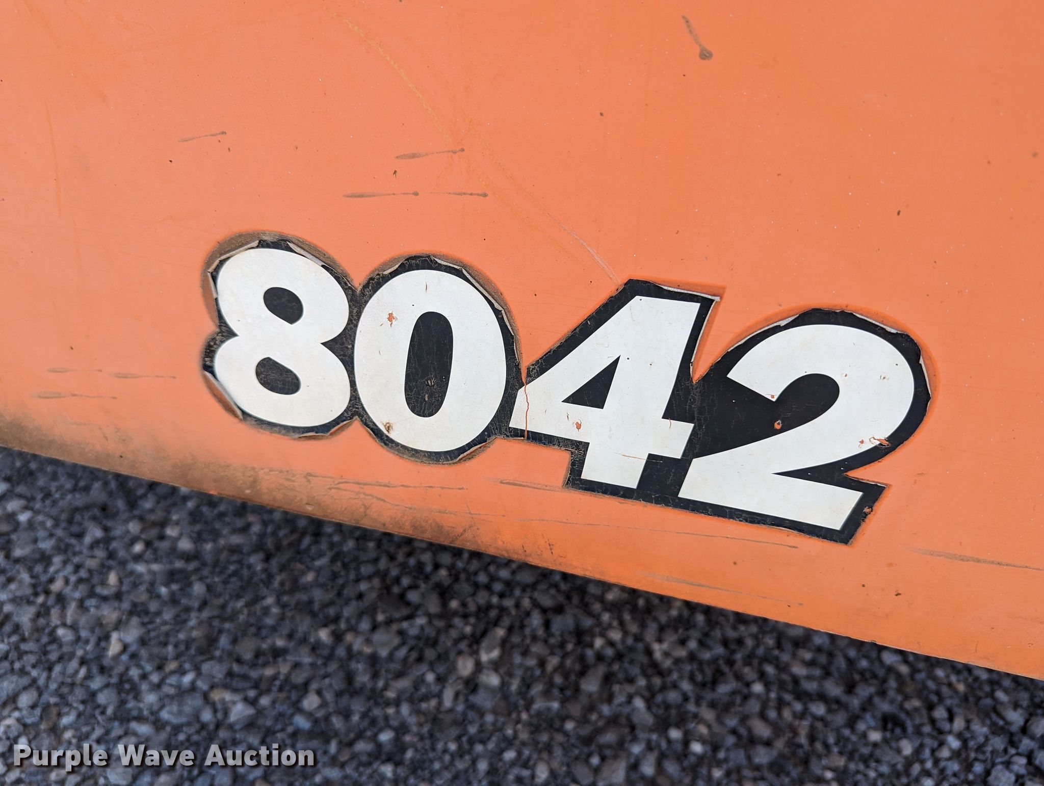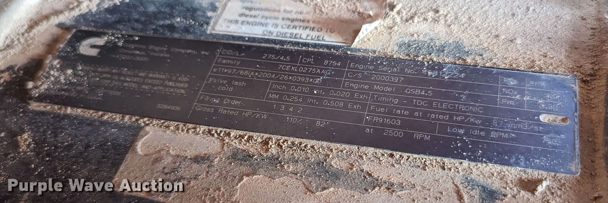 2008 SkyTrak 8042 telehandler. Hours: 5,288 on meter, Serial: 0160033057. Engine Cummins QSB4.5, Serial: 46812224, Displacement: 4.5L, Cylinders: 4, Fuel type: Diesel, HP: 110, kW: 82. Transmission Powershift, 4F - 3R, Four wheel drive. Operators station Canopy, Steering: Crab, Four wheel. Features Maximum lift capacity: 8,000 lbs, Maximum lift height: 42', Boom stages: 3, Fork length: 48", Auxiliary hydraulics, Hydraulic leveling. Tires Size: 13.00-24. 21400 Southwest 59th Street. Union City, OK 73090