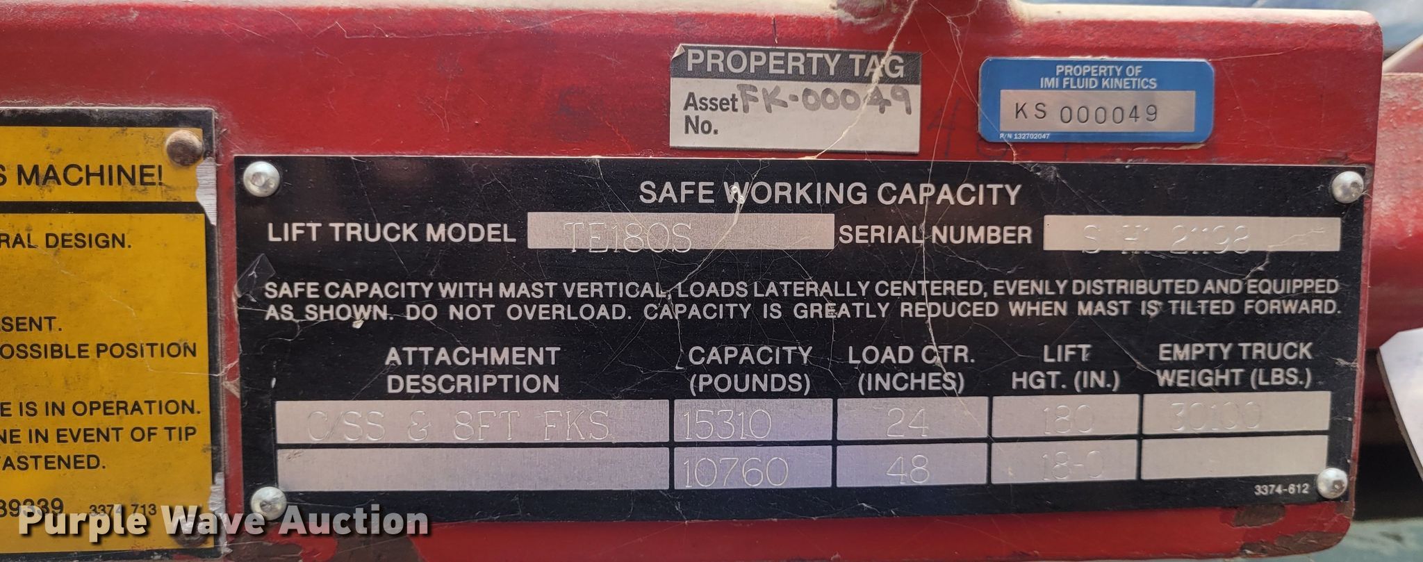 Purple Wave is selling a used Cushion Tire or Pneumatic Forklift in Kansas. This item is a 1991 Taylor TE180S forklift with the following: Hours: 2,078 on meter, Miles or hours may vary, unit still in use, Serial: SH121198