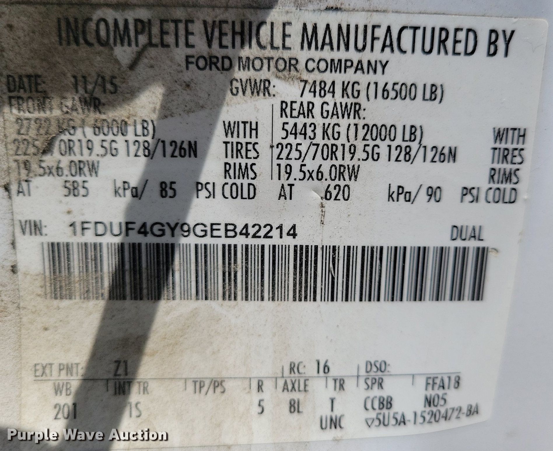 2016 Ford F450 Super Duty flatbed truck. Miles: 131,350 on odometer, VIN: 1FDUF4GY9GEB42214. Engine Displacement: 6.8L, Cylinders: 10, Fuel type: Gas. Transmission Automatic. Chassis Axles: Single, Suspension: Spring, Brakes: Hydraulic, GVWR: 16,500 lbs, Wheelbase: 201". Interior AC, Heat, Heated mirrors, Power windows, Power locks, Cruise control, Auxiliary controls. Features Flatbed Morgan, 16' 6" L x 96" W, Removable sides. Tires Size: 225/70R19.5. Iowa title. DH Pace Company. 1300 Southeast Gateway Drive. Grimes, IA 50111