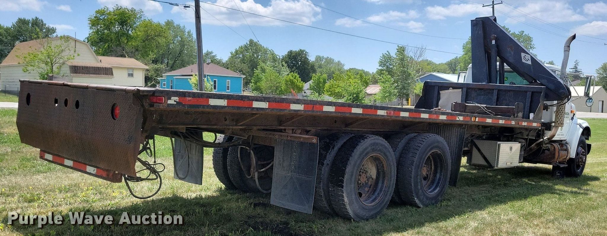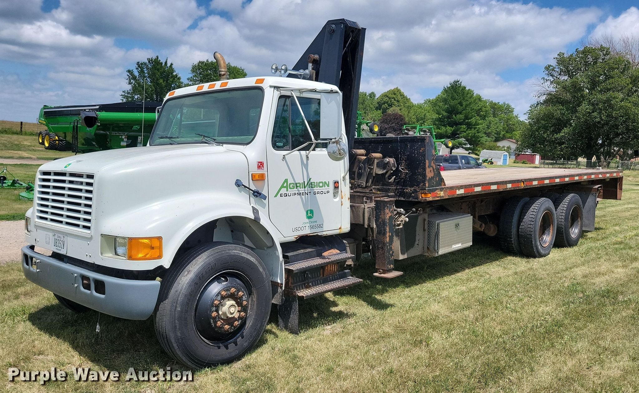1990 International 4900 crane truck. Miles: 319,787, Hours: 4,052, VIN: 1HTSHZ3R5LH235860. Engine SRC, Serial: 463G143U658272, Cylinders: 6, Fuel type: Diesel. Transmission Eaton Fuller Roadranger, Manual, Speed: 15. Chassis Double frame, Axles: Tandem, Suspension: Spring over walking beam, Brakes: Air, PTO, GVWR: 46,000 lbs FAWR: 12,000 lbs, IAWR: 17,000 lbs, RAWR: 17,000 lbs, Wheelbase: 278". Interior Heat. Features Rollback bed Omaha Standard , 26' L x 96" W, Crane IMT 725 Serial: 0610379ZPO, Telescopic, Maximum boom length: 25' Sections: 3, Maximum lift capacity: 8,000 lbs, Boom controls Ground, Winch. Tires Size: 295/75R22.5, Brand: Firestone. Notes Hydraulic outrigger disassembled, needs repair , Frame rusted, Unknown operating condition crane. Iowa title. AgriVision Equipment Group. 412 W Van Buren St. Lenox, IA 50851