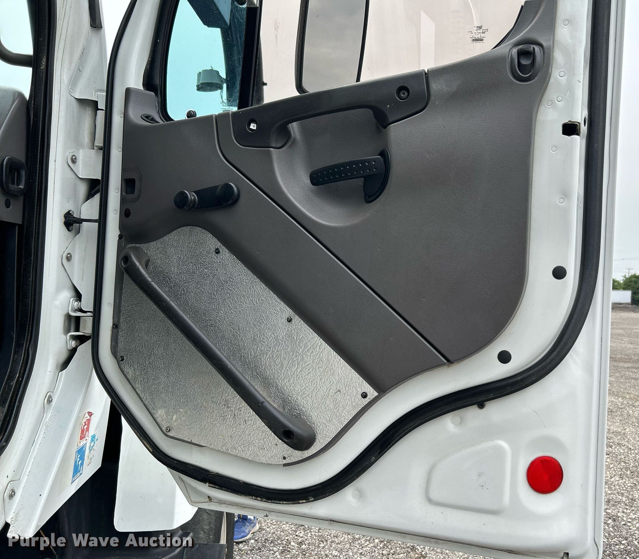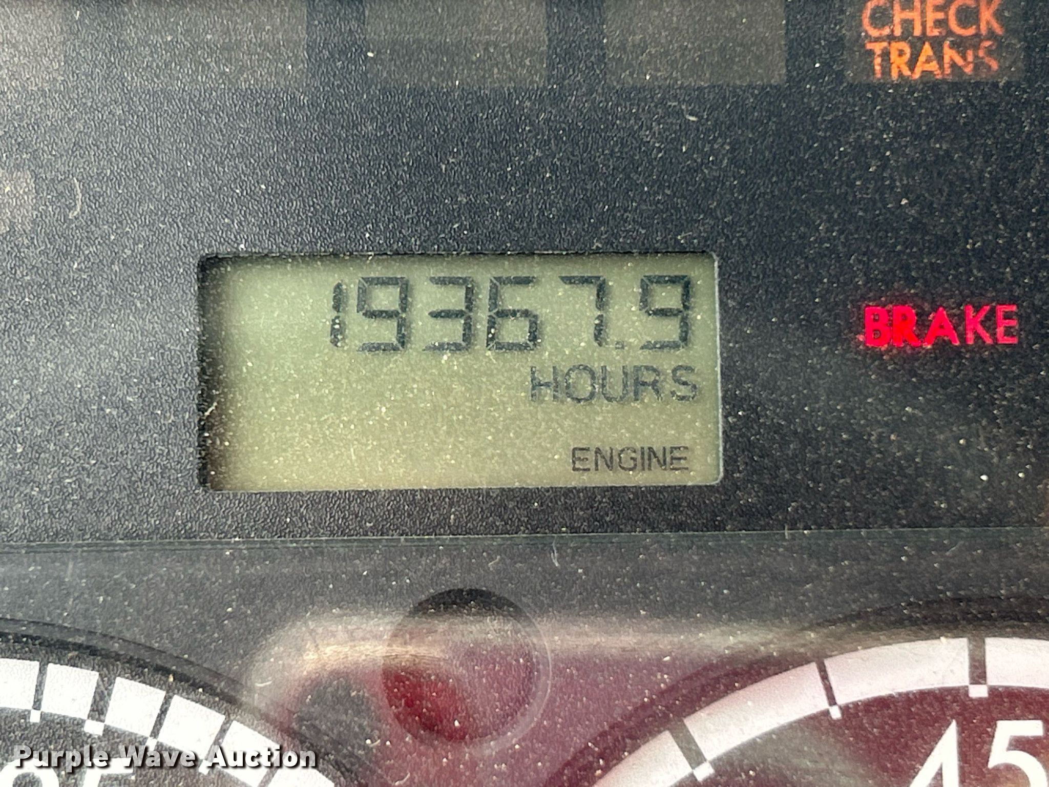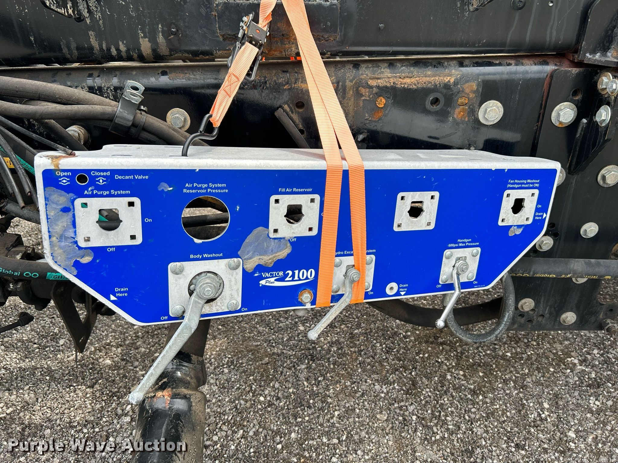 2012 Freightliner 114SD sewer jetter truck. Miles: 158,629 on odometer, Hours: 19,368 on meter, VIN: 1FVHG3CY4CHBN3947. Engine Cummins ISL9, Displacement: 8.9L, Cylinders: 6, Fuel type: Diesel. Transmission Automatic. Chassis Axles: Tandem, Suspension: Spring over walking beam, Brakes: Air, GVWR: 66,000 lbs. Interior AC, Heat, Cruise control. Features Tank bed Vactor Mfg. Inc. 2100-P-PD, Serial: 12-08V-13273, Capacity: 2,100 gallons, Rear manway, Rear outlet: 6", Hose reel Telescopic boom. Tires Front: 425/65R22.5, Rear: 11R22.5. Notes Dash warning indicator: Transmission, Parts missing, DEF cap missing, Unknown operating condition of vacuum system. Oklahoma title. Title distribution may be delayed up to 14 days from verification of funds. 15107 North 137th East Avenue. Collinsville, OK 74021