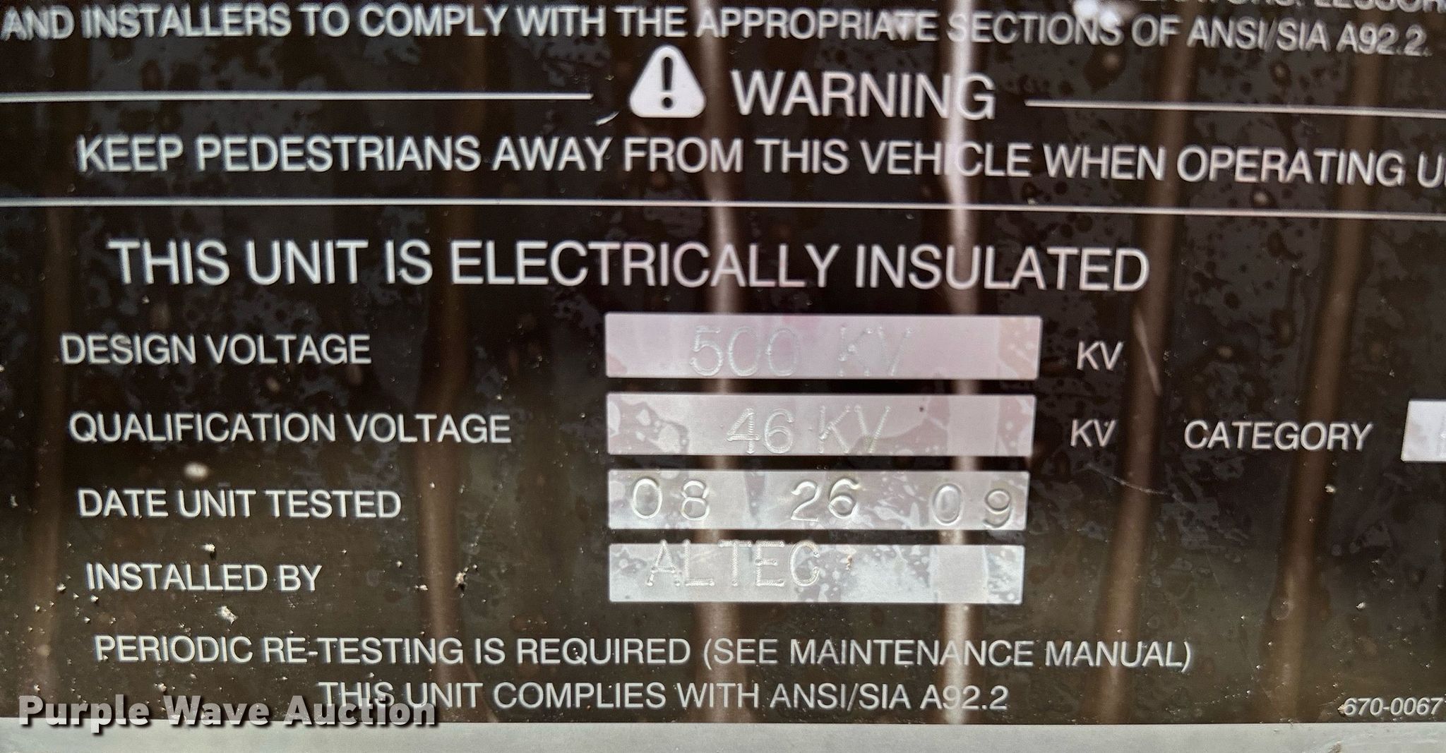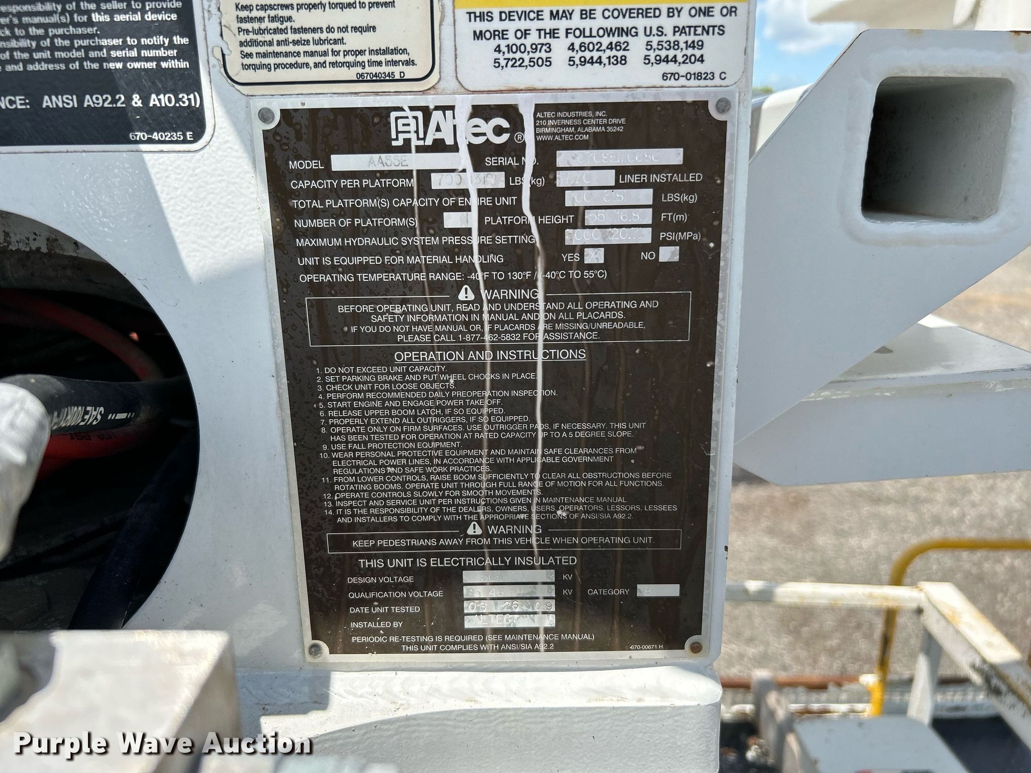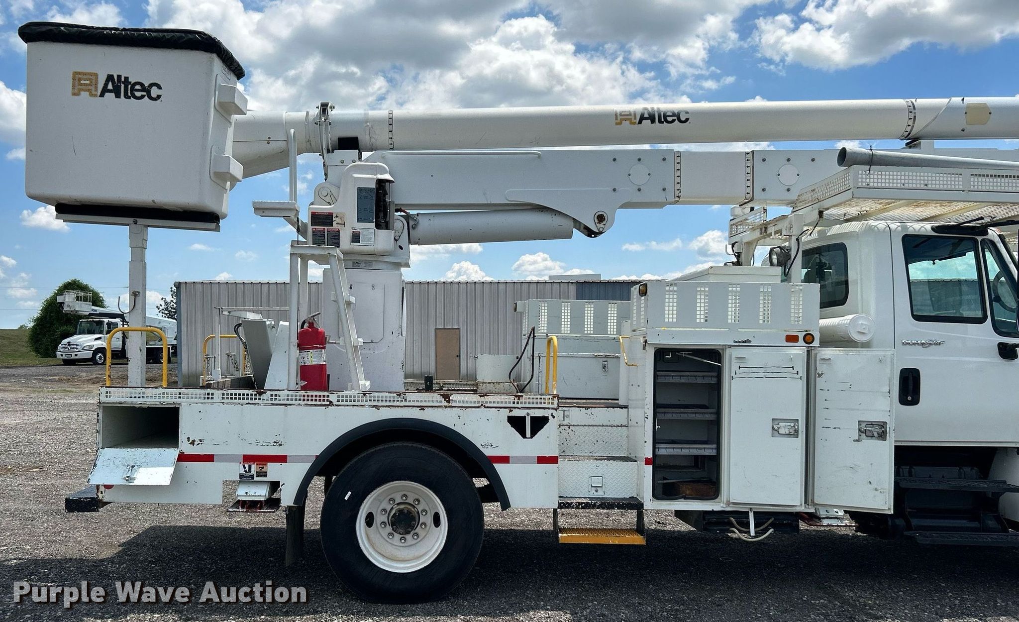 2010 International 4400 bucket truck. Miles: 124,087 on odometer, Hours: 12,205 on meter, VIN: 1HTMKAAN3AH196100. Engine International MaxxForce DT, Displacement: 7.6L, Cylinders: 6, Fuel type: Diesel. Transmission Automatic. Chassis Axles: Single, Suspension: Spring, Brakes: Air, PTO, GVWR: 33,000 lbs. Interior AC, Heat, Cruise control. Features Bed Altec, 15' 2" L x 92" W, Boom Altec AA55E, Serial: 0709EM0686, Maximum lift capacity: 700 lbs, Maximum lift height: 55', Boom type: Articulating, Insulated, Man basket, Boom controls Ground, Platform/ basket.. Tires Size: 11R22.5. Notes Windshield chipped or cracked. Oklahoma title. Title distribution may be delayed up to 14 days from verification of funds. 15107 North 137th East Avenue. Collinsville, OK 74021