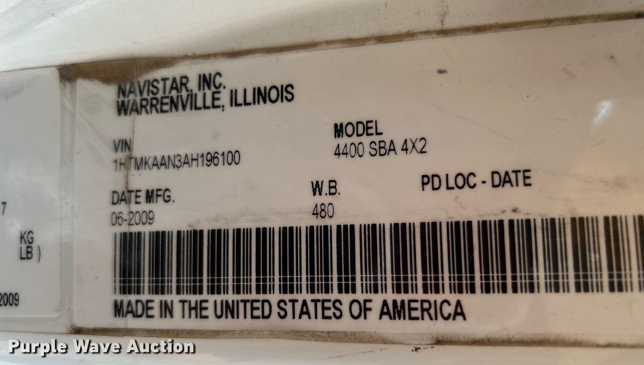 Purple Wave is selling a used Bucket Truck in Oklahoma. This item is a 2010 International 4400 bucket truck with the following: Miles: 124,087 on odometer, Hours: 12,205 on meter, VIN: 1HTMKAAN3AH196100
