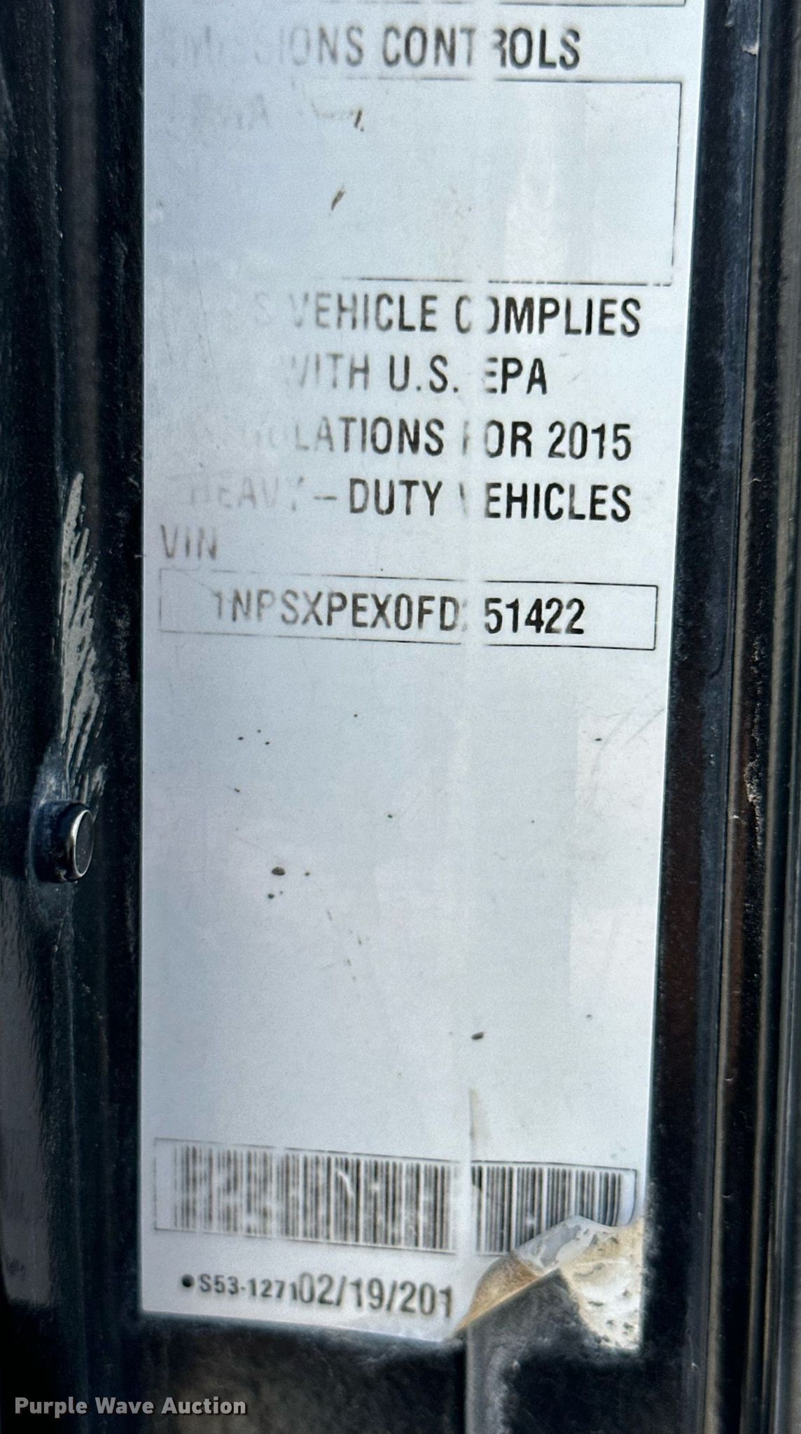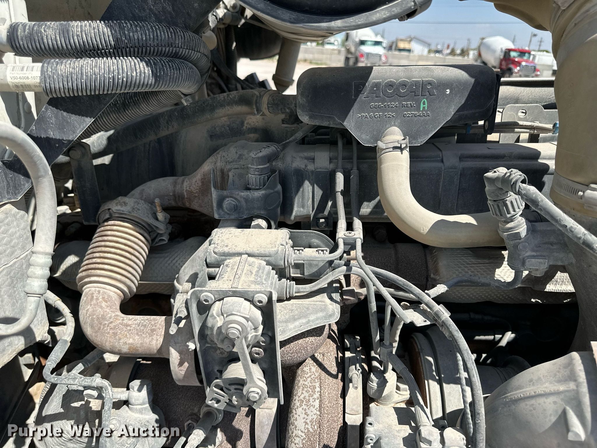2015 Peterbilt 365 ready mix truck. Miles: 64,850 on odometer, Hours: 3,736 on meter, VIN: 1NPSXPEX0FD251422. Engine Paccar MX-13, Displacement: 12.9L, Cylinders: 6, Fuel type: Diesel. Transmission Manual, Speed: 11. Chassis Axles: 4, Pusher axle Steerable, Tag axle, Differential lock: Full, Suspension: Spring over walking beam, Brakes: Air, PTO. Interior AC, Heat, Power windows, Cruise control. Features Mixer Capacity: 11 cu.yd., Discharge: Rear, In-cab controls, Rear drum controls, Water tank capacity: 150 gallons, Chute Extensions: 3, Chute type: Steel.. Tires Front: 425/65R22.5, Rear: 11R22.5, Lift axle: 255/70R22.5. Notes Dash warning indicator: Check engine. Kansas title. Title distribution may be delayed up to 14 days from verification of funds. The Monarch Cement Company (Dodge City Concrete). Garden City, KS 67846