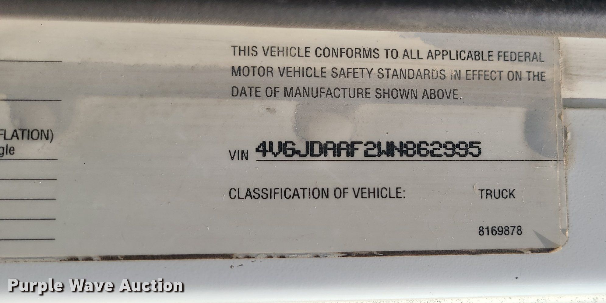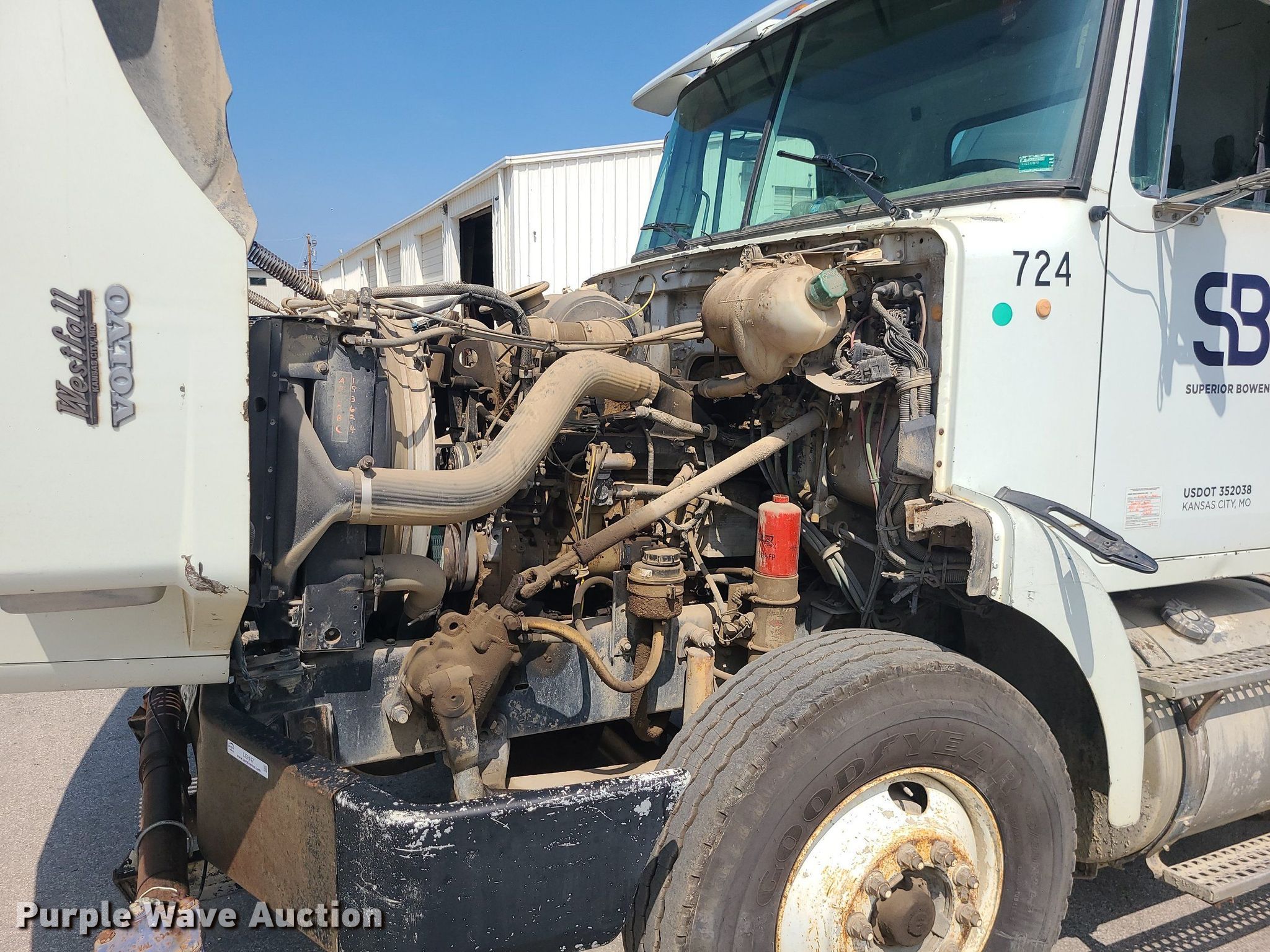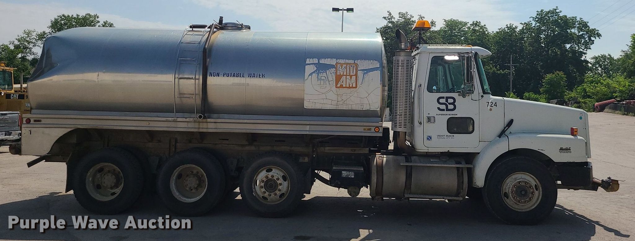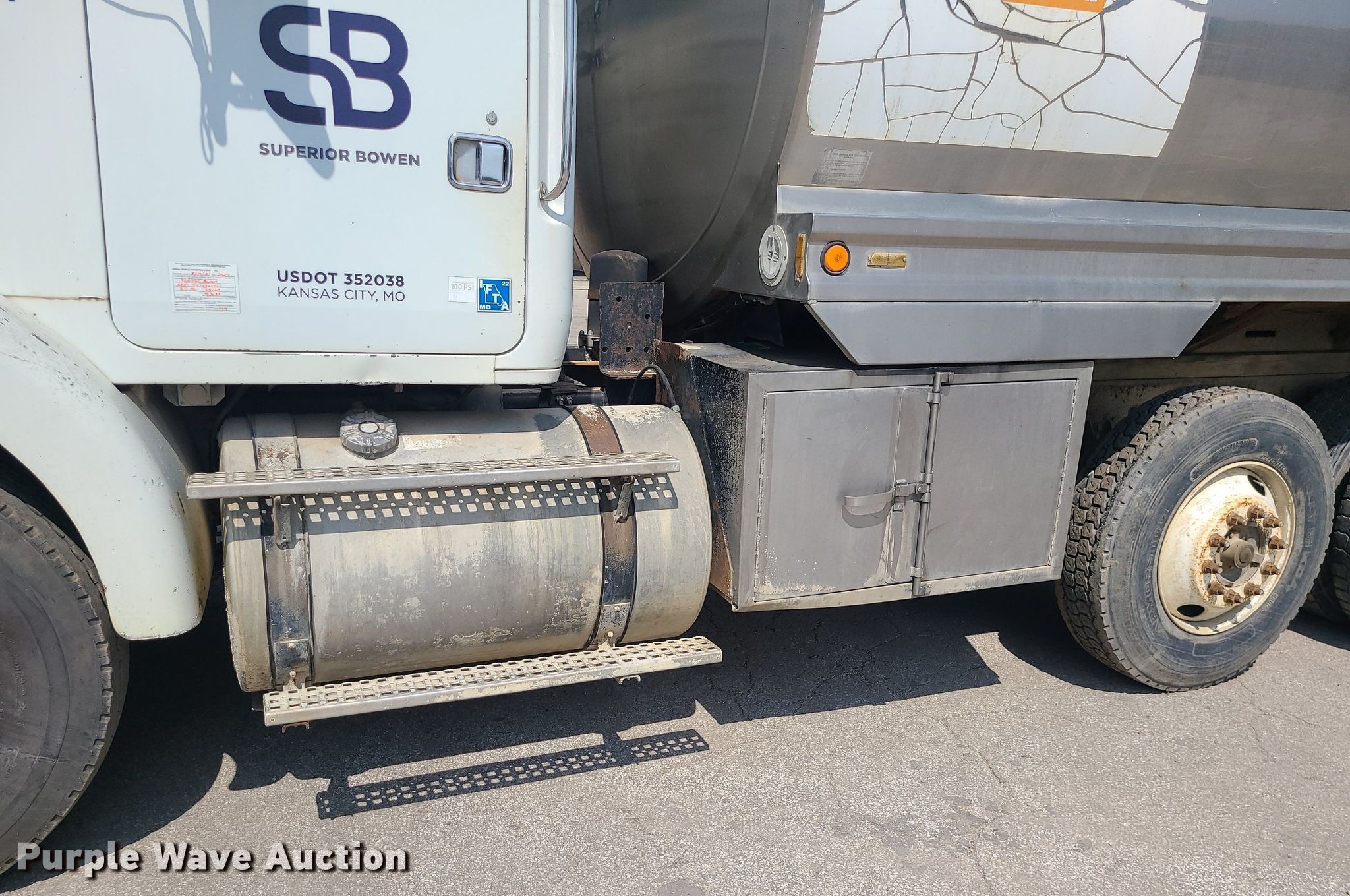 1998 Volvo WG water truck. Miles: 1,421 on odometer, VIN: 4VGJDAAF2WN862995. Engine Caterpillar 3208, Displacement: 10.4L, Cylinders: 8, Fuel type: Diesel. Transmission Manual. Chassis Axles: Triple, Pusher axle, Differential lock: Inter-axle, Suspension: Spring, Brakes: Air. Interior Heat, Cruise control. Features Bed / tank Walker Stainless Equipment Co., 18' L x 96" W, Spray bar: Front, Rear, Top fill. Tires Front: 315/80R22.5, Rear: 11R22.5, Lift axle: 295/75R22.5. Notes Dash warning indicator: ABS. Missouri title. Title distribution may be delayed up to 14 days from verification of funds. Superior Bowen Asphalt Co.. 15301 Broadmoor Street. Overland Park, KS 66223