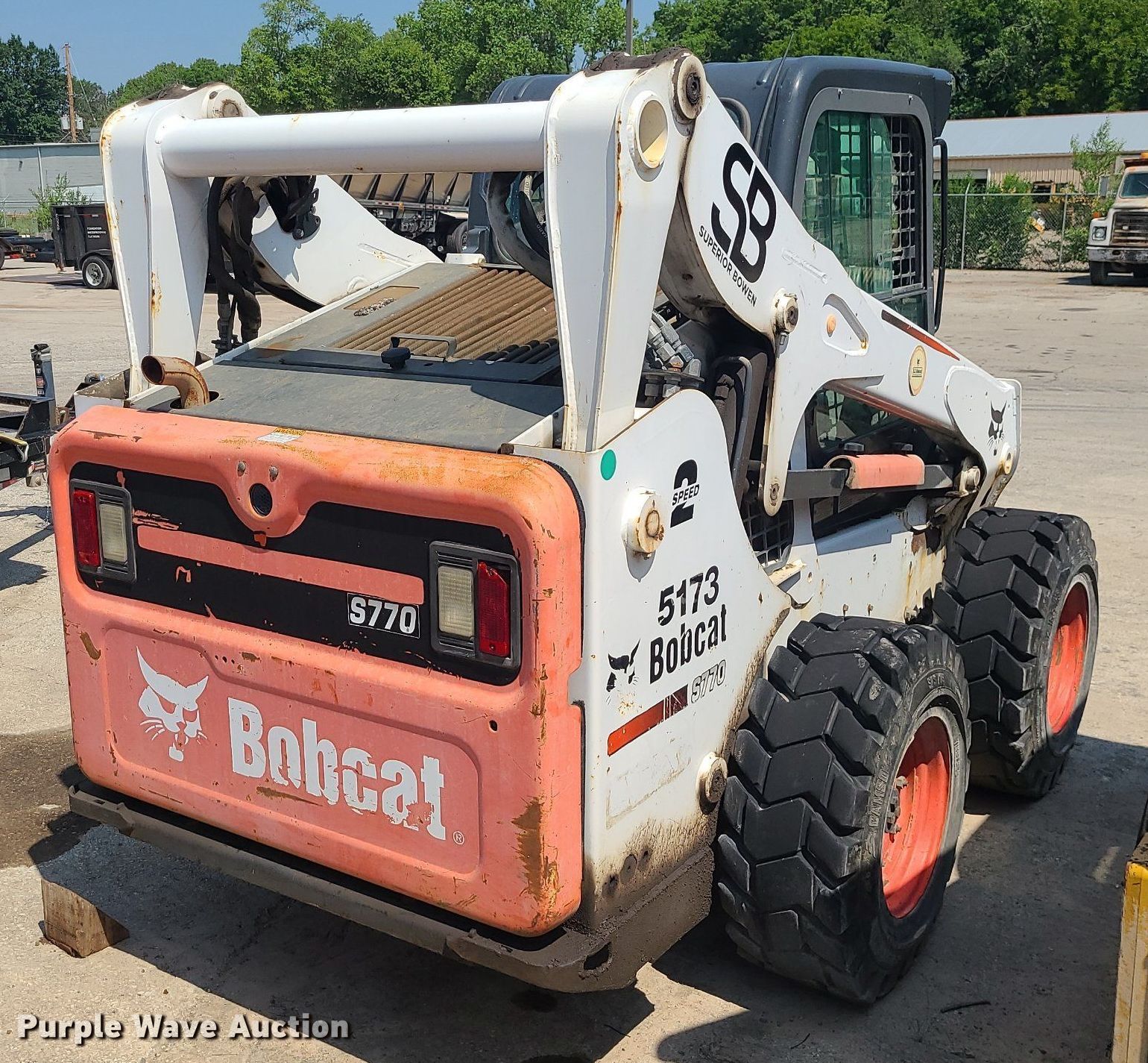 Purple Wave is selling a used Skid Steer Loader in Kansas. This item is a 2013 Bobcat S770 skid steer loader with the following: Hours: 4,742 on meter, Serial: ATF212140