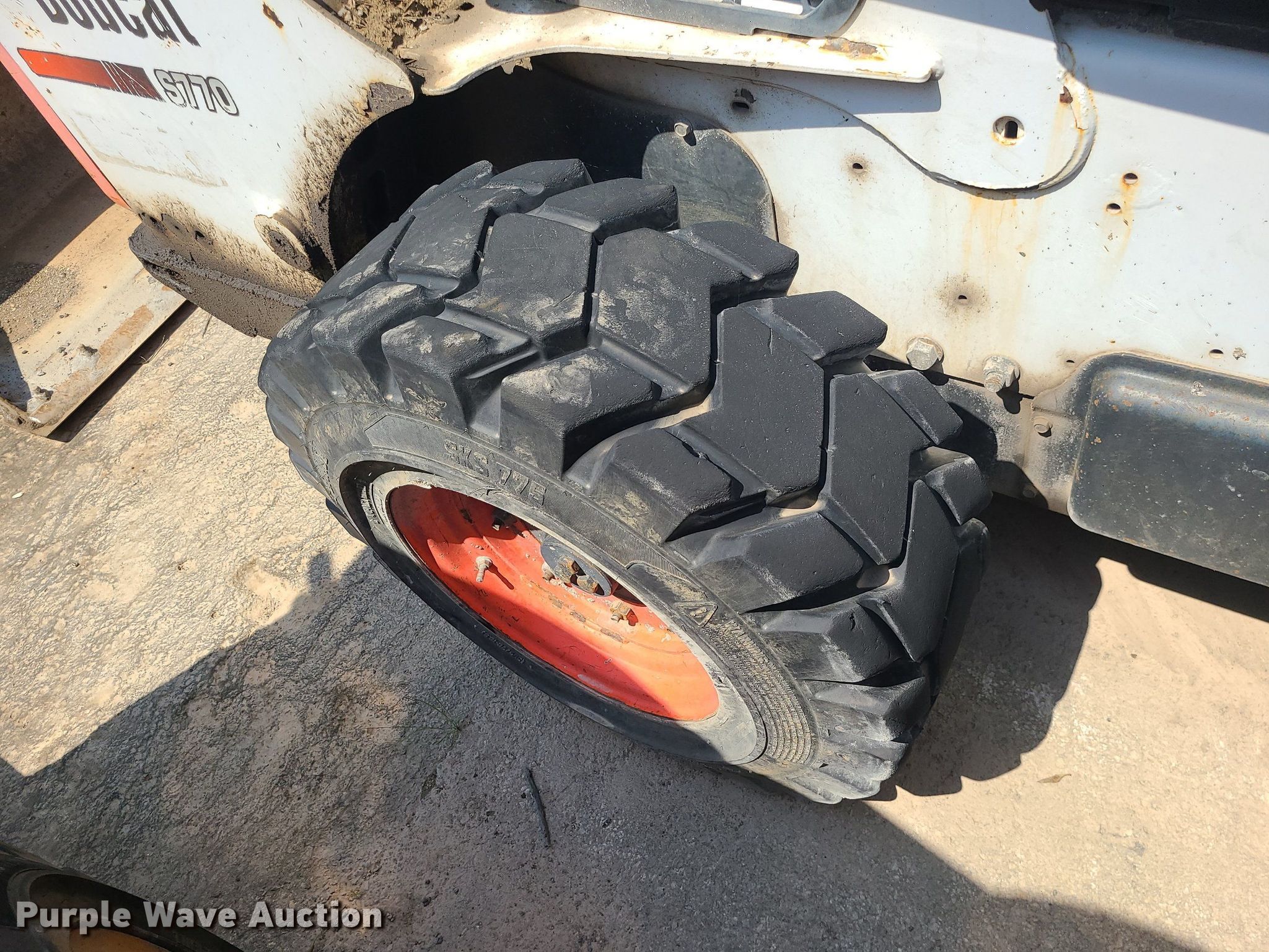 2013 Bobcat S770 skid steer loader. Hours: 4,742 on meter, Serial: ATF212140. Engine Cylinders: 4, Fuel type: Diesel. Transmission Hydrostatic. Operators station Enclosed cab, AC, Bucket control: Hand. Features Auxiliary hydraulics, Quick coupler: Manual. Tires Size: 12-16.5. Notes Dead battery, Unknown operating condition. Superior Bowen Asphalt Co.. 15301 Broadmoor Street. Overland Park, KS 66223