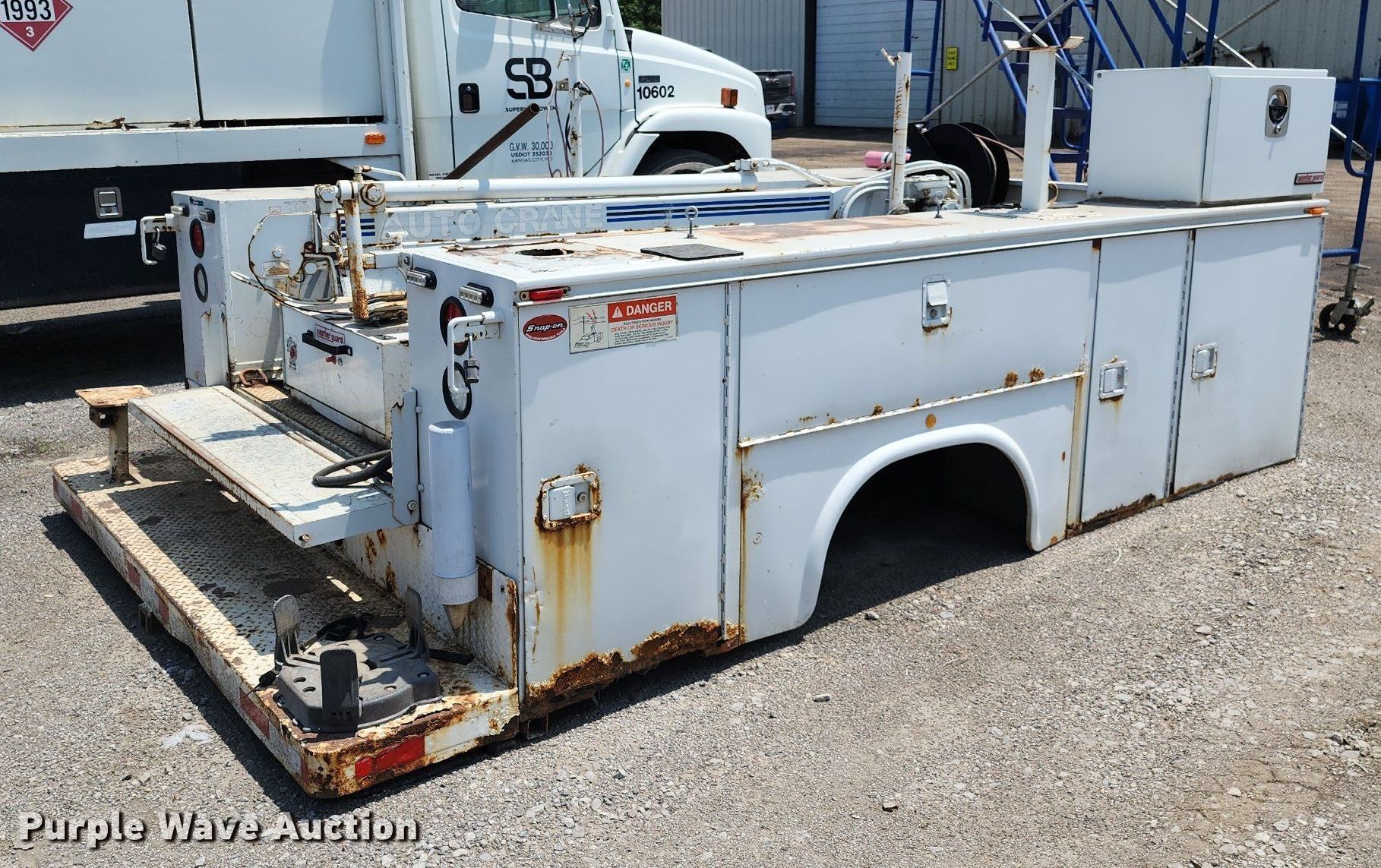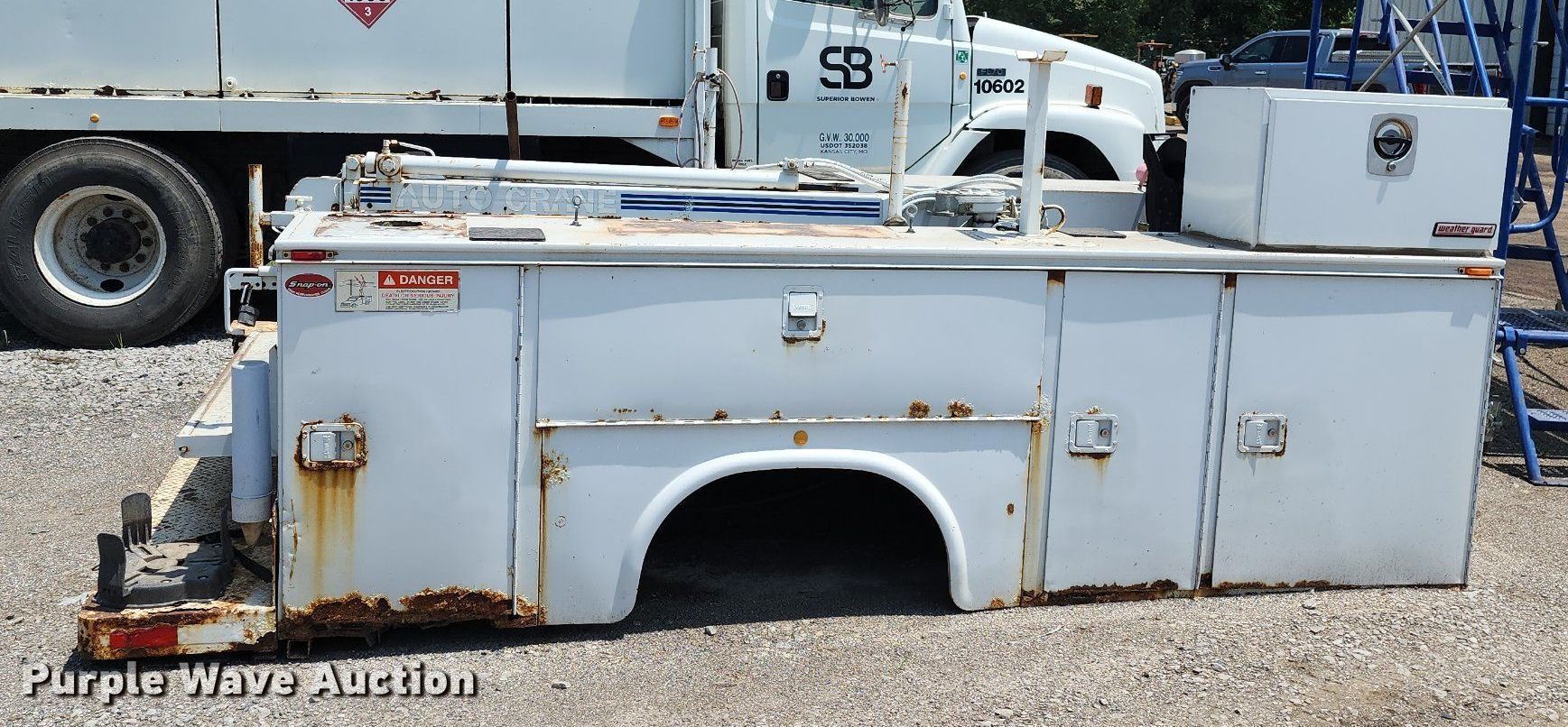 Purple Wave is selling a used Truck Part and Attach. in Missouri. This item is a Knapheide 6132D54J utility bed with the following: 11' L x 98" W, Crane, Auto Crane, Capacity: 3,200 lbs