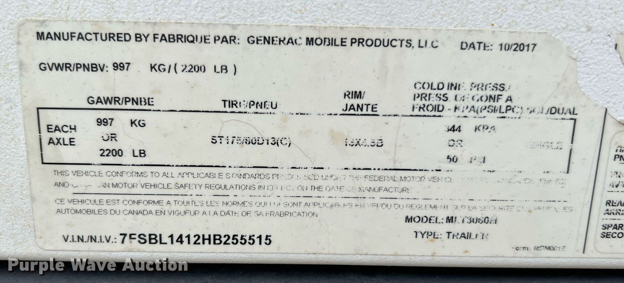 Purple Wave is selling a used Light Plant in Texas. This item is a 2017 Generac MLT3060M light plant with the following: Hours: 3,929 on meter, VIN: 7FSBL1412HB255515