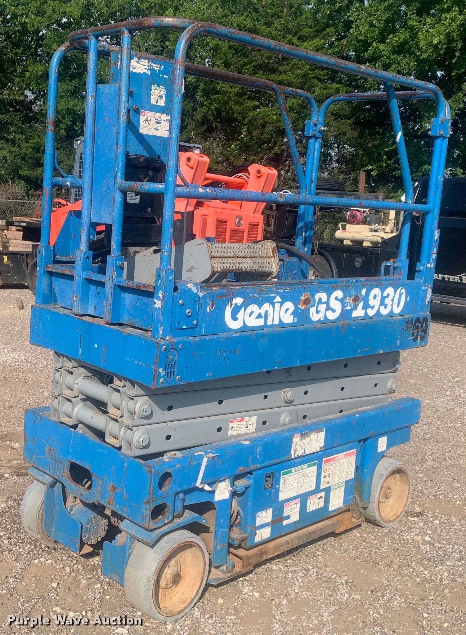 Purple Wave is selling a used Scissor or Vertical Lift in Texas. This item is a Genie GS-1930 scissor lift with the following: Hours: Unknown