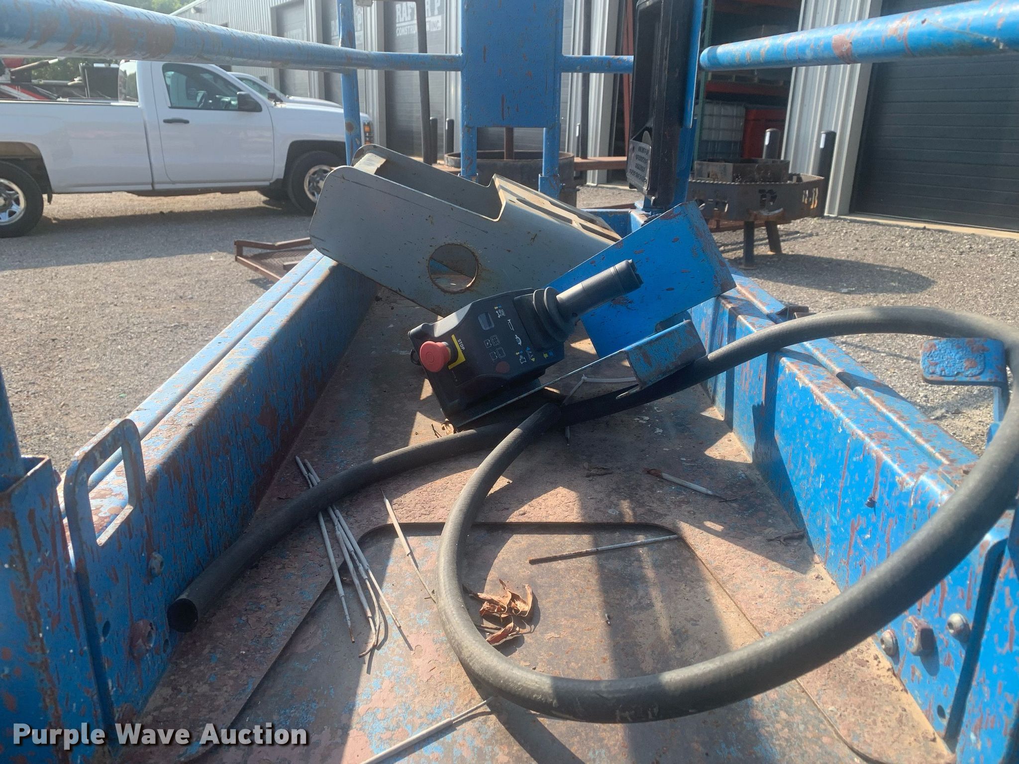 Genie GS-1930 scissor lift. Hours: Unknown. Features Maximum lift capacity: 500 lbs, Maximum lift height: 19', Platform: 64" L x 30" W, AC power outlet, Controls: Platform, Platform extensions: Manual. Tires Tire size: 12x4.5, Solid. Notes No batteries, Non-operational unit. Rafter P Construction. 9201 Wesley St. Greenville, TX 75402