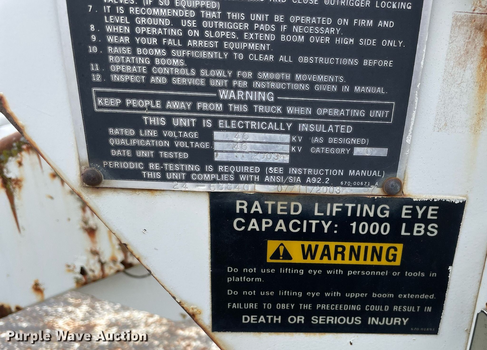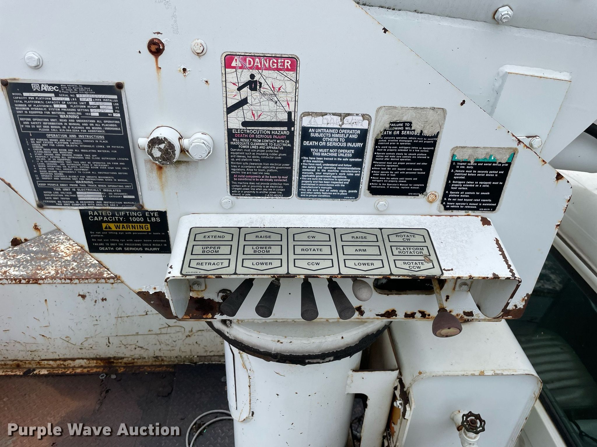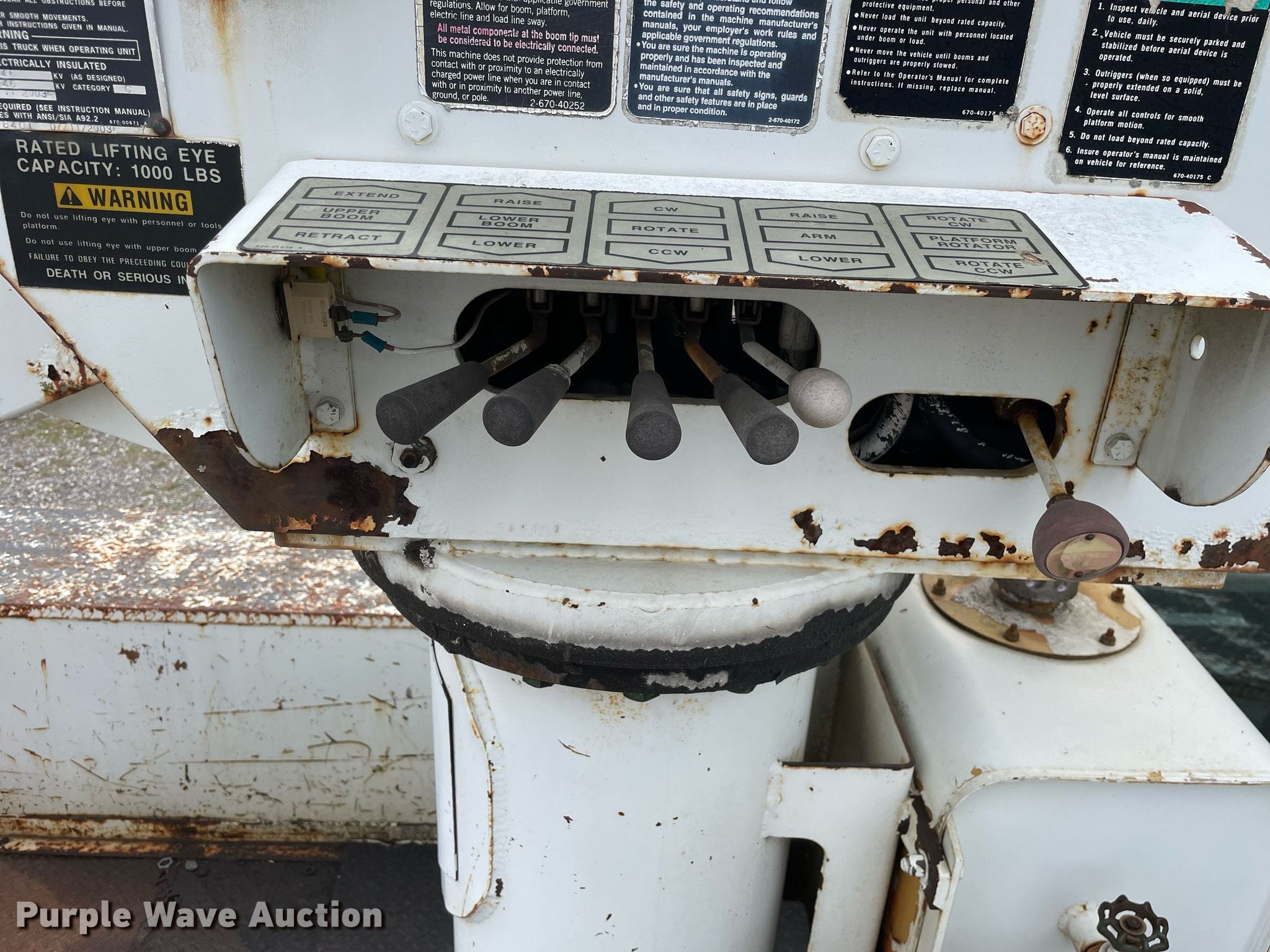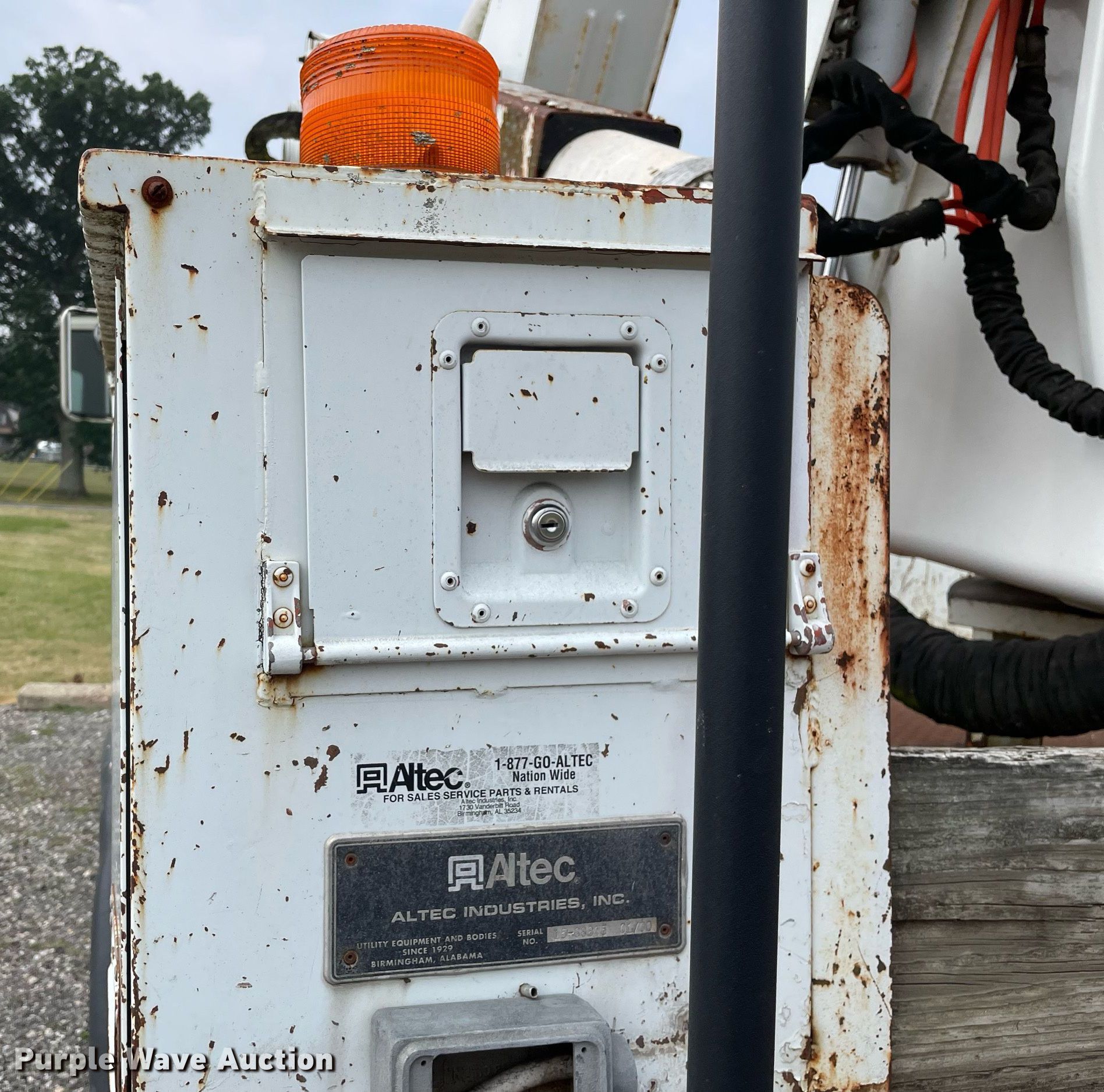1993 International 4700 bucket truck. Miles: 120,120 on odometer, Hours: 14,987 on meter, VIN: 1HTSCPHL0PH510631. Engine International C190TF, Displacement: 5.9L, Cylinders: 6, Fuel type: Diesel. Transmission Automatic. Chassis Axles: Single, Suspension: Spring, Brakes: Air, PTO, Wheelbase: 152". Interior Heat. Features Bed Altec, Serial: 15-66845, 11' L x 95" W, Boom 2003 Altec TA36, Serial: 119CC0773, Maximum lift capacity: 400 lbs, Maximum lift height: 36', Boom type: Articulating, Insulated, Telescopic, Man basket, Boom controls Ground, Platform/ basket.. Tires Size: 11R22.5. Illinois title. Title distribution may be delayed up to 14 days from verification of funds. Lancaster Construction Co.. 806 Warrington Ave. Danville, IL 61832