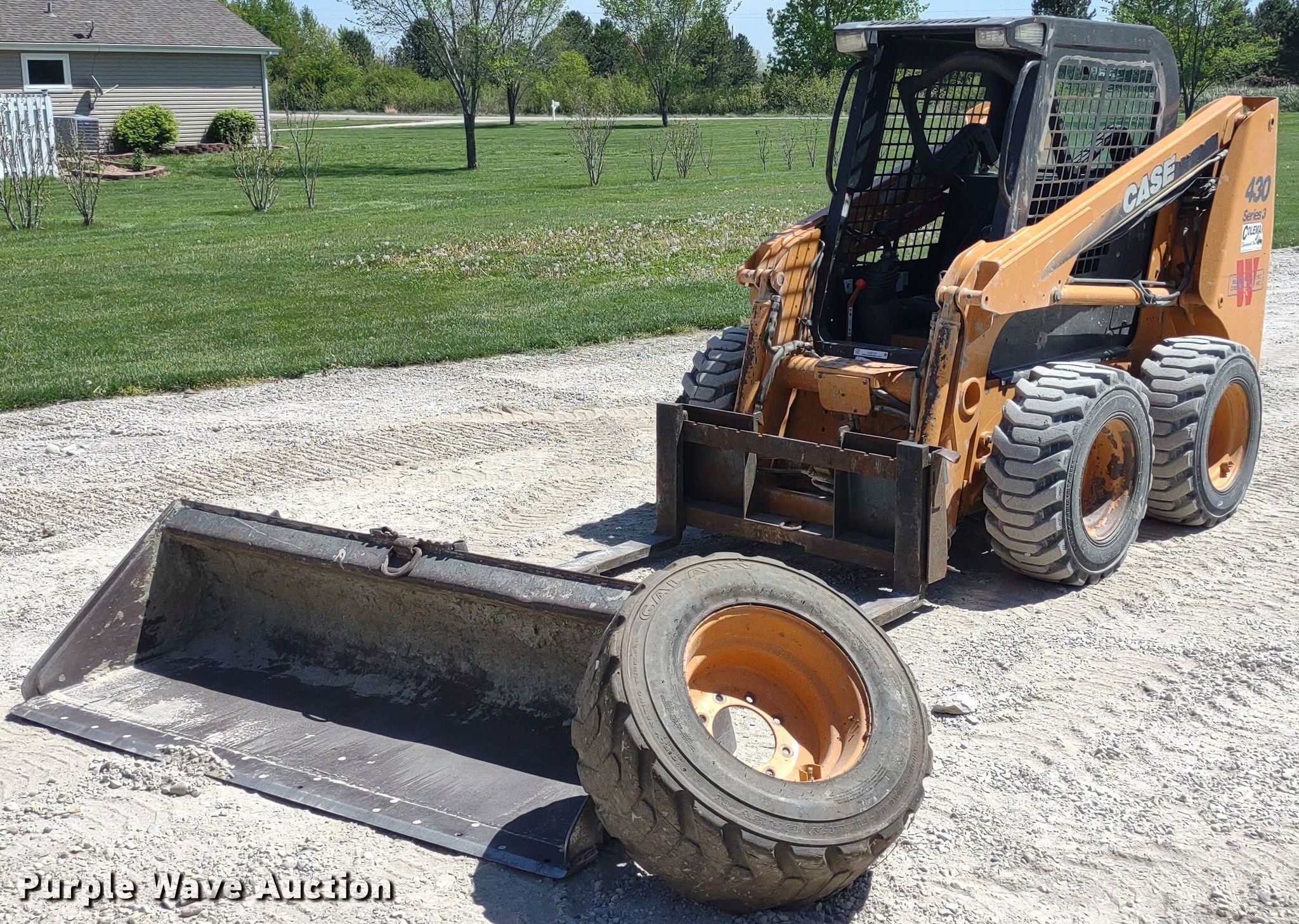 Purple Wave is selling a used Skid Steer Loader in Kansas. This item is a 2008 Case 430 skid steer loader with the following: Hours: 3,224 on meter, Serial: N8M493094