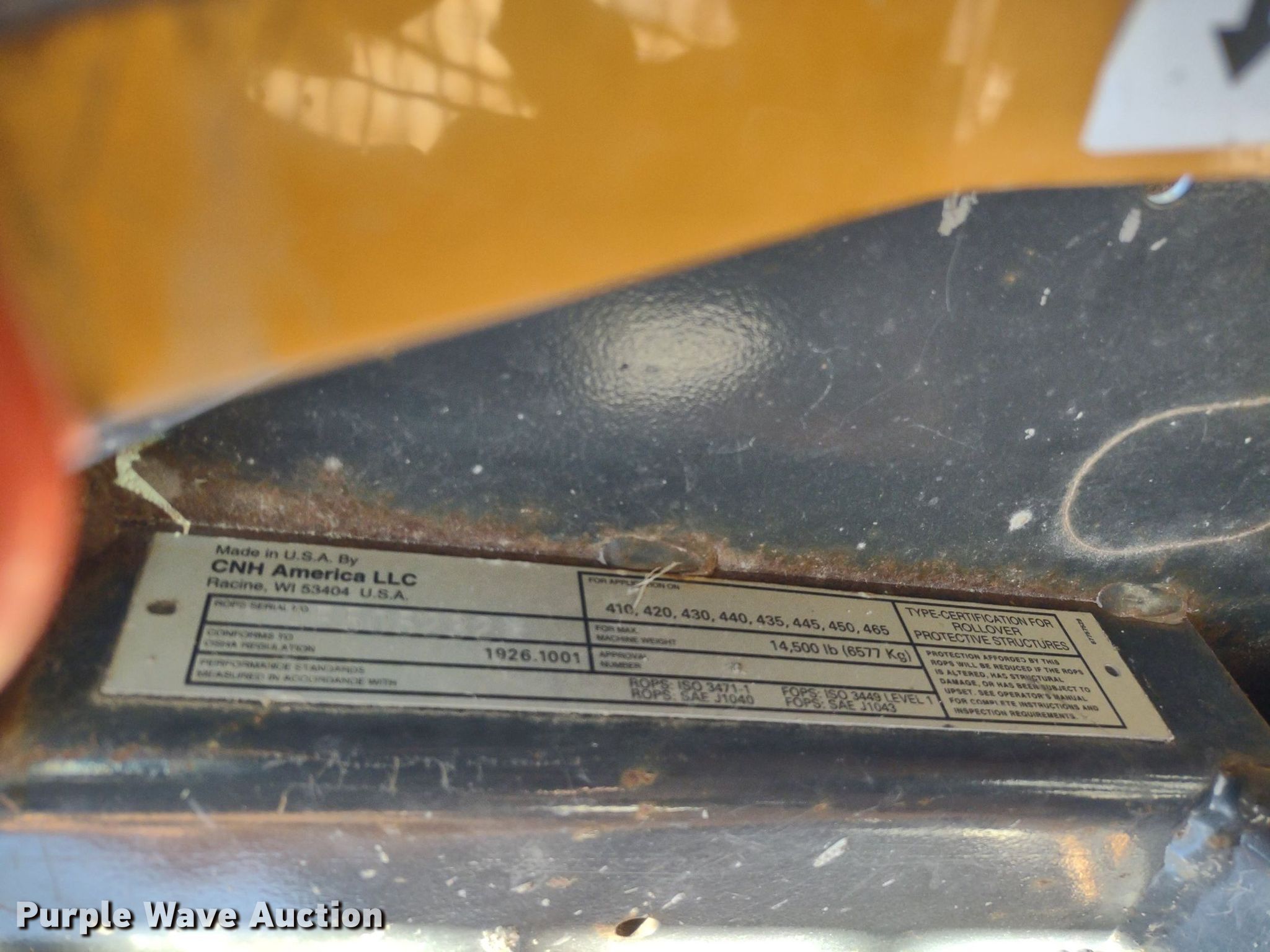 2008 Case 430 skid steer loader. Hours: 3,224 on meter, Serial: N8M493094. Engine Cylinders: 4, Fuel type: Diesel. Transmission Hydrostatic. Operators station Bucket control: Hand. Features Auxiliary hydraulics, Quick coupler: Hydraulic, Bucket Caterpillar, Width: 74", Cutting edge: Weld-on. Tires Size: 12x16.5. Wellsville, KS 66092