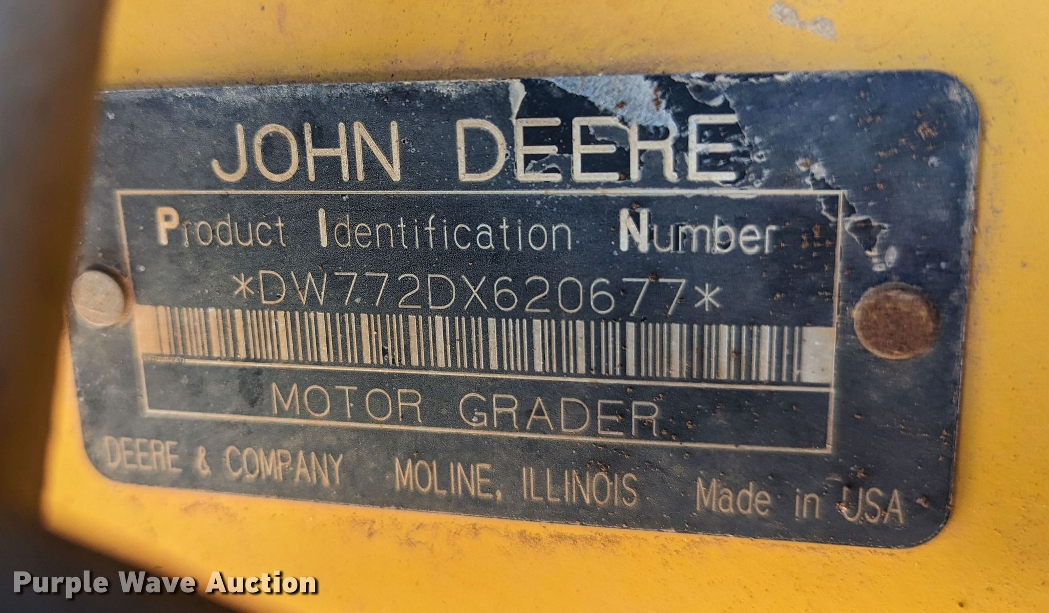 Purple Wave is selling a used Motor Grader in Oklahoma. This item is a 2008 John Deere 772D motor grader with the following: Hours: 11,580 on meter, Serial: DW772DX620677, Unit #: 43-0801