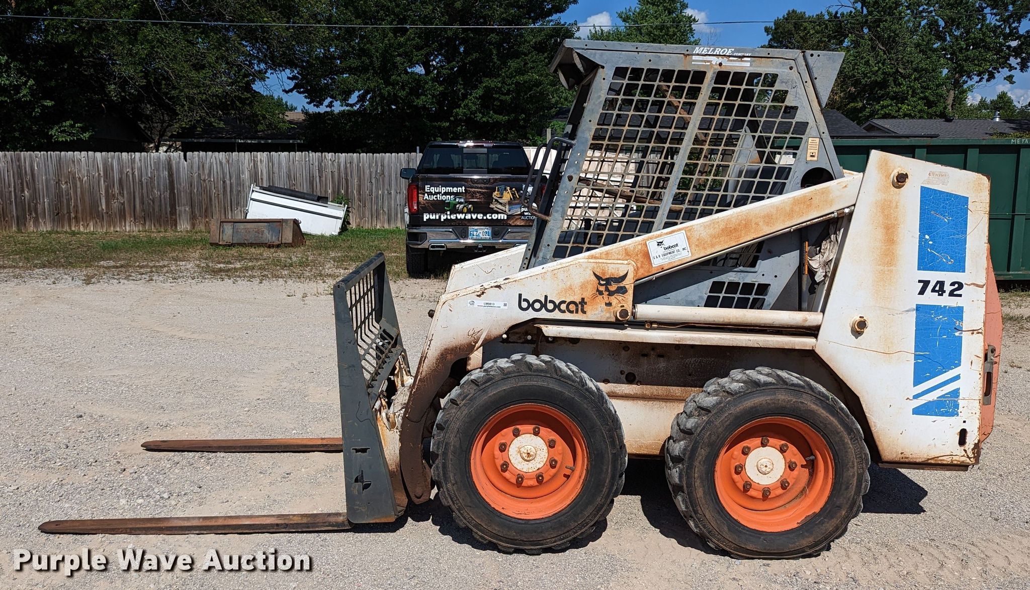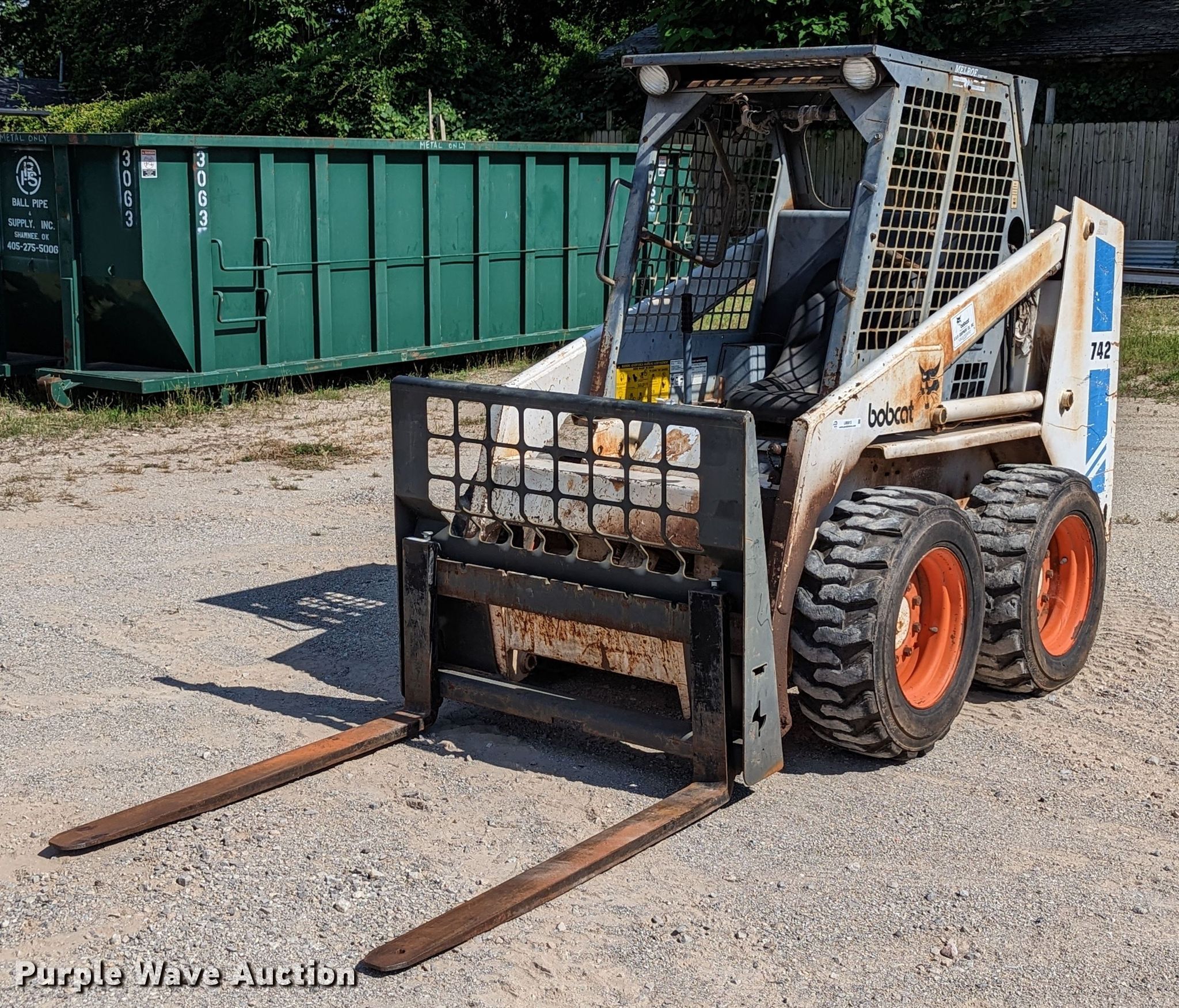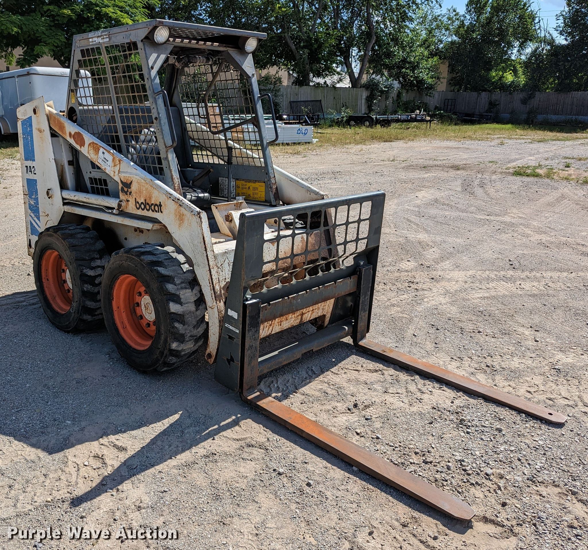 Purple Wave is selling a used Skid Steer Loader in Oklahoma. This item is a 1989 Bobcat 742 skid steer loader with the following: Hours: 1,761 on meter, Serial: 507423089
