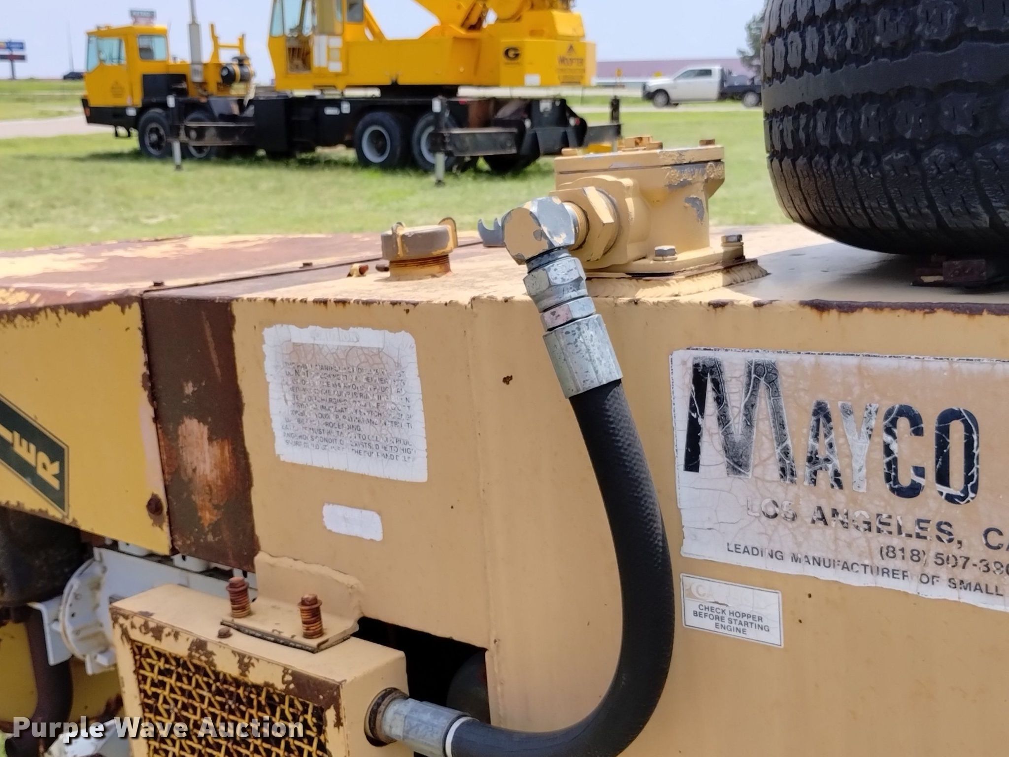 Mayco ST30 concrete pump. Hours: 1,169 on meter, Serial: 920802. Engine Hatz , Cylinders: 3, Fuel type: Diesel. Features 36" hopper, 5" discharge. Tires Rear: 225/75R15. Notes No battery , Unknown operating condition. This is worksite support equipment and will not come with a title. Transfer of ownership documentation will be a bill of sale. Woofter Construction & Irrigation. 1965 Thielen Avenue. Colby, KS 67701