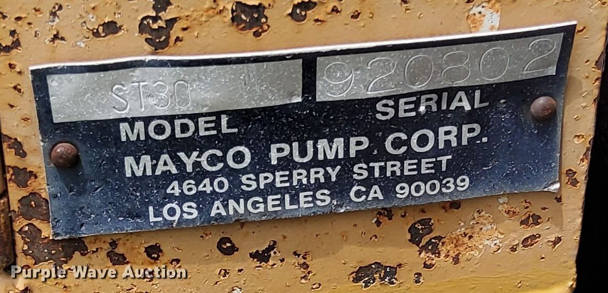 Purple Wave is selling a used Concrete Pump in Kansas. This item is a Mayco ST30 concrete pump with the following: Hours: 1,169 on meter, Serial: 920802