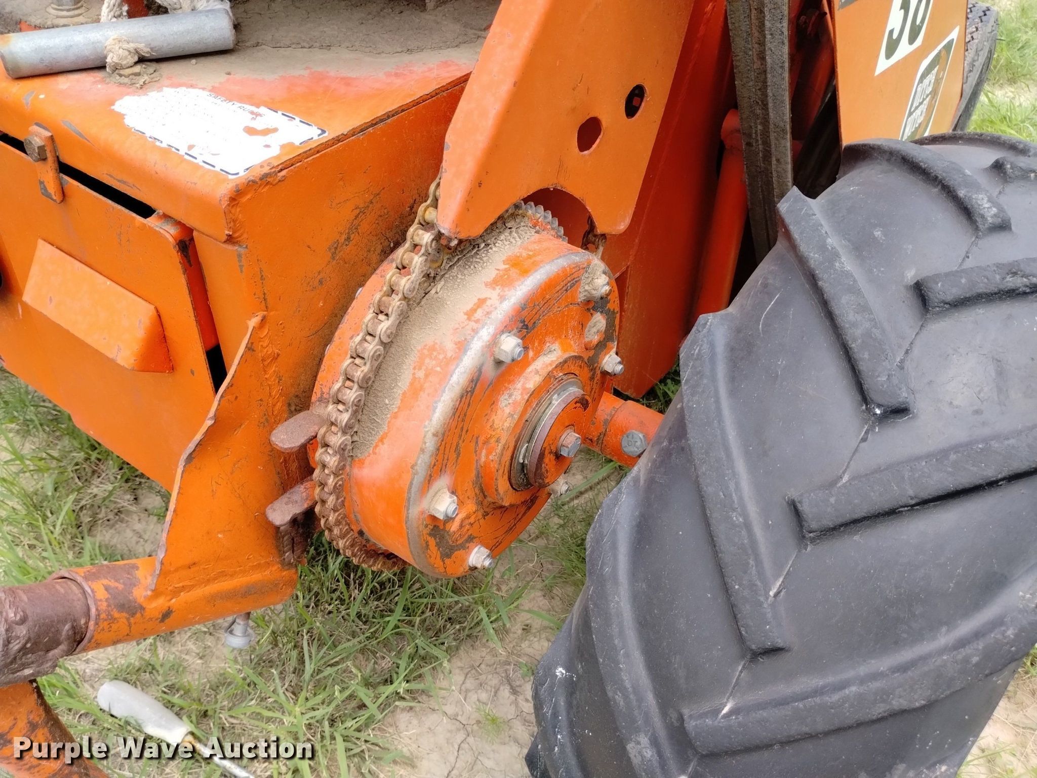 Ditch Witch M422 trencher. Serial: 123891. Engine Wisconsin , Cylinders: 1, Fuel type: Gas. Transmission Manual, 3F - 1R. Features Estimated dig depth: 52", Cutting width: 5", Teeth: Dirt. Tires Front: 4.80-8, Rear: 23x8.50-12. Notes Flat tires, Unknown operating condition. Woofter Construction & Irrigation. 1965 Thielen Avenue. Colby, KS 67701