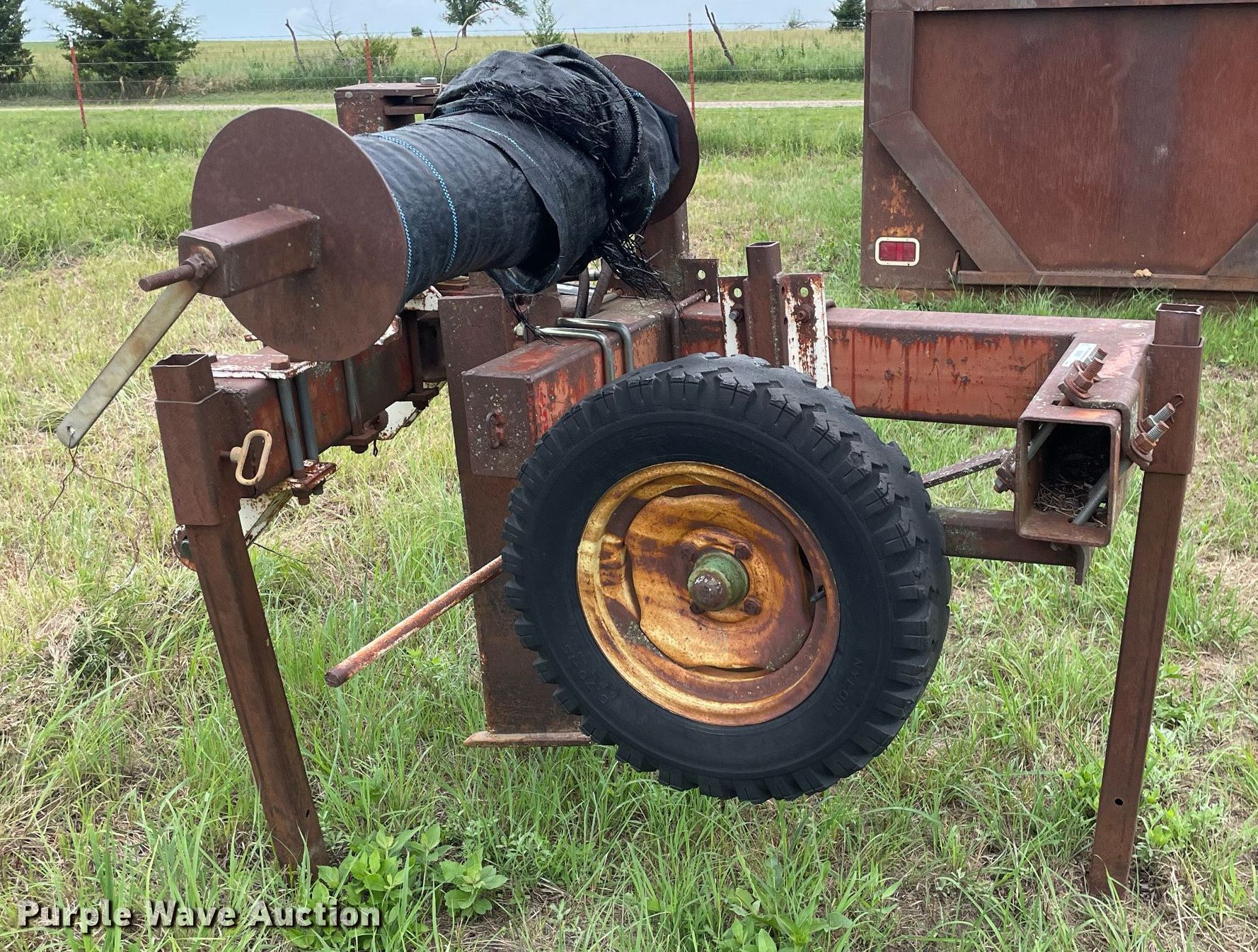 Silt fence installer. Hitch: Three point, Capacity: 36" diameter fence, Tire size: 6.70-15. Penwell Equipment Co. Cassoday, KS 66842