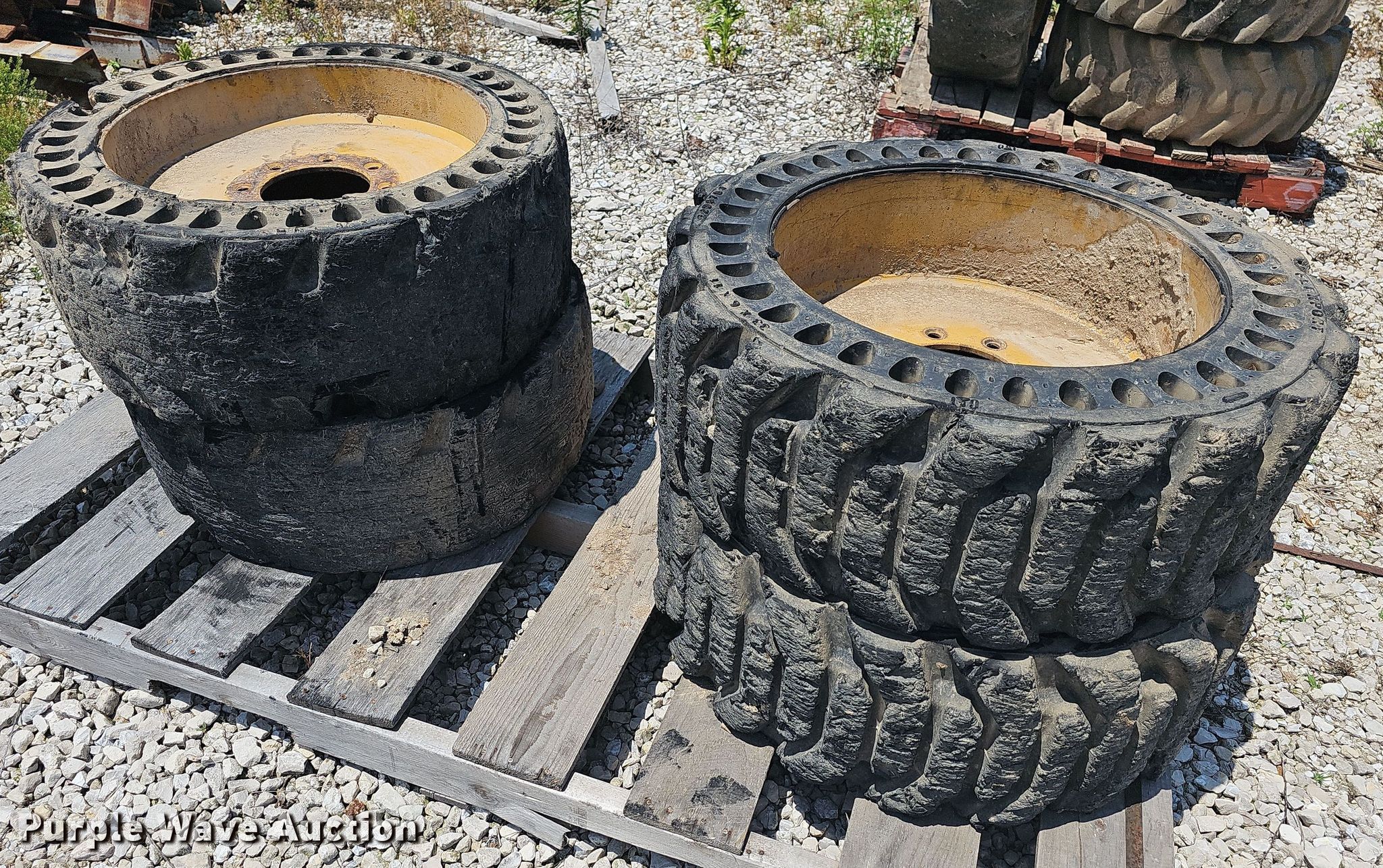 Purple Wave is selling a used Industrial Tires or Tracks in Missouri. This item is a (4) 12x16.5 wheels and tires with the following: Unknown operating conditions