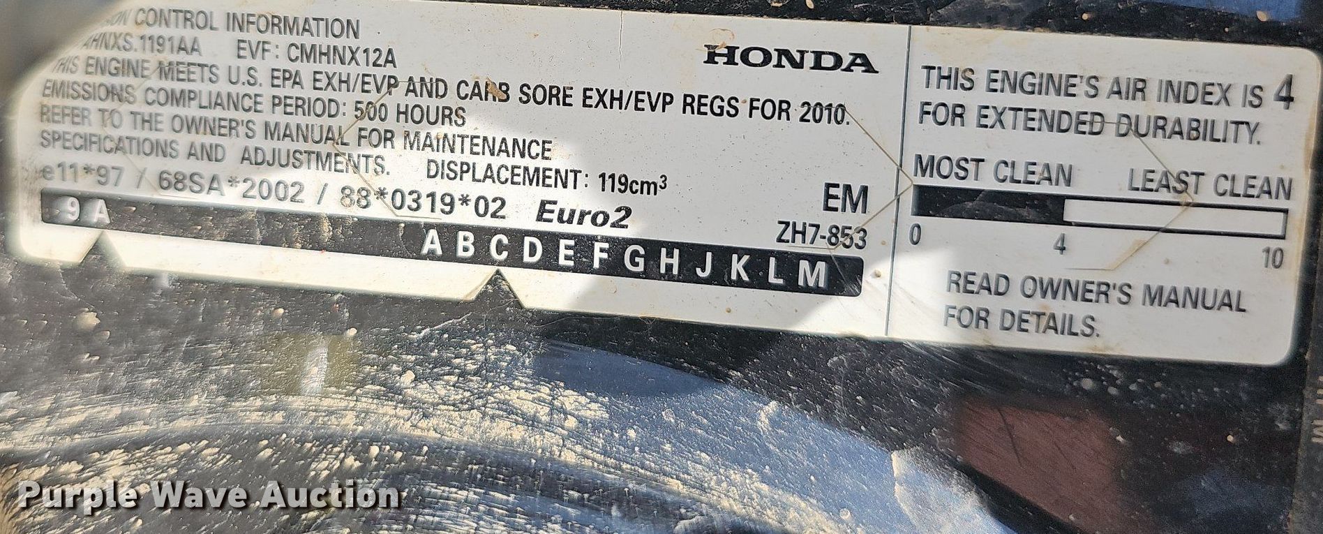 ESI EVC60H plate compactor. Serial: 10-1027-07, Plate 14" x 19". Engine Honda , Cylinders: 1, Fuel type: Gas. Notes Unknown operating condition. Marshfield Rental Center. 341 McNabb Road. Marshfield, MO 65706