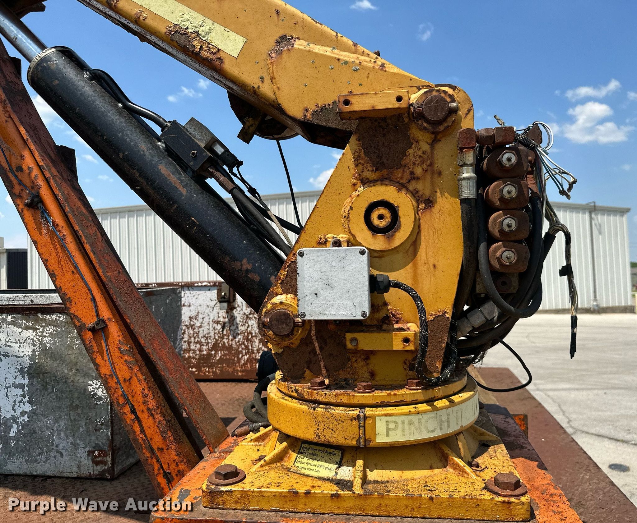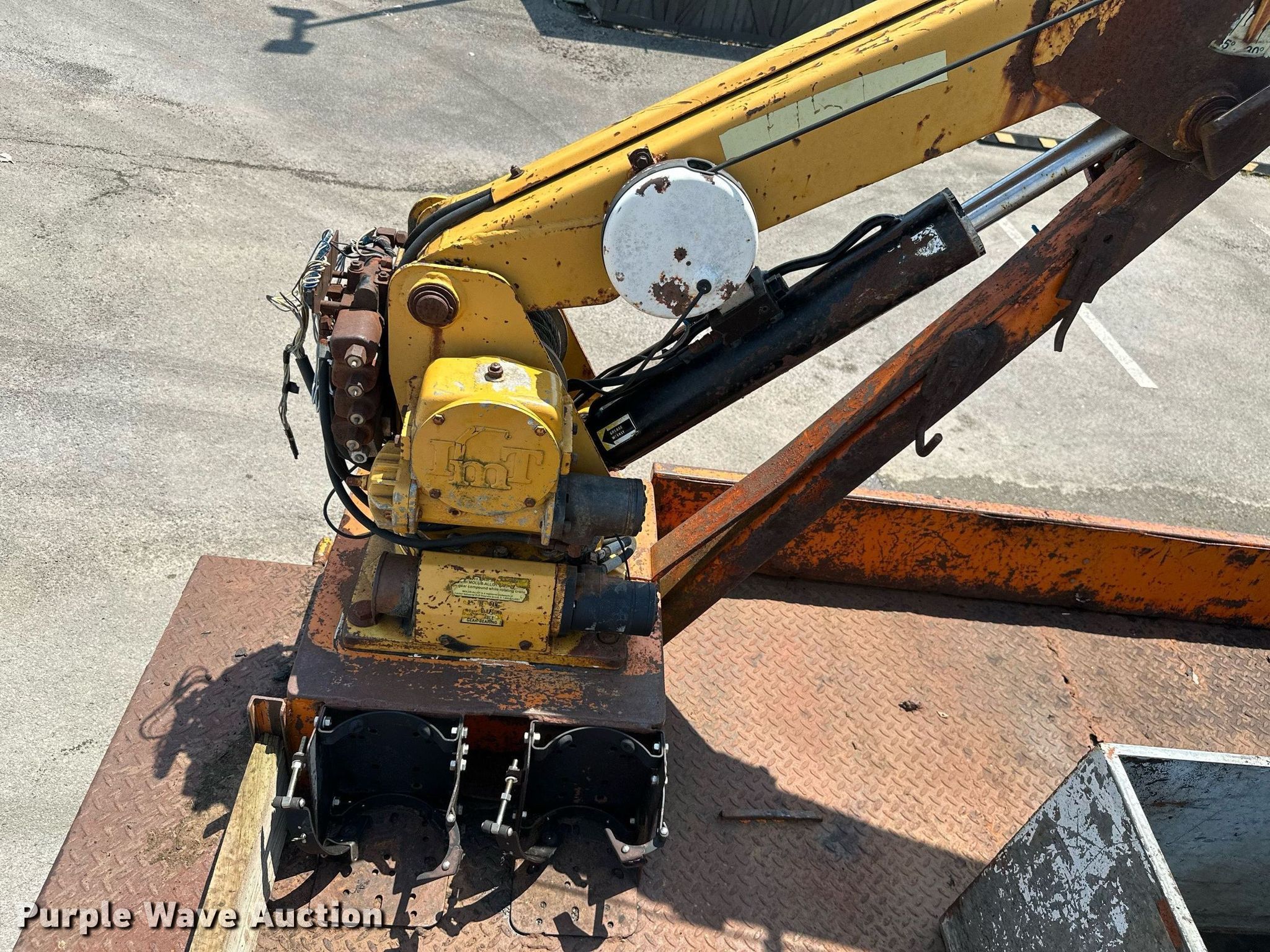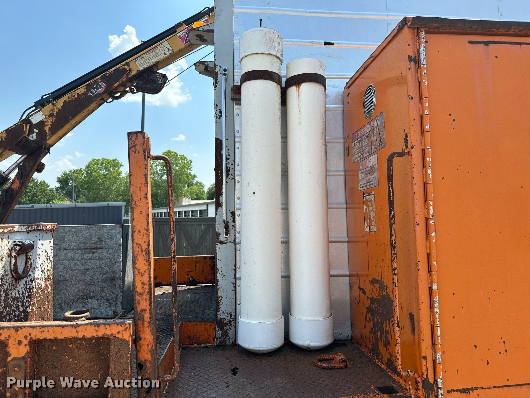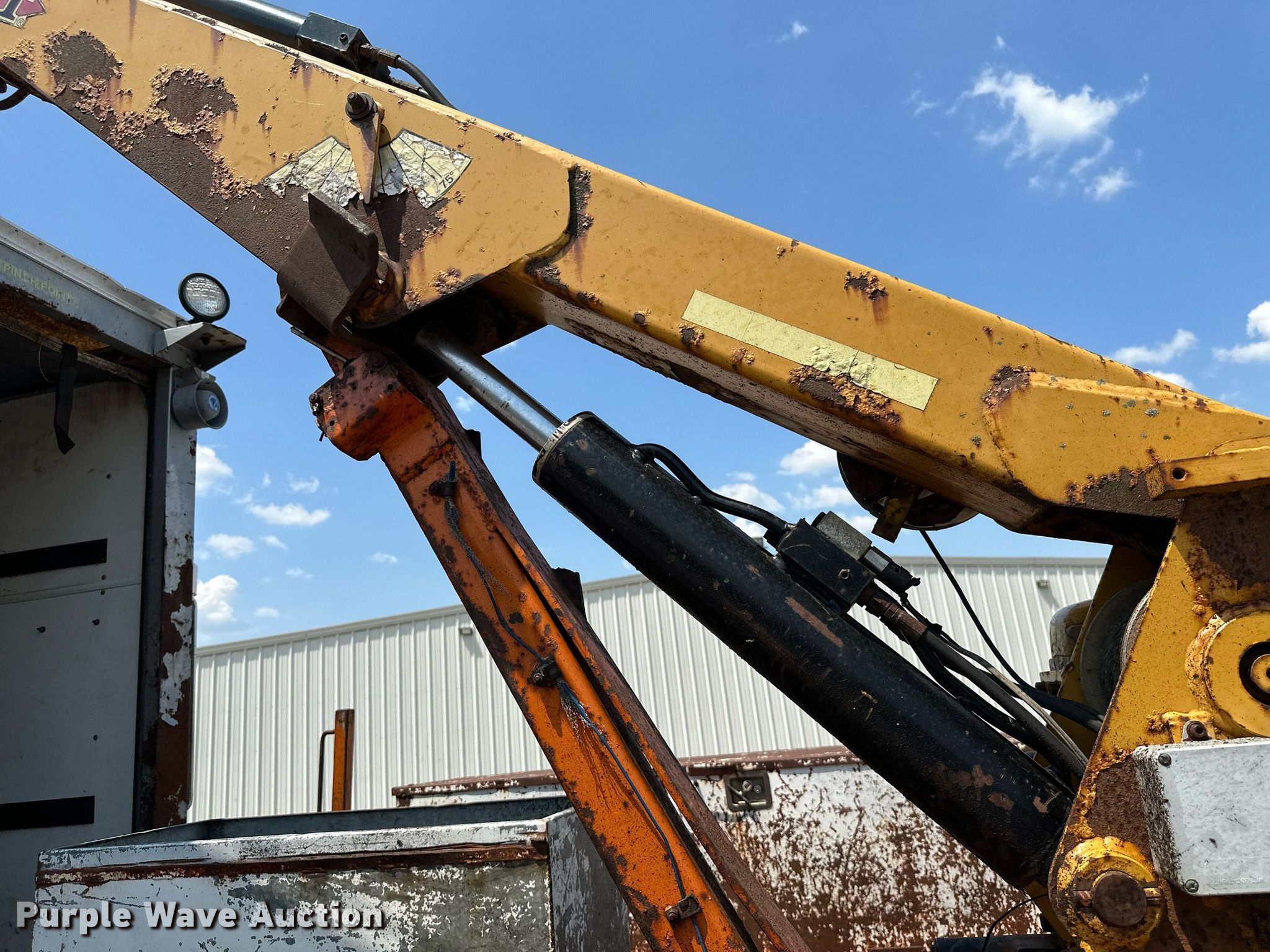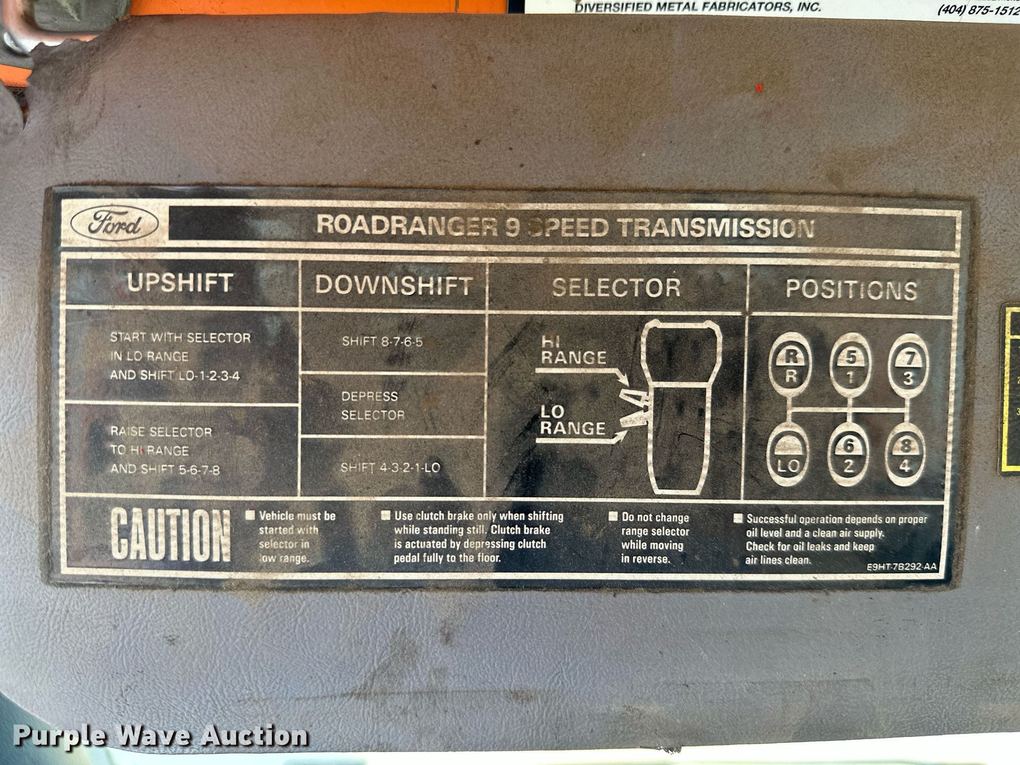 1995 Ford F800 utility / service truck. Miles: 177,589 on odometer, VIN: 1FDXF80E5SVA69985. Engine Cummins C Series, Displacement: 8.3L, Cylinders: 6, Fuel type: Diesel. Transmission Ford Road Ranger, Manual, Speed: 9. Chassis Axles: Single, Suspension: Spring, Brakes: Air, PTO, Wet kit, GVWR: 31,000 lbs, Wheelbase: 214". Interior AC, Heat, Auxiliary controls. Features Bed 18' 6" L x 7' 10" W, Box height: 6' 10", Crane IMT 2015, Maximum boom length: 20' Maximum lift capacity: 2,200 lbs.. Tires Size: 11R22.5. Notes Windshield chipped or cracked. Oklahoma title. Title distribution may be delayed up to 14 days from verification of funds. 13780 E 146th St N. Collinsville, OK 74021
