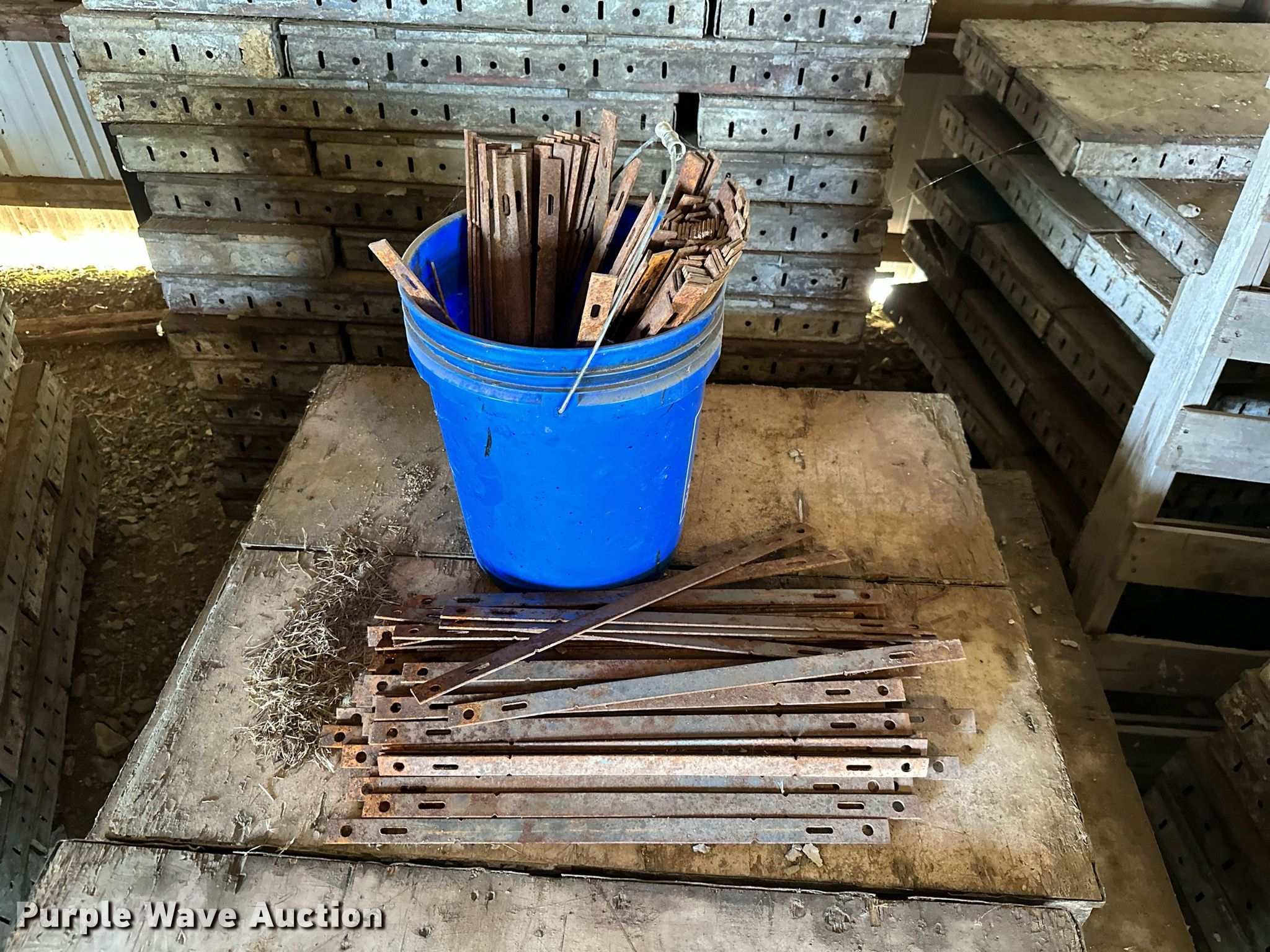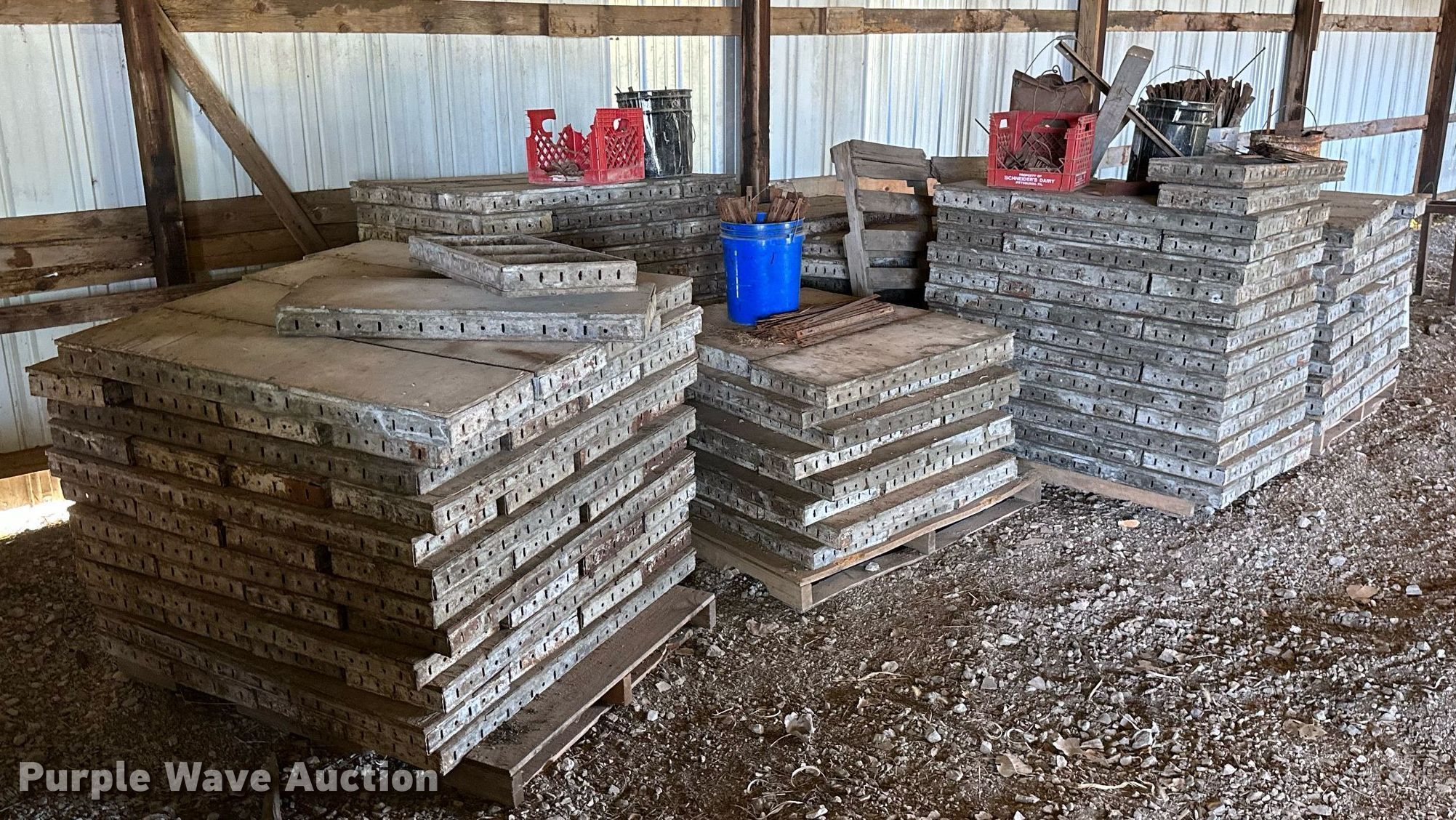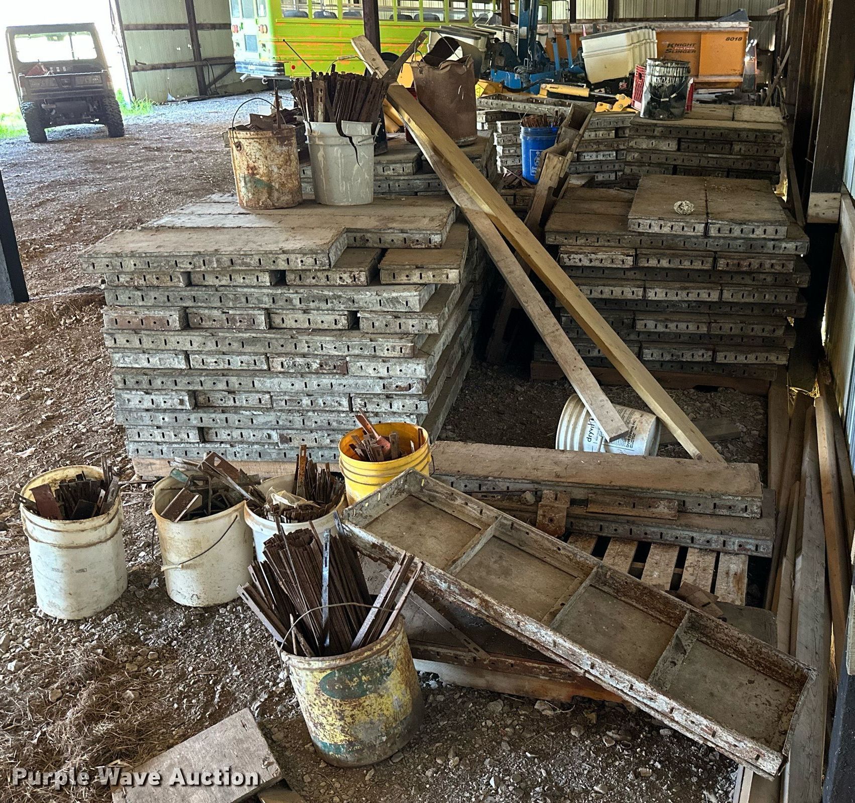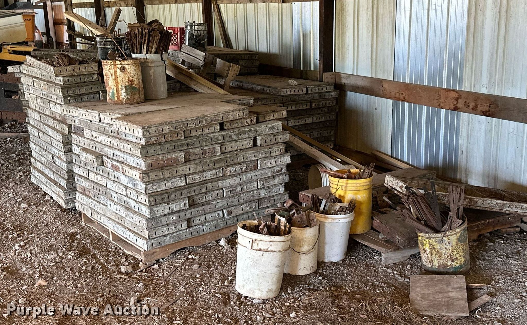 Purple Wave is selling a used Concrete Equip. or Acces. in Kansas. This item is a Approximately 300 concrete form pieces with the following: (3) 3' x 16", (2) 4' x 16", (54) 4' x 14", (25) 3' x 14", (114) 4' x 12", (103) 3' x 12", (8) buckets of ties, (2) buckets of pins