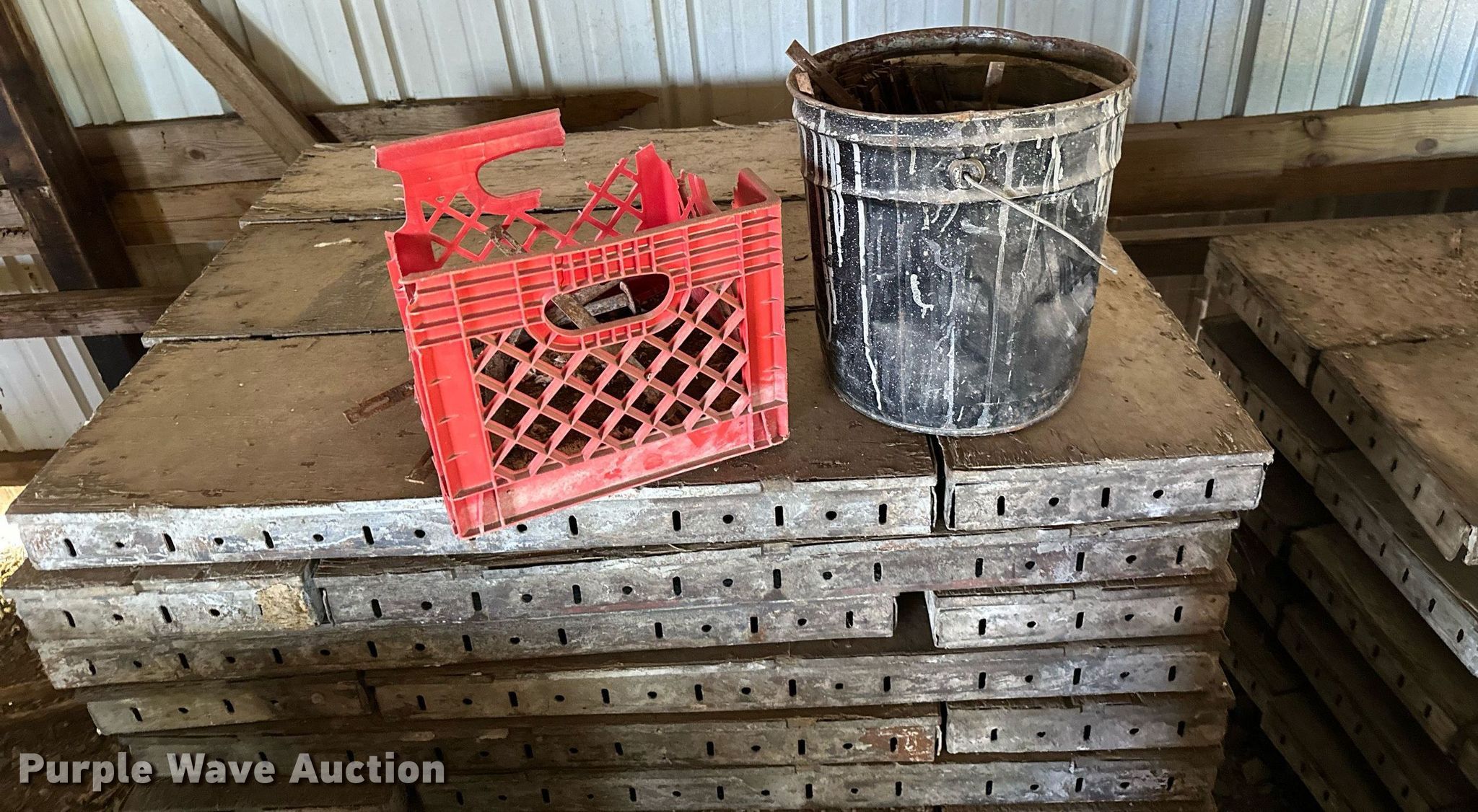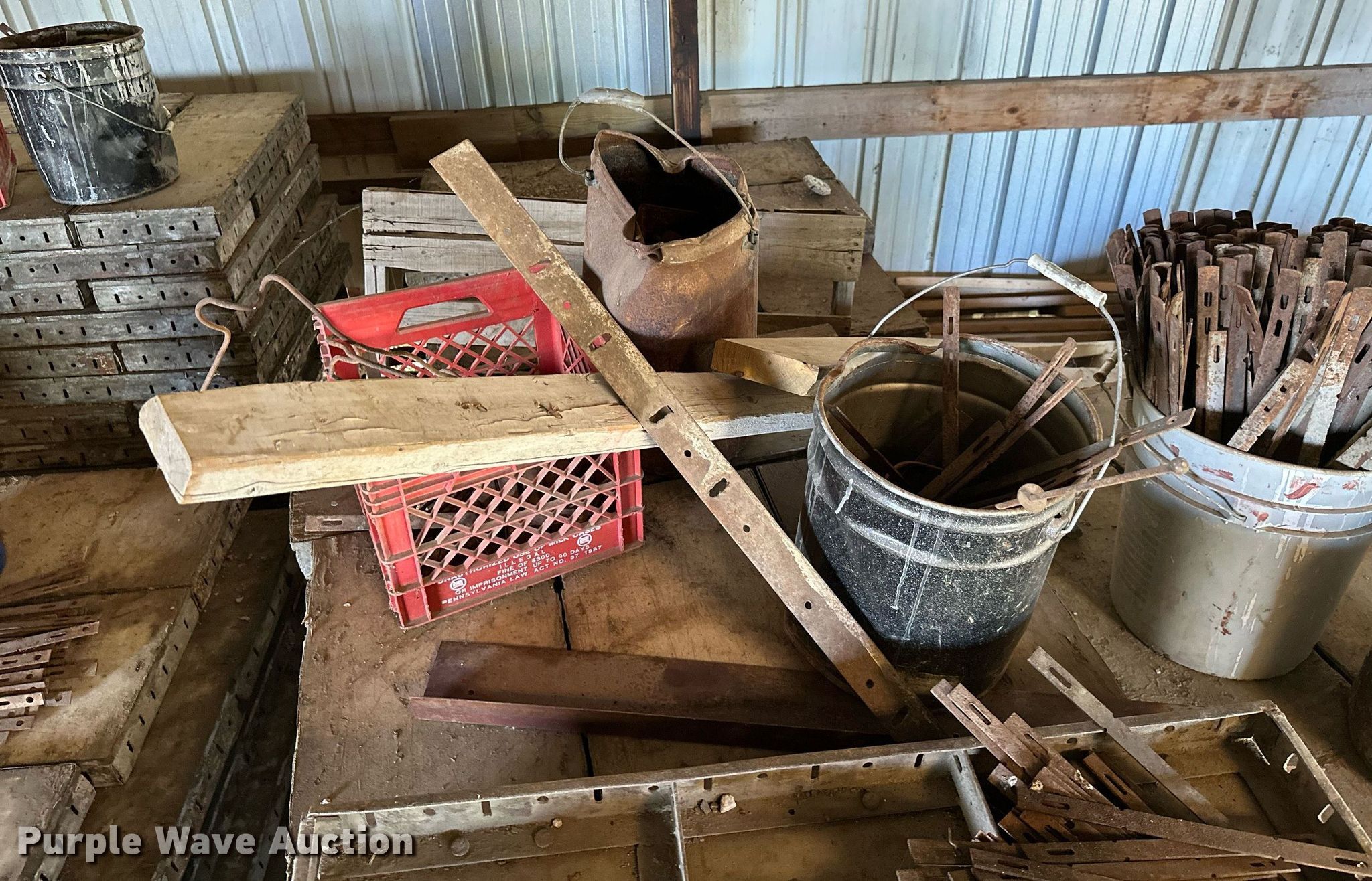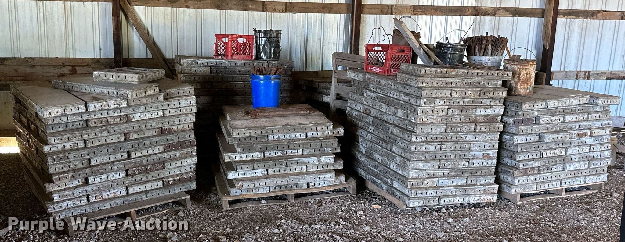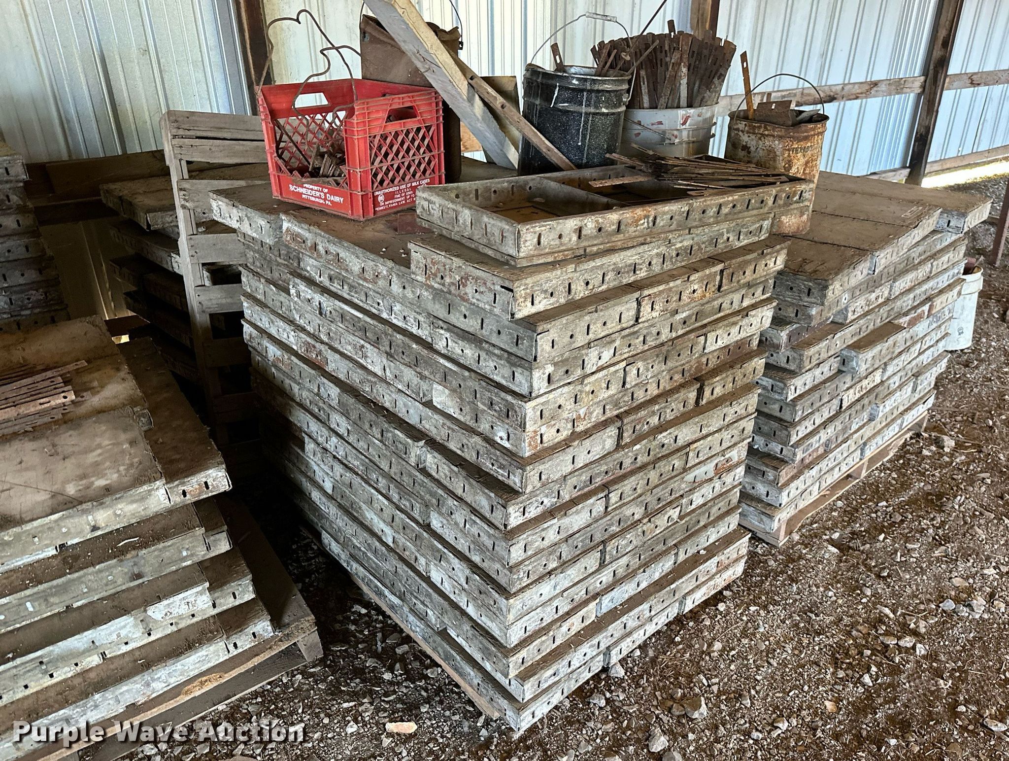 Purple Wave is selling a used Concrete Equip. or Acces. in Kansas. This item is a Approximately 300 concrete form pieces with the following: (3) 3' x 16", (2) 4' x 16", (54) 4' x 14", (25) 3' x 14", (114) 4' x 12", (103) 3' x 12", (8) buckets of ties, (2) buckets of pins