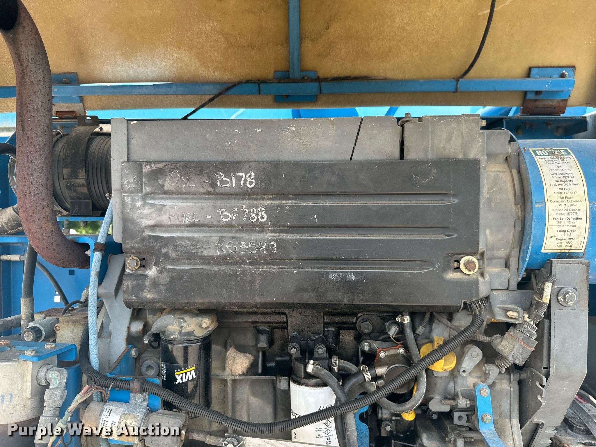 2004 Genie Z-60/34 boom lift. Hours: 545 on meter Actual hours unknown, Serial: Z6004-4431. Engine Cylinders: 4, Fuel type: Diesel. Chassis Four wheel drive. Features Articulating boom, Rough terrain, Maximum lift capacity: 500 lbs, Maximum reach length: 34', Maximum lift height: 60', Platform: 33" L x 92" W, AC power outlet, Controls: Platform, Ground, Platform rotation: Hydraulic. Tires Tire size: IN385/65D19.5. Notes Possible electrical issues. New Life Ranch, Inc.. Adair, OK 74330