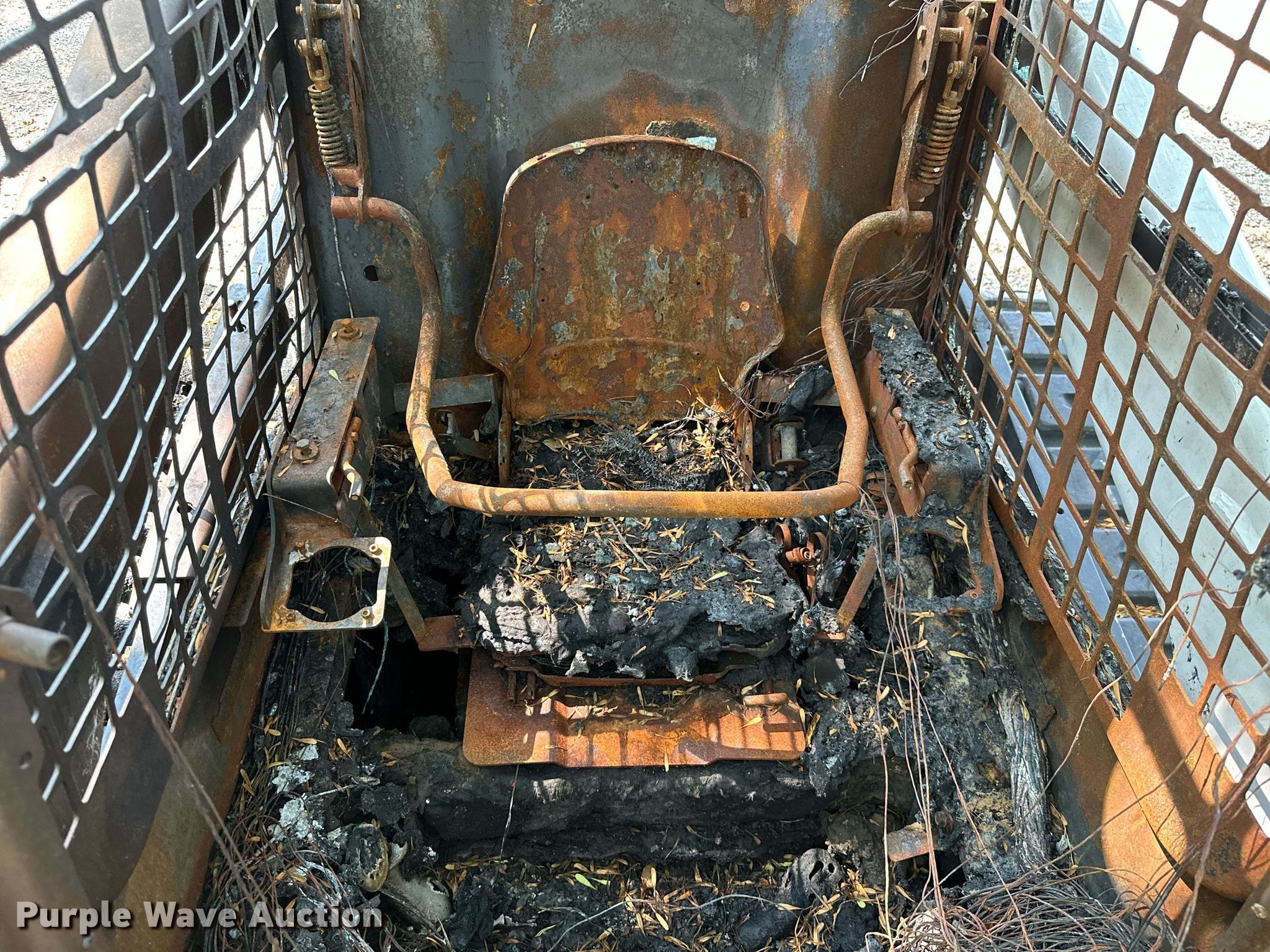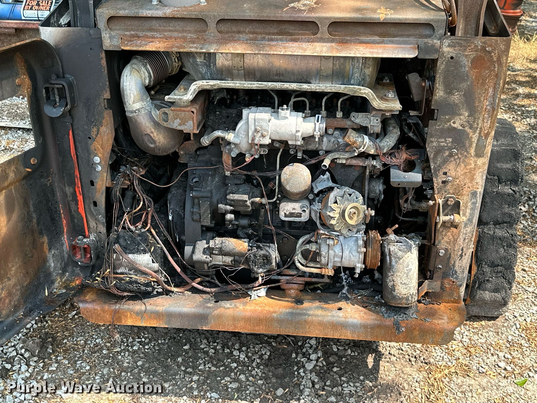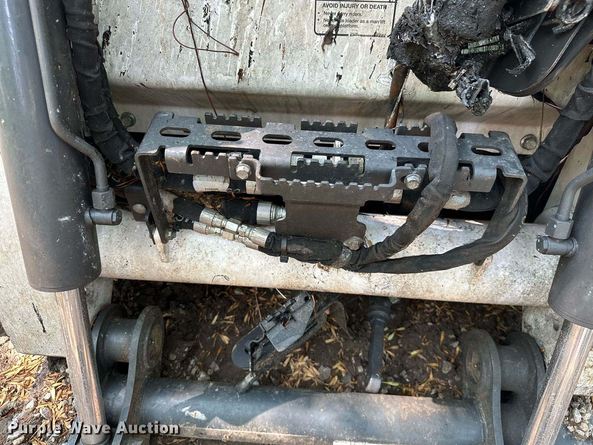 Bobcat T770 tracked skid steer loader. Hours: Unknown. Engine Cylinders: 4, Fuel type: Diesel. Transmission Hydrostatic. Features Auxiliary hydraulics, Quick coupler: Hydraulic. Tracks Width: 18". Notes Fire damage, Parts missing, Non-operational unit. 3B Ranch. Oologah, OK 74053