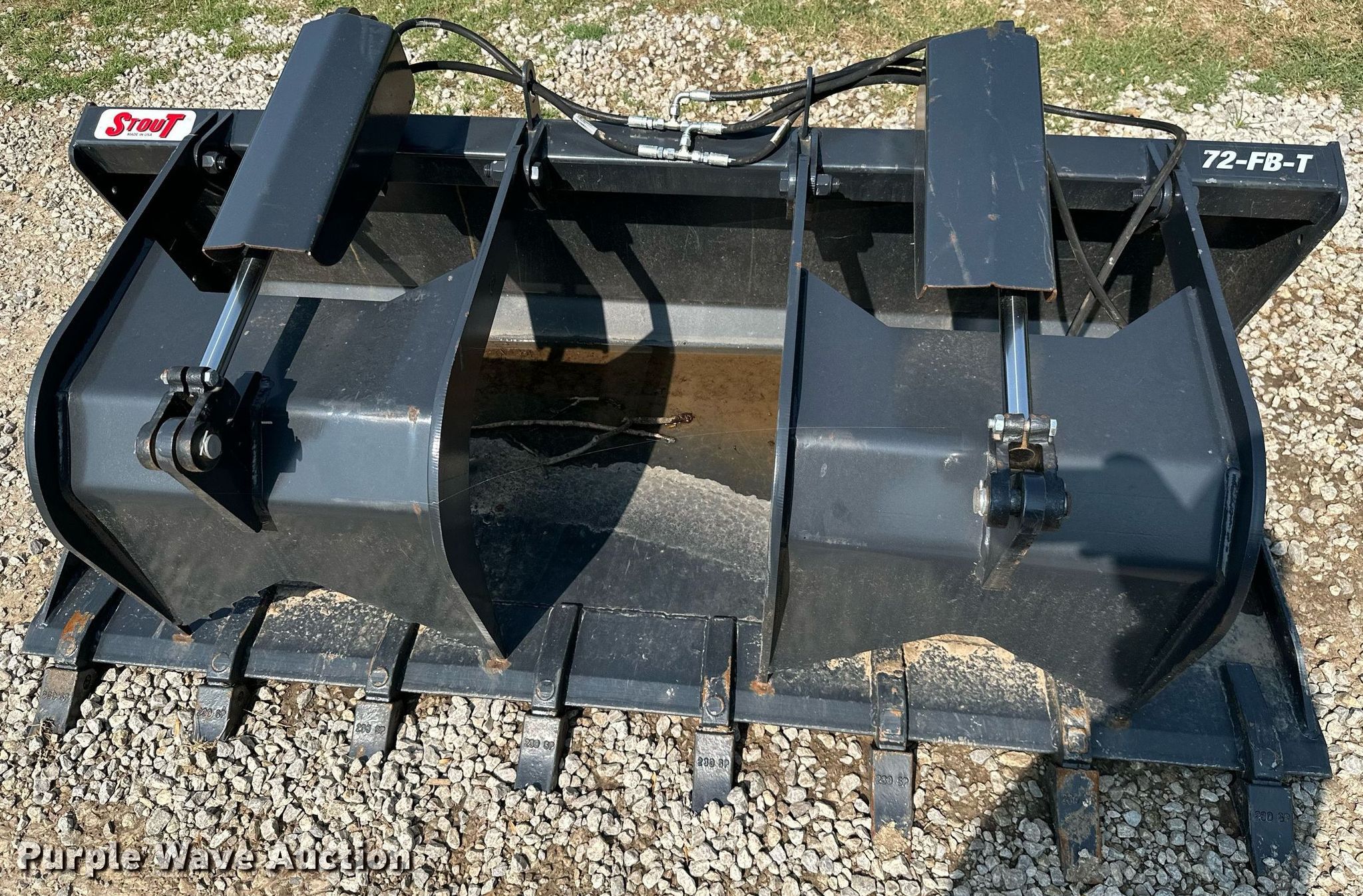 Purple Wave is selling a used Skid Steer Attach. in Oklahoma. This item is a Bobcat 72-FB-T 72"W skid steer grapple bucket with the following: Cutting edge: Weld-on, Teeth: Bolt-on
