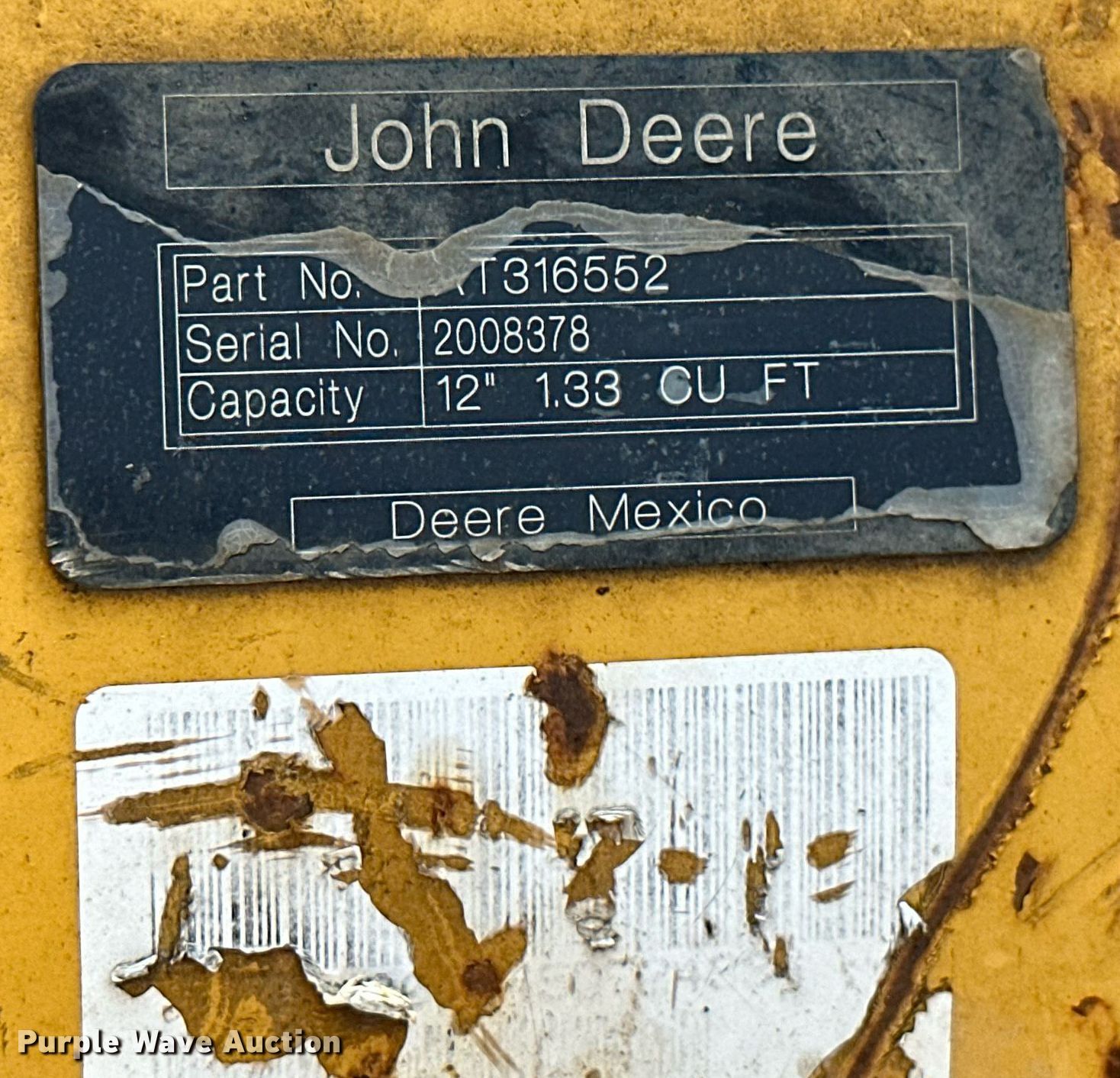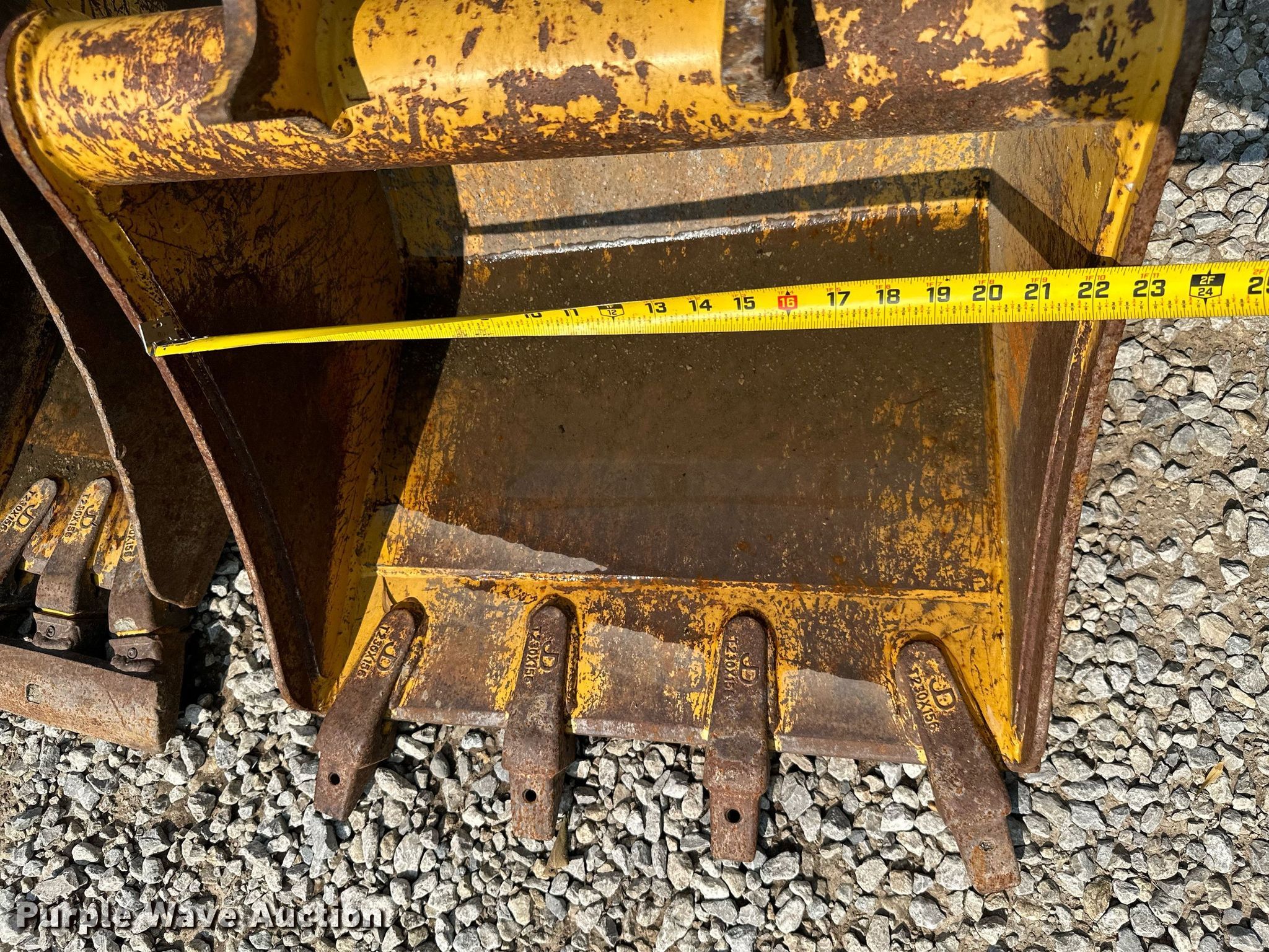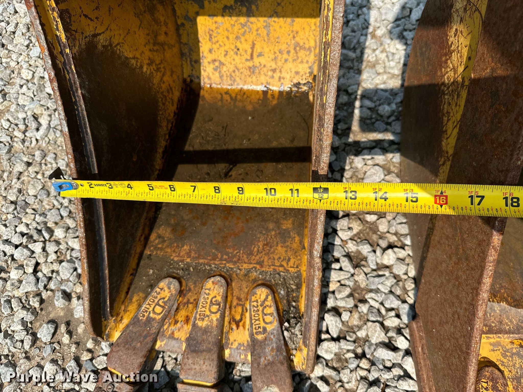 (2) John Deere excavator buckets. John Deere. Serial: 1972106. Features Capacity: 3.29 cu.yd., Width: 22", Cutting edge: Weld-on, Teeth: 4. John Deere Serial: 2008378. Features Capacity: 1.33 cu.yd., Width: 12", Cutting edge: Weld-on, Teeth: 3. 3B Ranch. Oologah, OK 74053