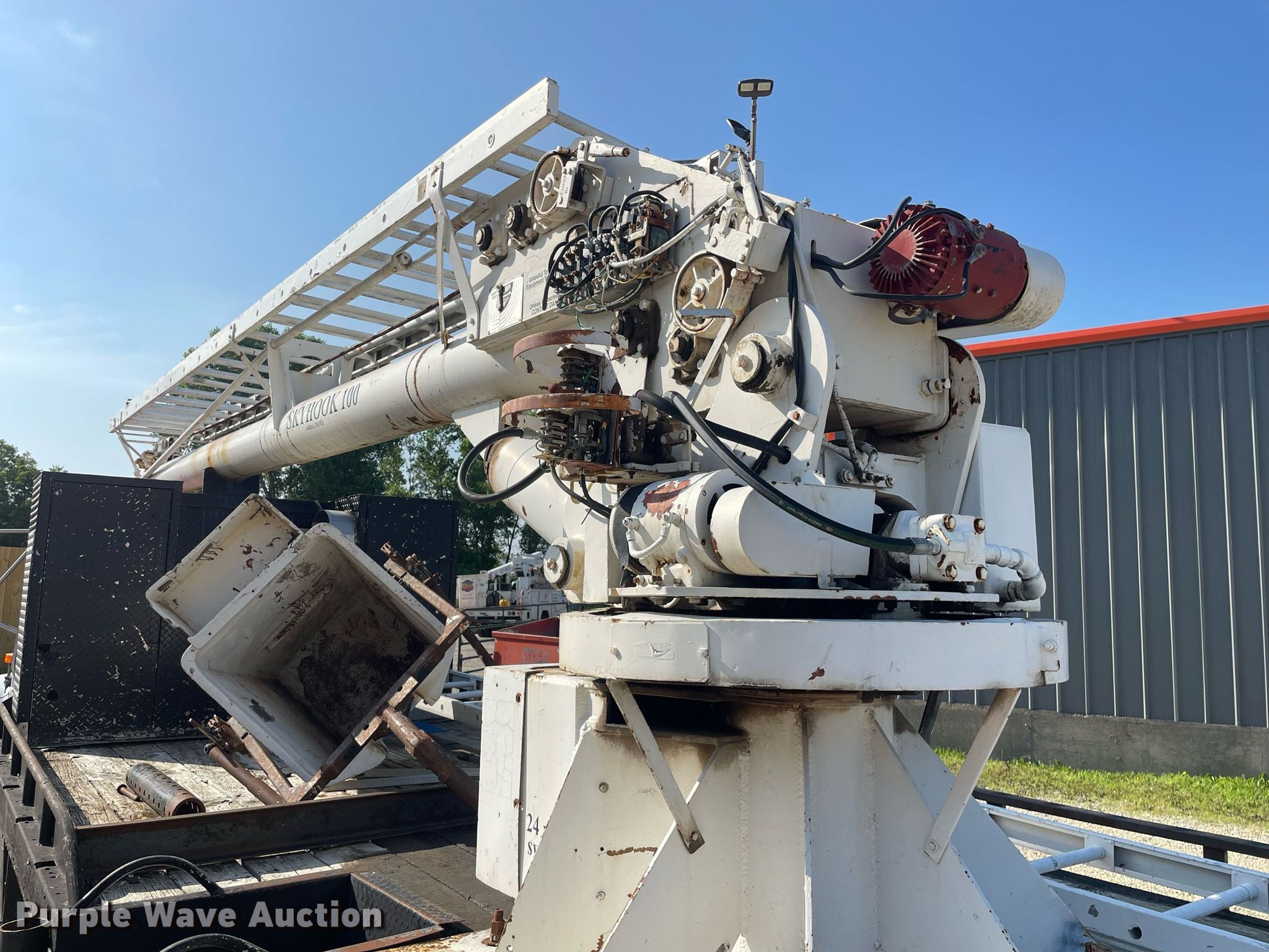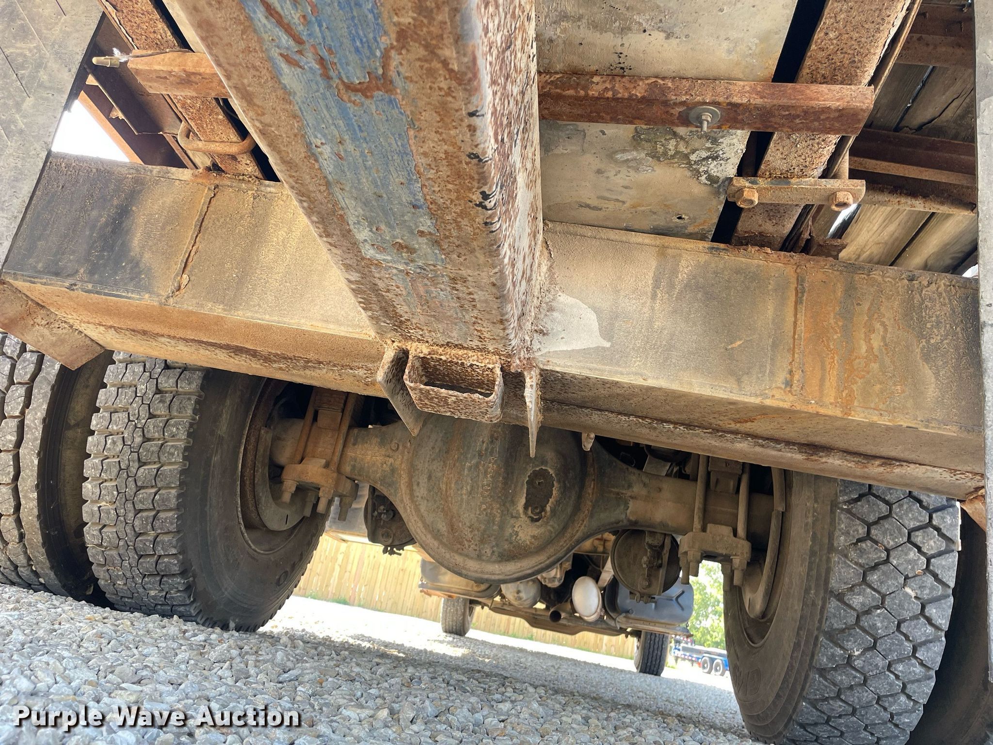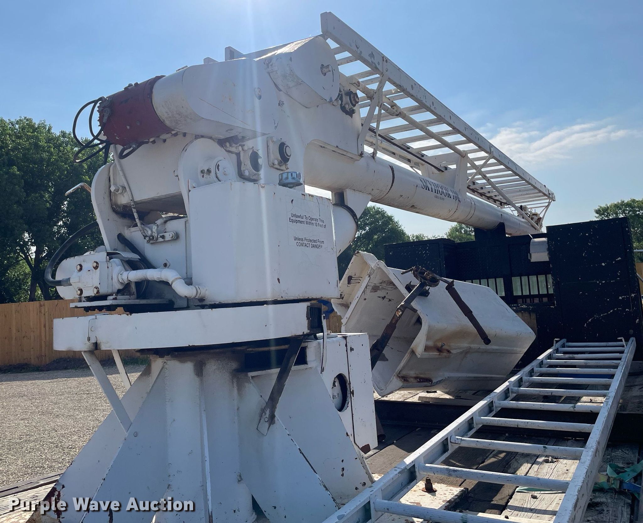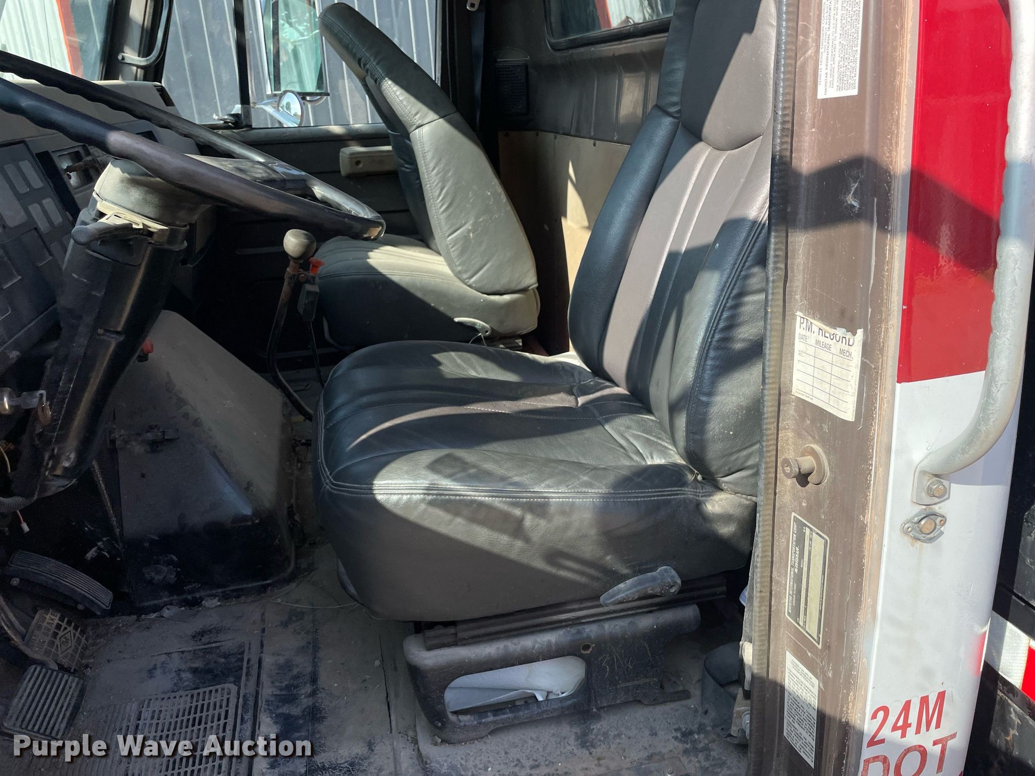 1991 International 4900 crane truck. Miles: 182,164 on odometer, Hours: 5,392 on meter, VIN: 1HTSDNUN2MH372658. Engine International DT466, Displacement: 7.6L, Cylinders: 6, Fuel type: Diesel. Transmission Spicer Double Duty D , Manual, Speed: 5, plus 2. Chassis Axles: Single, Suspension: Spring, Brakes: Air. Interior AC, Heat. Features Flatbed 22' 2" L x 95" W, Crane Aerial Cranes Skyhook 100, Boom Telescopic, Maximum boom length: 100' Sections: 4, Maximum lift capacity: 4,000 lbs, Boom controls Ground, Crane block Sheaves: 1, Lift chart, Man basket. Tires Size: 11R22.5. Notes Battery issues, weak, Crane rotational issues, stick. Kansas title. Title distribution may be delayed up to 30 days from verification of funds. Gleason & Son Signs Inc.. Salina, KS 67401