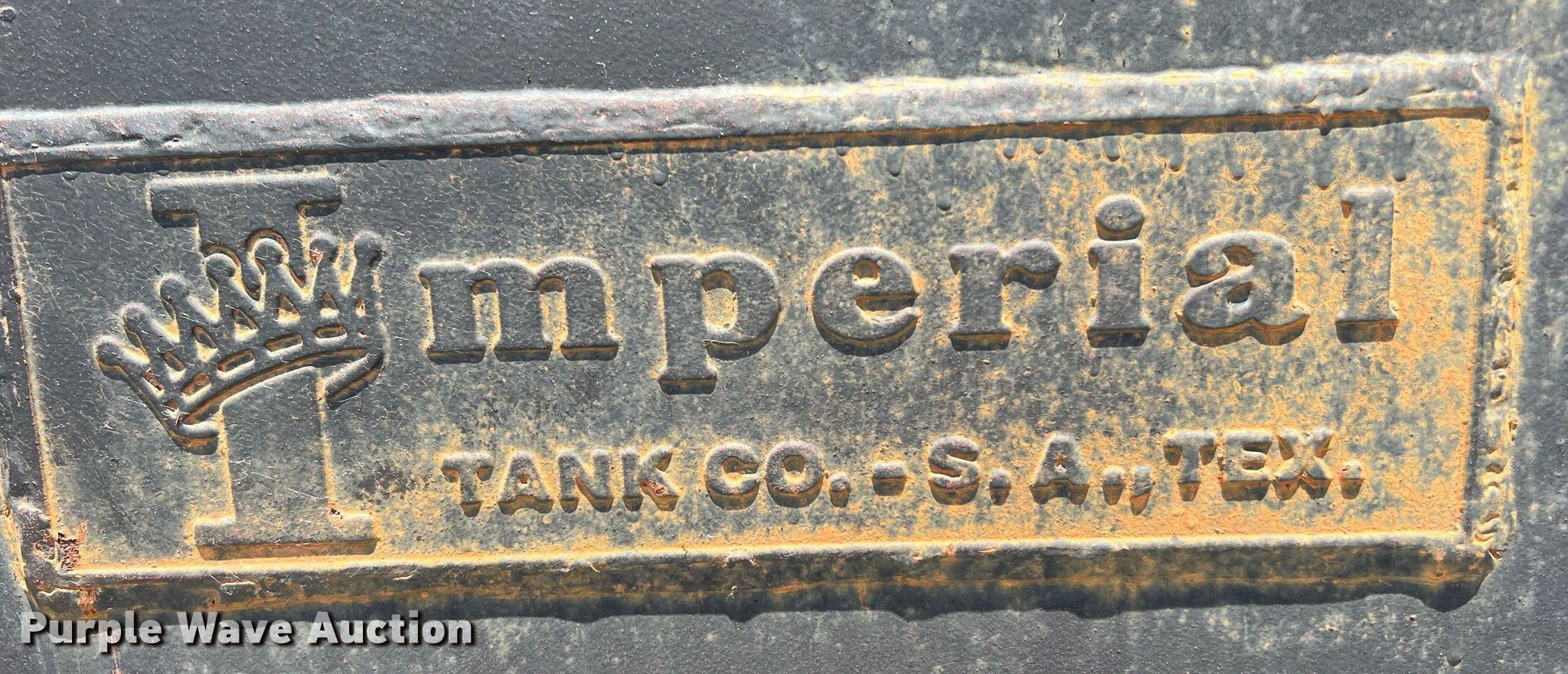 Imperial Tank Co. water tank bed has sold in Bertram, Texas for $577.50. Item MG9028 sold on July 20th, 2023.