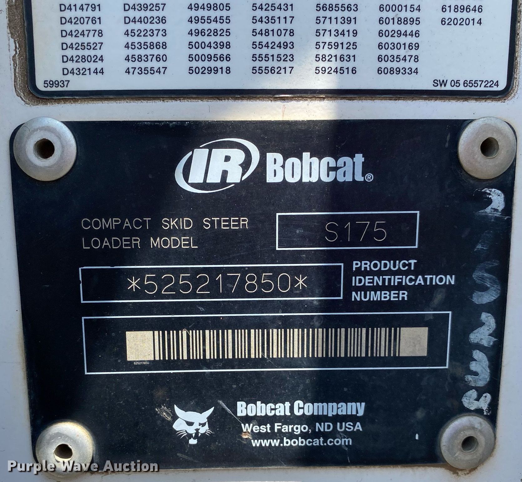 Purple Wave is selling a used Skid Steer Loader in Oklahoma. This item is a 2005 Bobcat S175 skid steer loader with the following: Hours: 3,843 on meter, Serial: 525217850