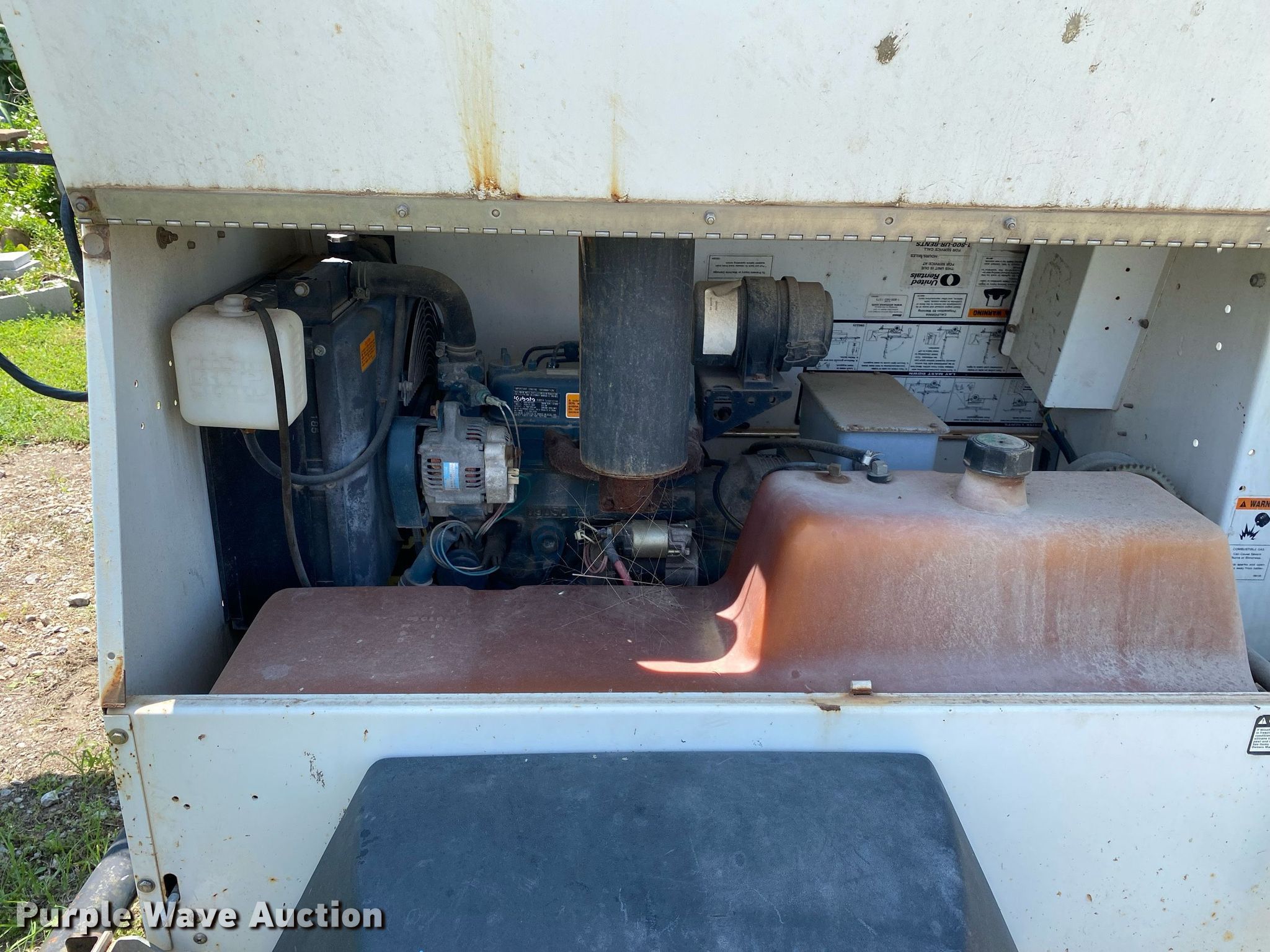 Allmand Night Lite Pro light plant. Hours: 4,886 on meter, Serial: 1995PRO08. Engine Kubota D905-BG-ES01, Displacement:.898L, Cylinders: 3, Fuel type: Diesel. Features Generator Electric start, Fuel tank, Light plant Bulbs: 4, Tower height: 8', Hoist: Manual. Trailer Axles: Single, Tire size: ST175/80D13. Notes Bulbs missing, Unknown operating condition. Transfer of ownership documentation will be a bill of sale. Rick Scott Construction, Inc. - Inventory Reduction Auction. Tulsa, OK 74107