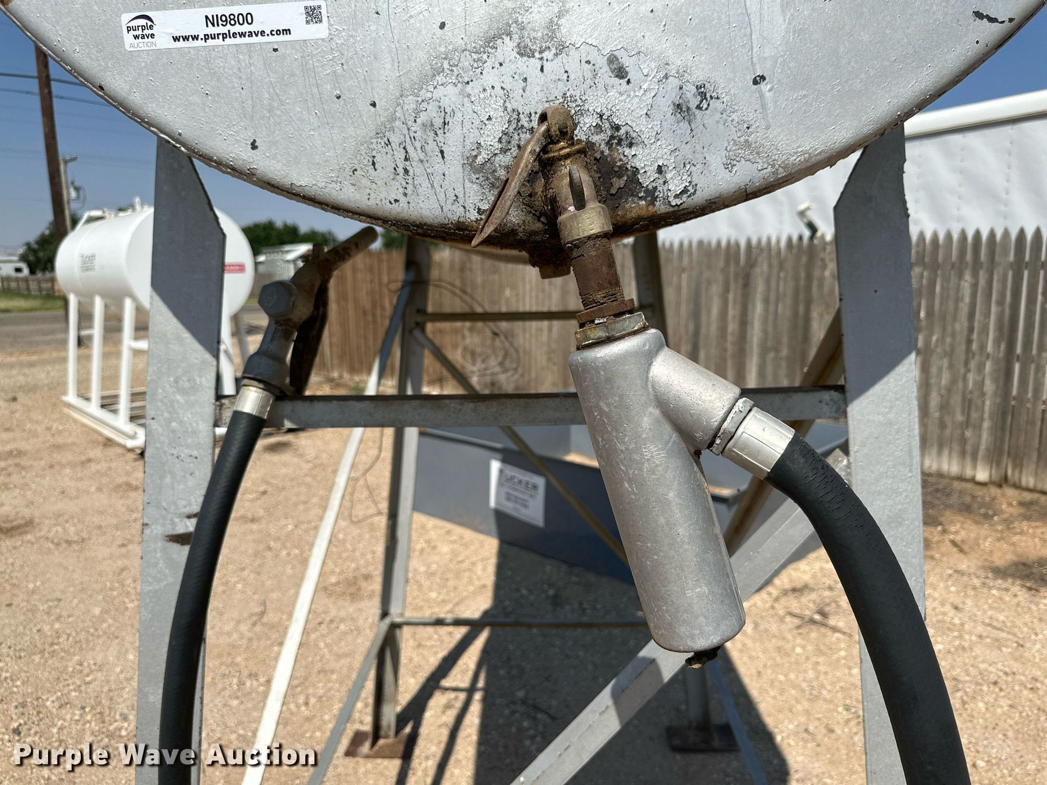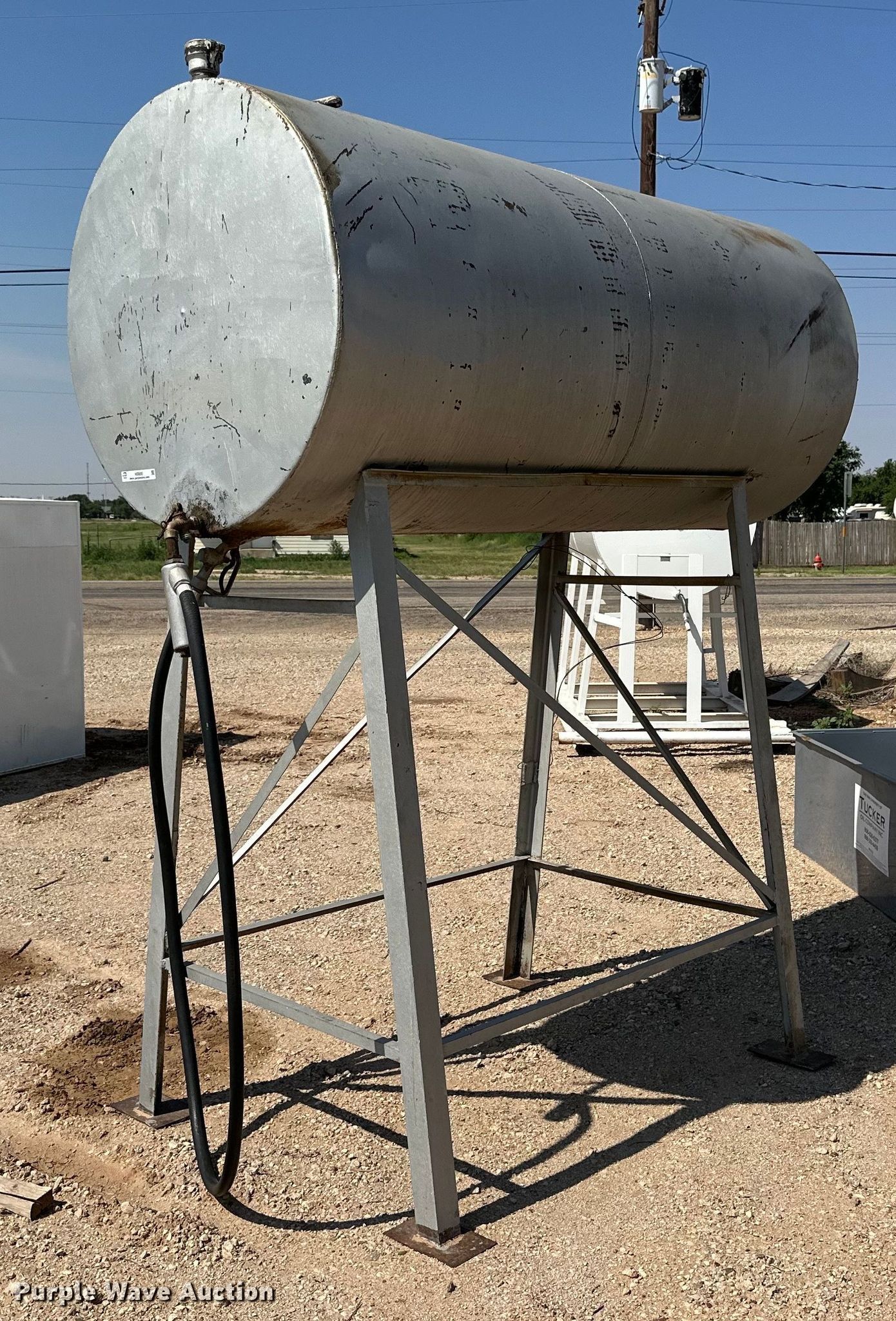 Purple Wave is selling a used Fuel and Lube in Texas. This item is a Diesel Fuel tank with the following: 90" L x 42" diameter, Hose, Nozzle