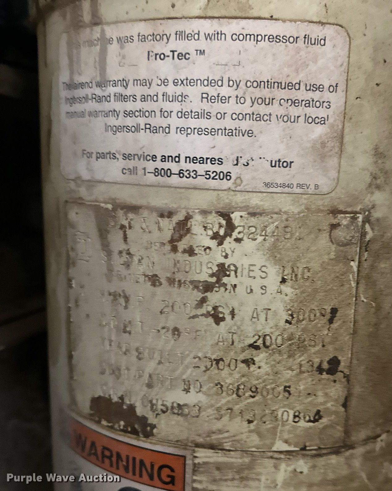 Purple Wave is selling a used Air Compressor in Texas. This item is a 2000 Ingersoll Rand P185WJD air compressor with the following: Hours: 602 on meter, Serial: 311221UDK221
