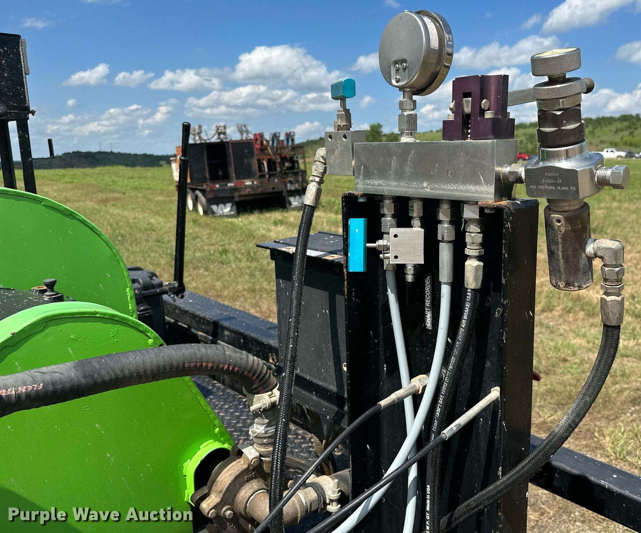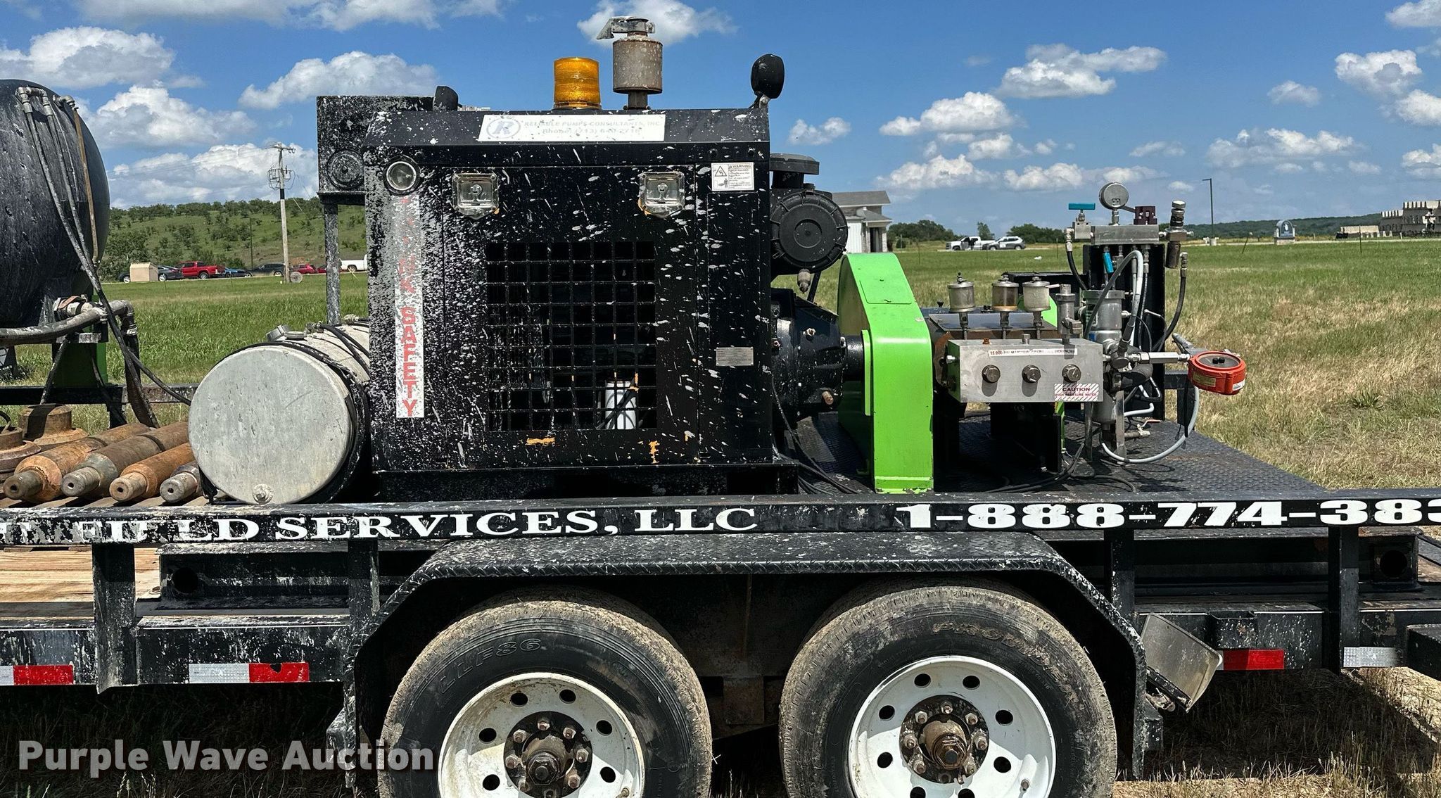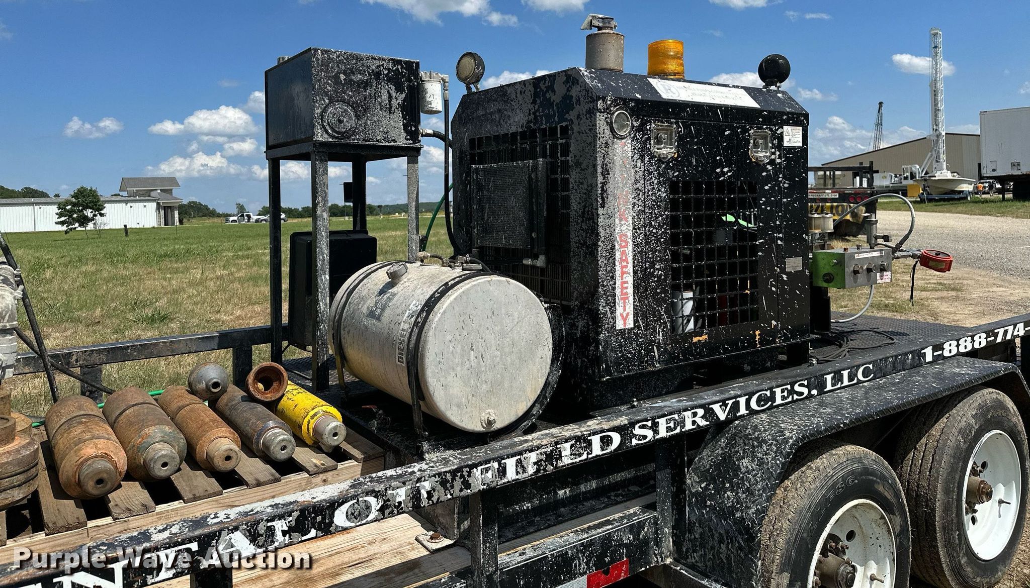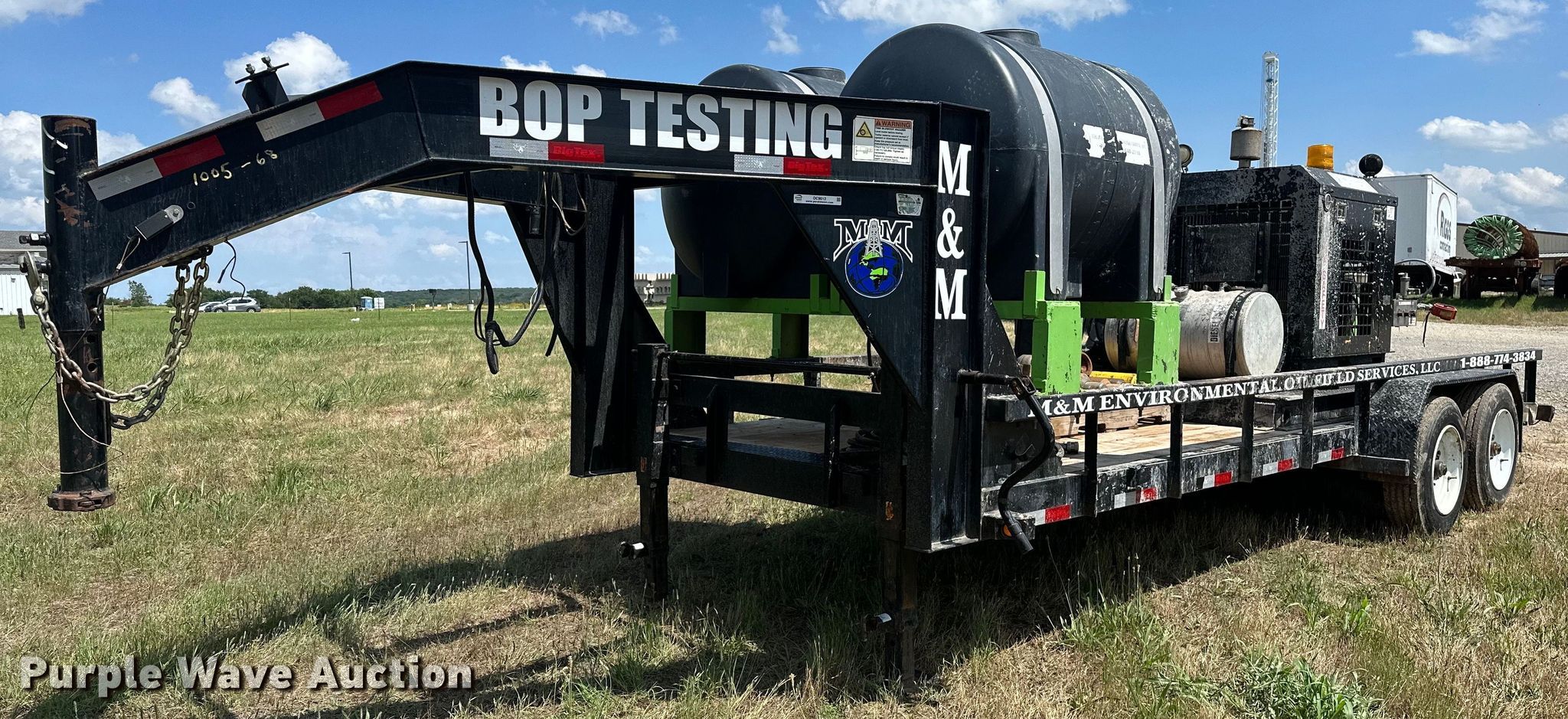 2013 Big Tex equipment trailer with BOP testing unit. VIN: 16VEX2027D2490658. Dimensions Overall: 28' L x 102" W, Deck: 20' L x 80" W. Features Deck type: Wood, Perkins engine Cylinders: 4 , Fuel type: Diesel, Hannay reel , Water pump , (2) tanks Capacity: 225 gallons, Skid 11' L X 72" W. Chassis Hitch: Gooseneck, Landing gear: Dual, Suspension: Spring, Brakes: Electric, Axles: Tandem, GVWR: 16,000 lbs. Tires Steel wheels, Size: 215/75R17. Oklahoma title. Title distribution may be delayed up to 30 days from verification of funds. C-Gawf Construction Inc.. 101 e Shurden industrial blvd. Henryetta, OK 74437