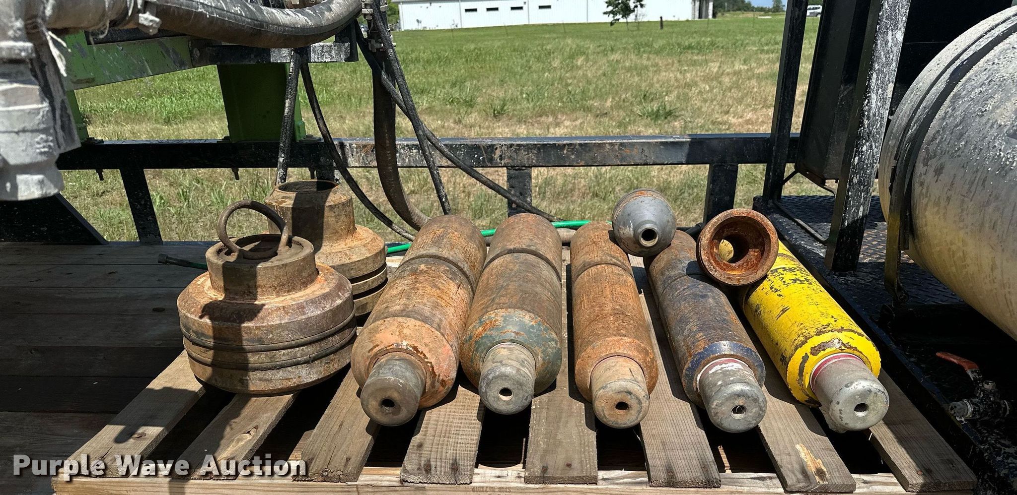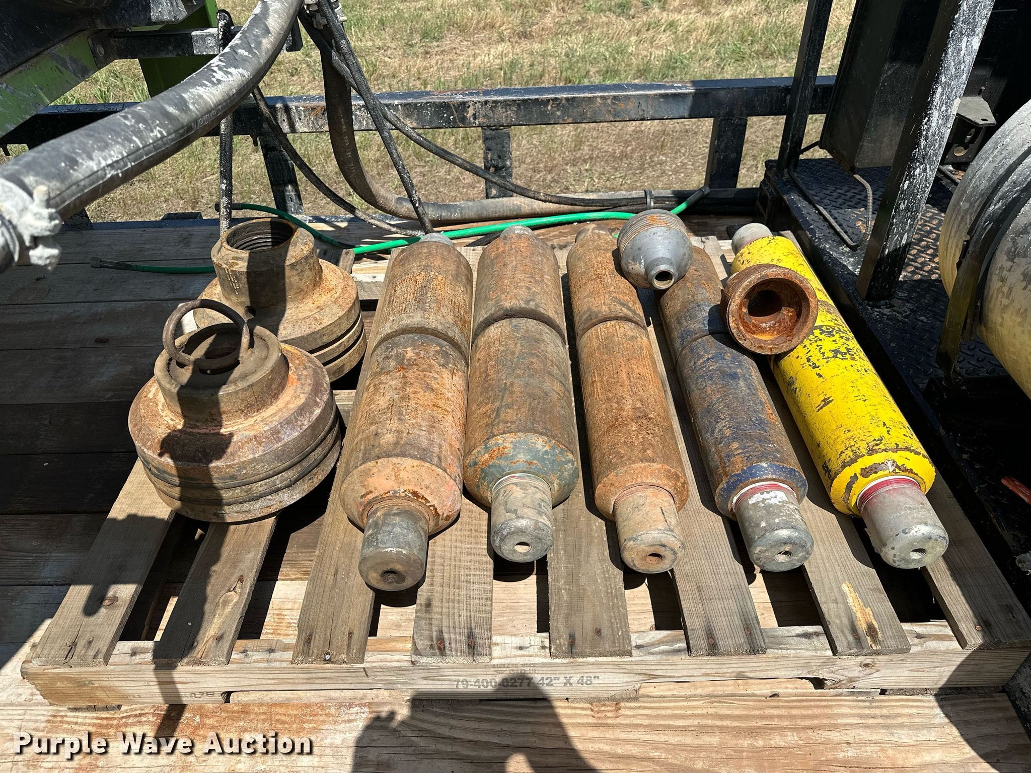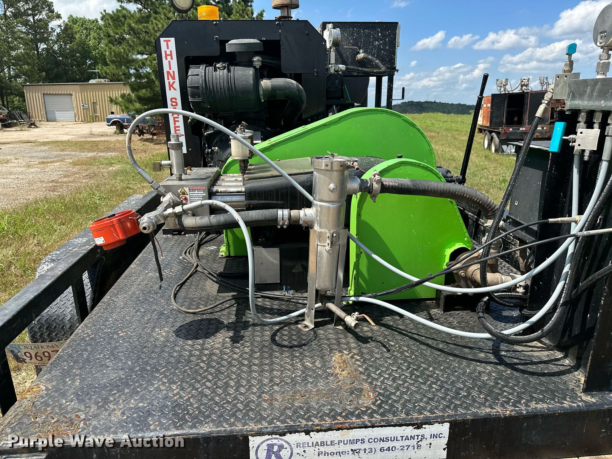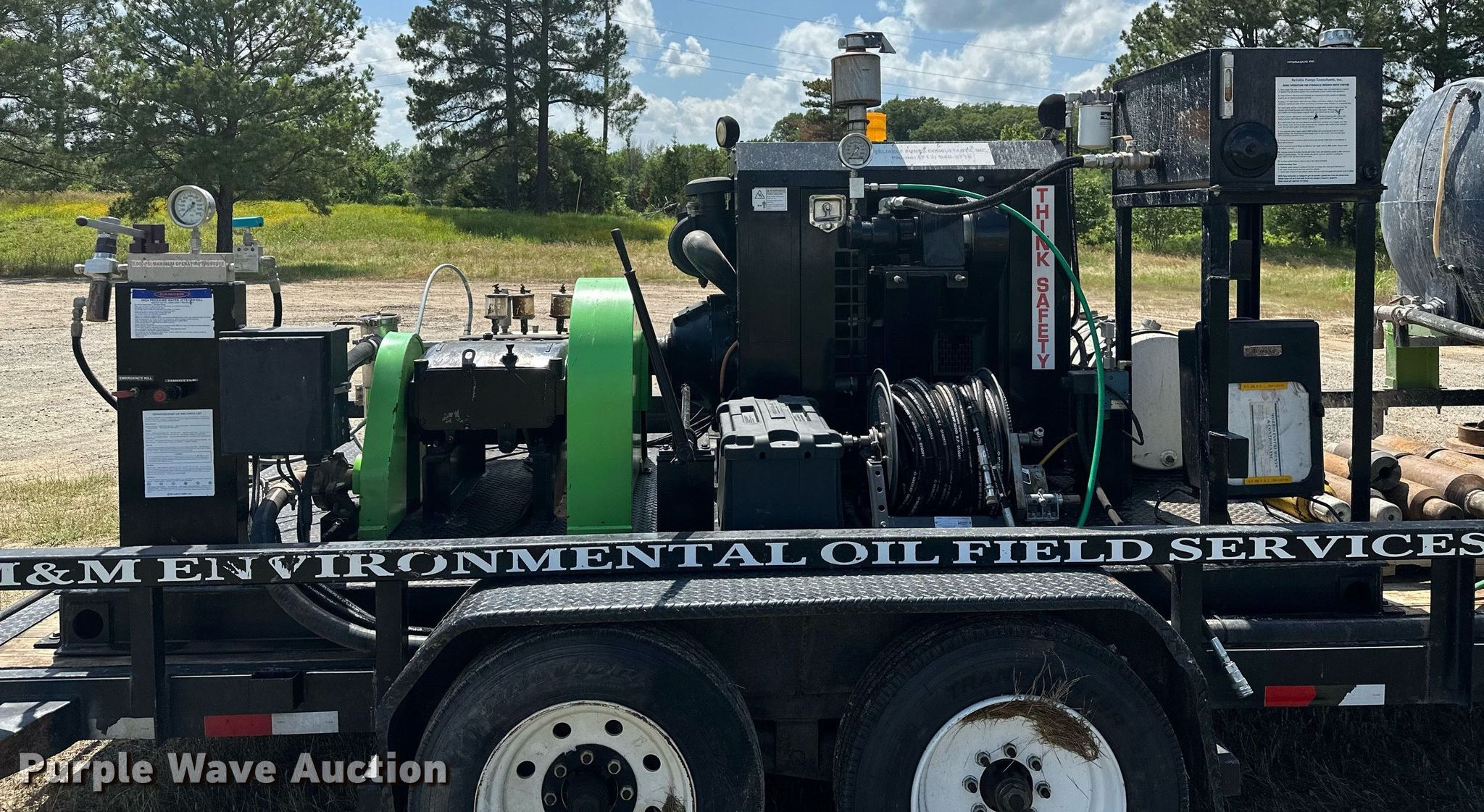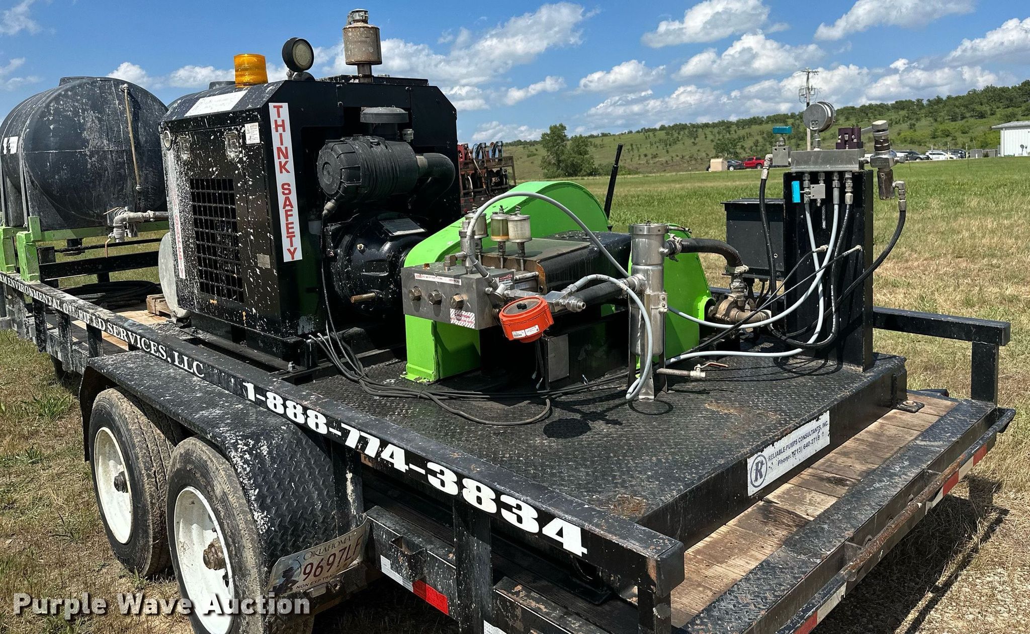 2013 Big Tex equipment trailer with BOP testing unit. VIN: 16VEX2027D2490658. Dimensions Overall: 28' L x 102" W, Deck: 20' L x 80" W. Features Deck type: Wood, Perkins engine Cylinders: 4 , Fuel type: Diesel, Hannay reel , Water pump , (2) tanks Capacity: 225 gallons, Skid 11' L X 72" W. Chassis Hitch: Gooseneck, Landing gear: Dual, Suspension: Spring, Brakes: Electric, Axles: Tandem, GVWR: 16,000 lbs. Tires Steel wheels, Size: 215/75R17. Oklahoma title. Title distribution may be delayed up to 30 days from verification of funds. C-Gawf Construction Inc.. 101 e Shurden industrial blvd. Henryetta, OK 74437