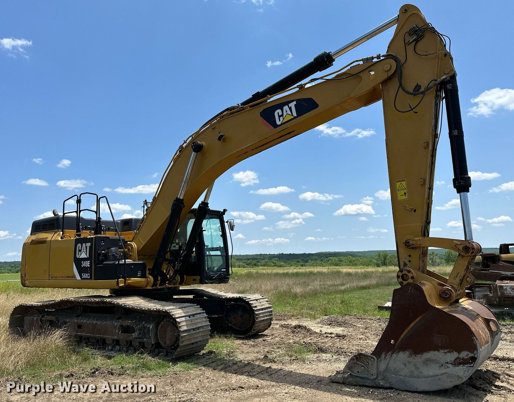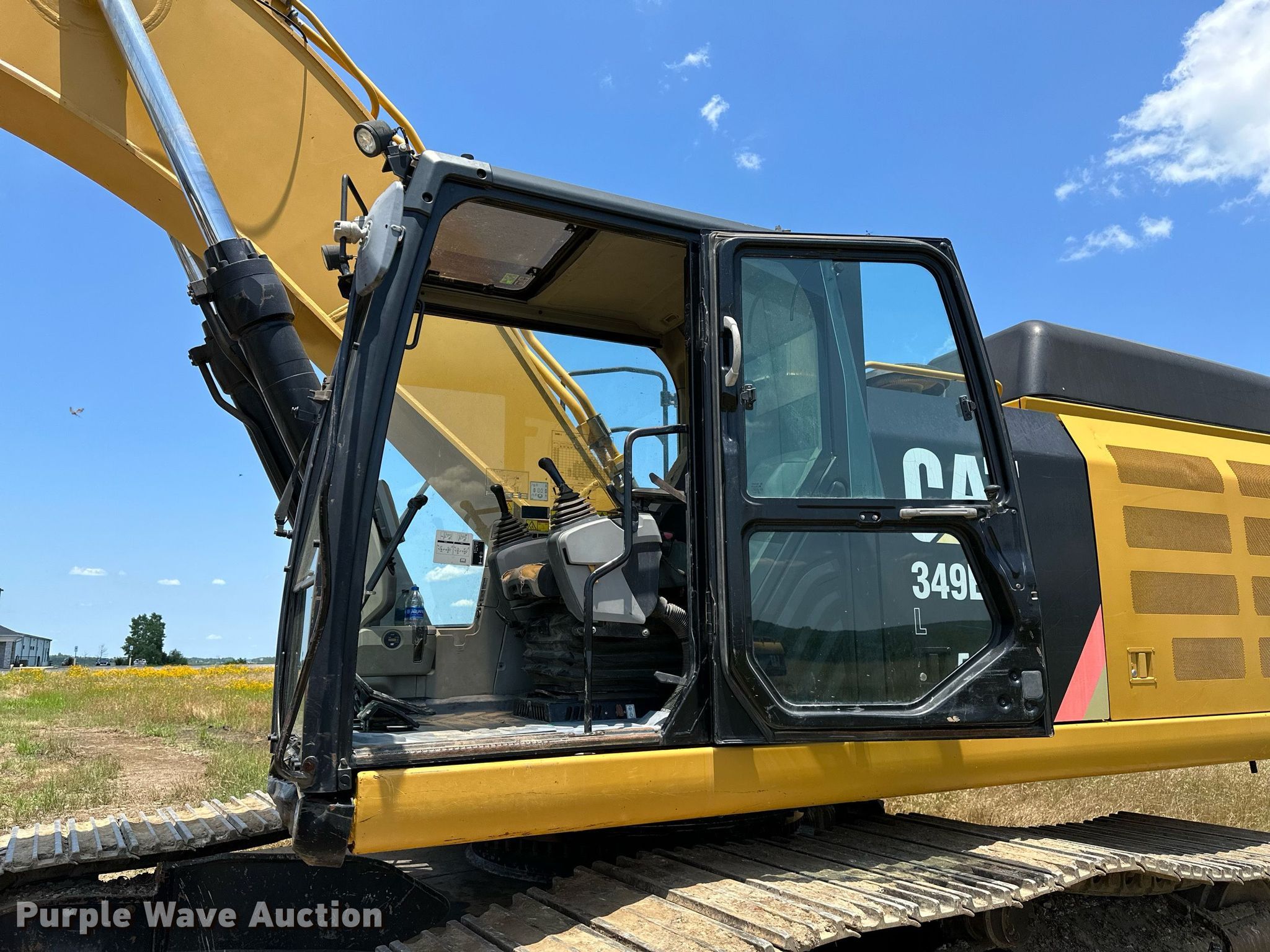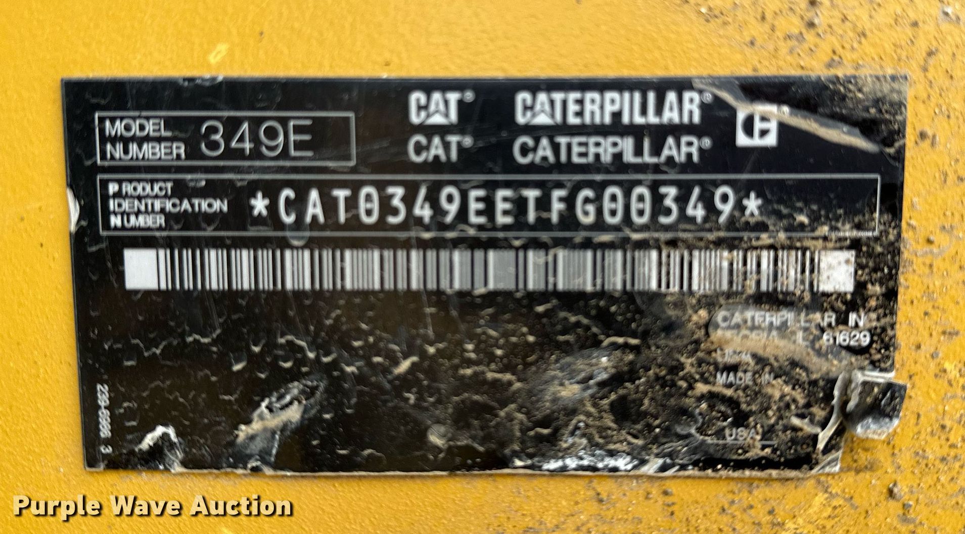 2011 Caterpillar 349EL excavator. Hours: 18,684 on meter, Serial: CAT0349EETFG00349. Engine Caterpillar C13, Displacement: 12.5L, Cylinders: 6, Fuel type: Diesel. Transmission Hydrostatic, Two speed travel. Operators station Enclosed cab, AC, Heat, Pattern changer. Features Auto lube, Boom Standard, Stick Stick length: 9' 6", Bucket Caterpillar , Width: 76", Teeth: 7. Tracks Width: 36", Steel, Grouser pads: Triple. Notes Glass cracked. C-Gawf Construction Inc.. 101 e Shurden industrial blvd. Henryetta, OK 74437