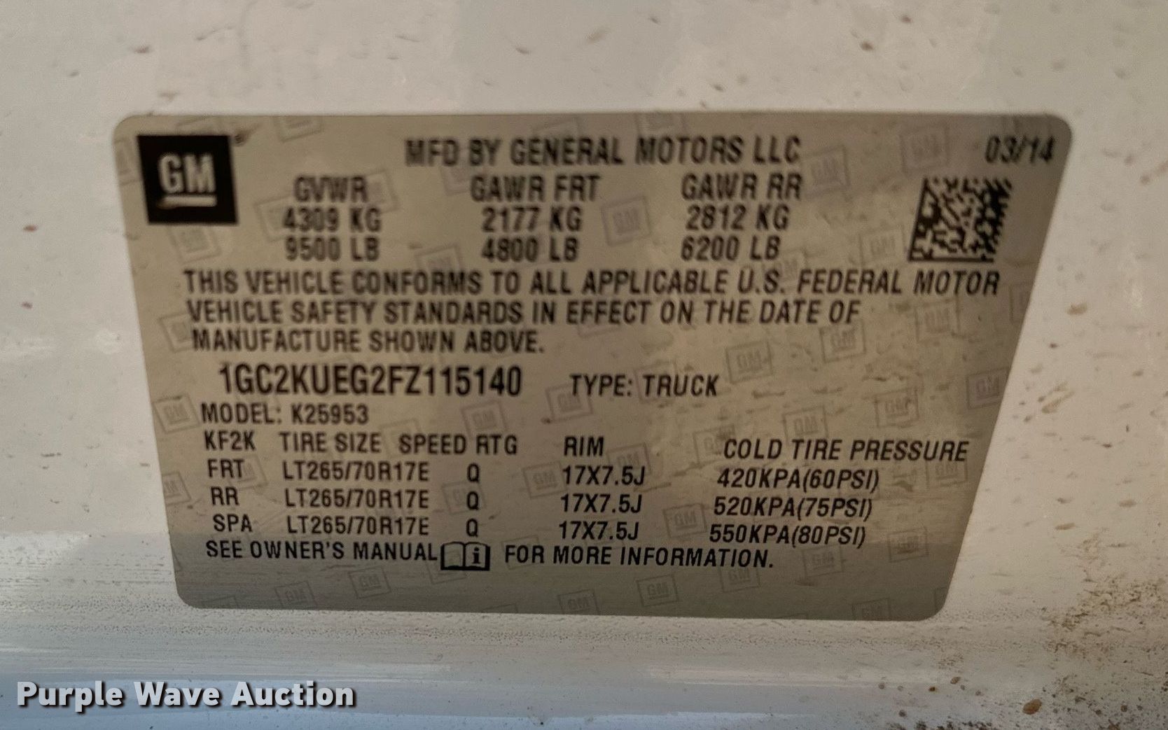 - VIN: 1GC2KUEG2FZ115140