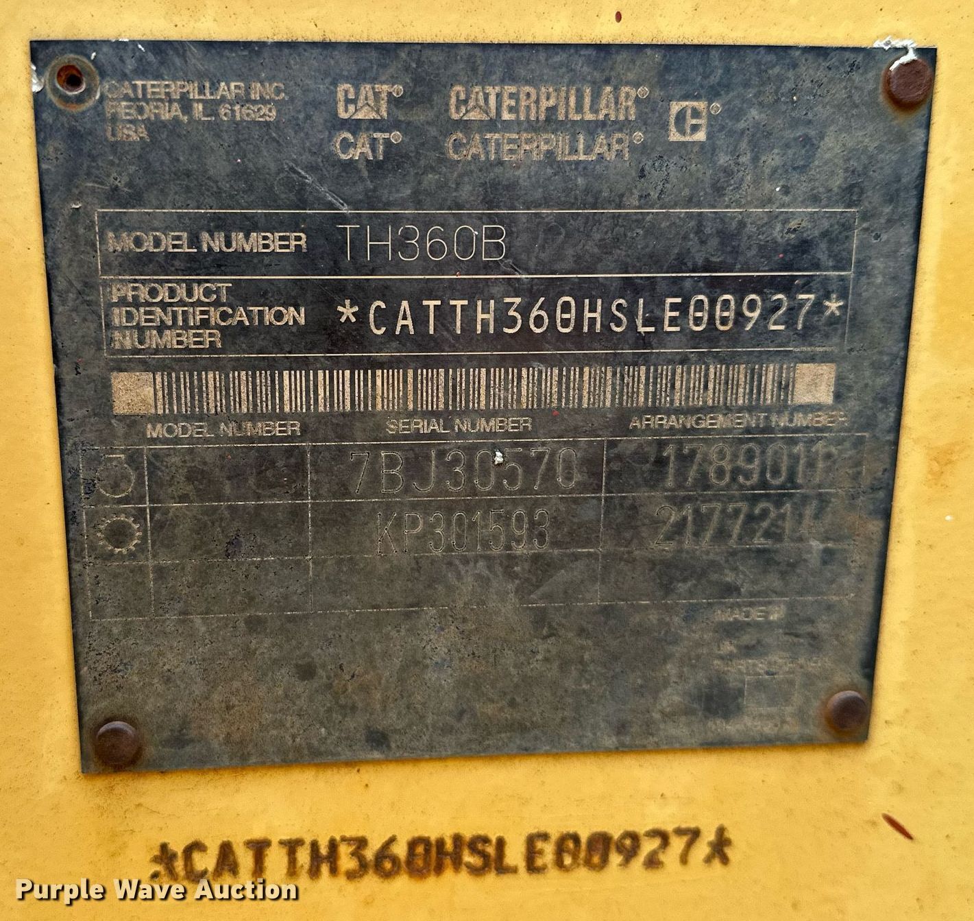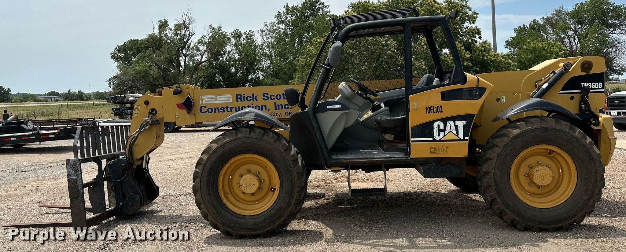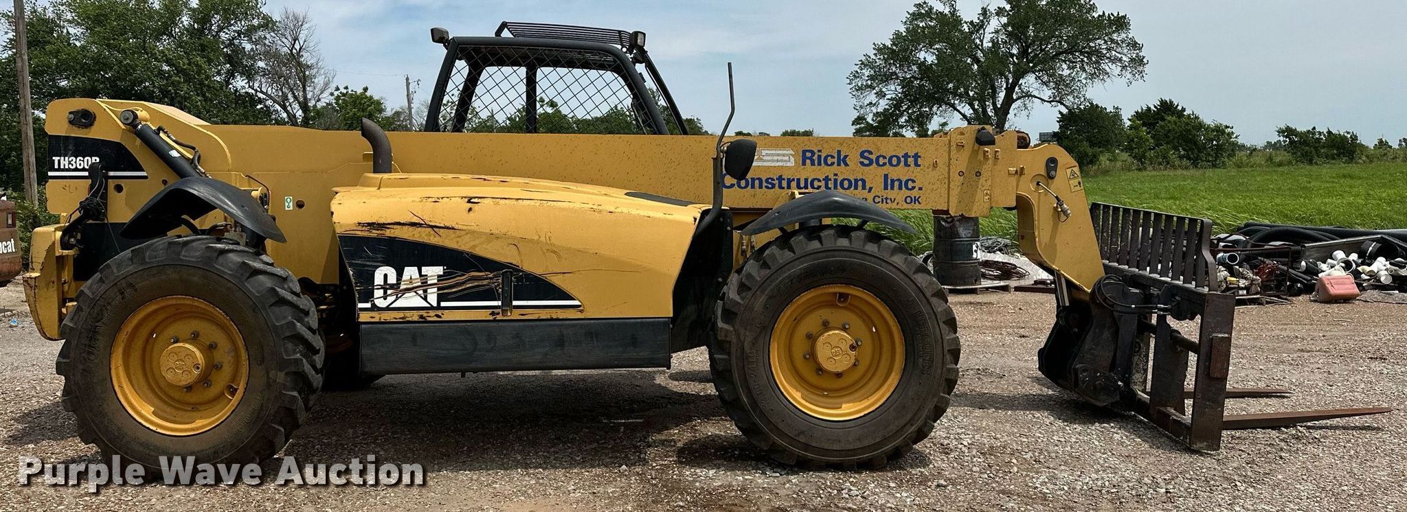 Purple Wave is selling a used Telehandler in Oklahoma. This item is a 2004 Caterpillar TH360B telehandler with the following: Hours: 5,993 on meter, Miles or hours may vary, unit still in use, Serial: CATTH360HSLE00927