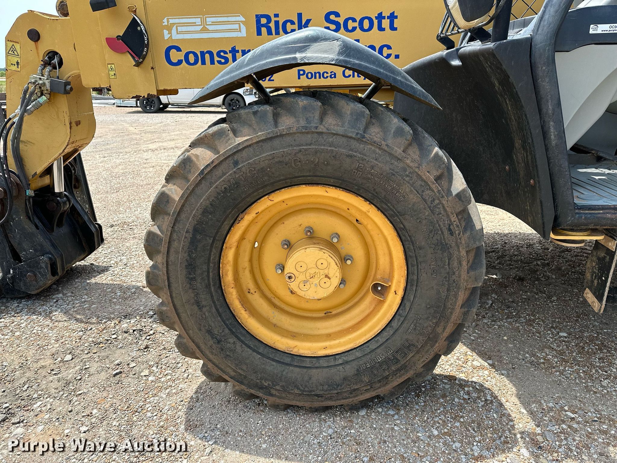 2004 Caterpillar TH360B telehandler. Hours: 5,993 on meter, Miles or hours may vary, unit still in use, Serial: CATTH360HSLE00927. Engine Perkins , Displacement: 3.99L, Cylinders: 4, Fuel type: Diesel. Transmission Powershift, 4F - 3R. Operators station OROPS, Steering: Four wheel. Features Maximum lift capacity: 6,613 lbs, Maximum lift height: 44', Boom stages: 3, Fork length: 48", Auxiliary hydraulics, Hydraulic leveling, Quick attach: Manual, Bucket size: 96". Tires Size: 13.00-24. Notes Engine hood hydraulic arm broken, Mirror missing, Side cover latch broken. Rick Scott Construction, Inc. - Inventory Reduction Auction. Ponca City, OK 74601