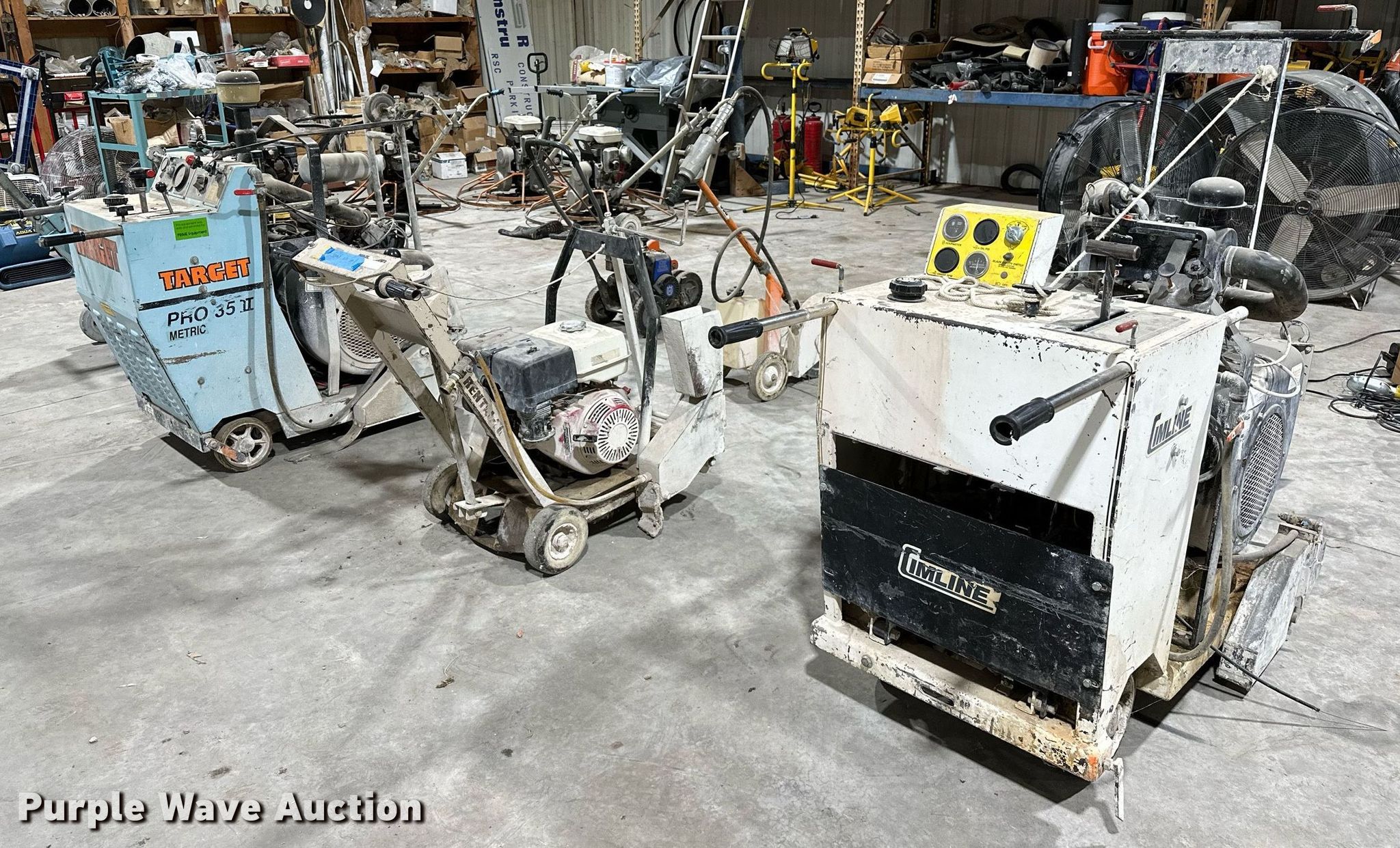 (5) concrete saws. Target Pro 35 concrete saw. Blade not included, Needs battery , Unknown operating condition. EDCO DS16-11H concrete saw Serial: 13840, Honda GX340 engine, HP: 11, Blade not included , Unknown operating condition. Cimline W41770 concrete saw Serial: 94051151, HP: 35, Blade not included, Unknown operating condition. (2) concrete saws Blade: 12", 14", Unknown operating condition. Husqvarna LE389 edger HP: 3.8, Unknown operating condition. Rick Scott Construction, Inc. - Inventory Reduction Auction. Ponca City, OK 74601