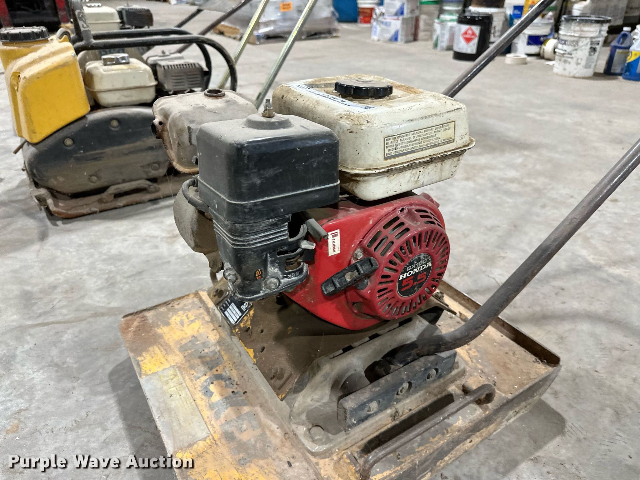 (3) plate compactors. Wacker VPG160B plate compactor. Serial: 49810105, Unknown operating condition. Dynapac plate compactor Serial: 2091CN0219, Honda GX160 engine, Unknown operating condition. M-B-W GP4000 plate compactor Honda GX160 engine, HP: 5.5, Unknown operating condition. Rick Scott Construction, Inc. - Inventory Reduction Auction. Ponca City, OK 74601